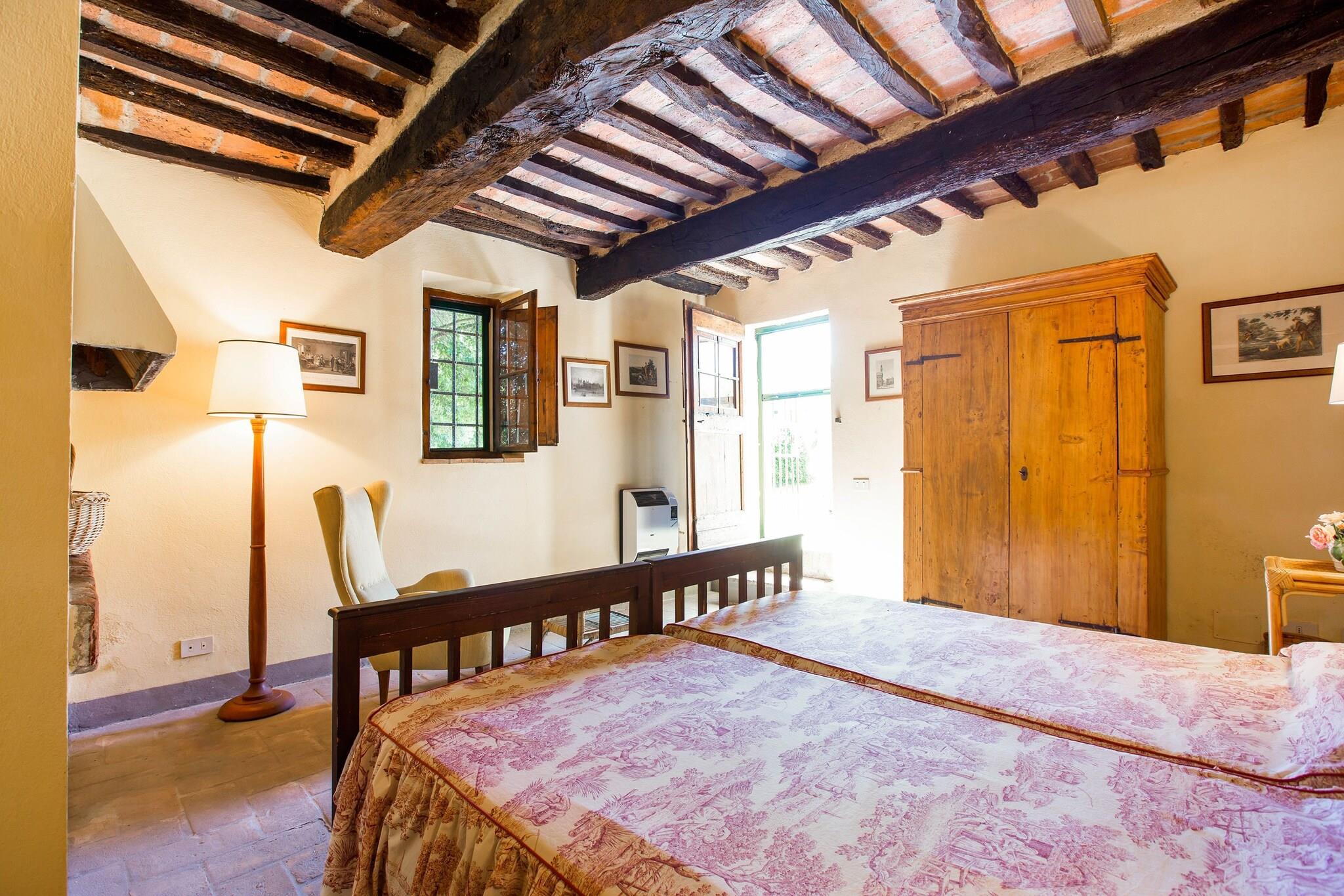 Typisk bondehus ombygget til et sommerhus, der er i stand til at rumme 8 personer. Bondegården har en stor indhegnet have, wi-fi internetforbindelse og swimmingpool til eksklusiv brug. Det er den ideelle løsning for grupper af venner eller familier, der vælger et enkelt sommerhus på et fascinerende sted. Restaureringen blev foretaget under hensyntagen til den typiske rustikke toscanske stil og gav favorit til genopretning af de originale materialer. Det ydre har en smuk indhegnet græsplæne beliggende foran huset, hvor du kan lade børnene frit løbe og hvor der er et bord med stole til udendørs morgenmad. Inde i haven er der en swimmingpool til eksklusiv brug, helt indhegnet for børns sikkerhed. På den ene side er der det brolagte solarium, hvor der er liggestole, en paraply og et brusebad med koldt vand. Huset har også en loggia indbygget i en gammel stald udstyret til udendørs spisning. Parkering inde i ejendommen. Gården er et stort jagtreservat, så det er normalt at observere rådyr, bravehjorte og anden fauna, der græser roligt i engene.