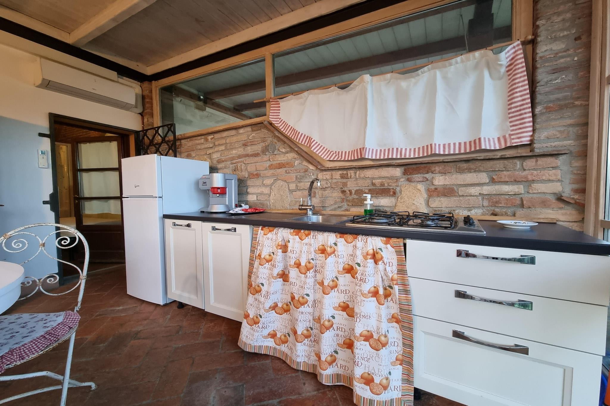 Dejligt nyrenoveret feriehus, inde i en bondegård 1 km fra det smukke middelalderlige historiske centrum af en toscansk bakketop landsby: Montecastello, en del af den italienske kommune Pontedera (ca. 5 km væk), i provinsen Pisa, i Toscana. Lejligheden er i rustik stil, udstyret med alle bekvemmeligheder for at få dig til at føle dig godt tilpas, med wi-fi og aircondition, men den er også velegnet til vinteren med centralvarme.Du kan slappe af i det store udendørs område (på 5 hektar) , til fælles med de andre lejligheder i stuehuset, en stor have udstyret med spil for børn og en stor og afslappende swimmingpool