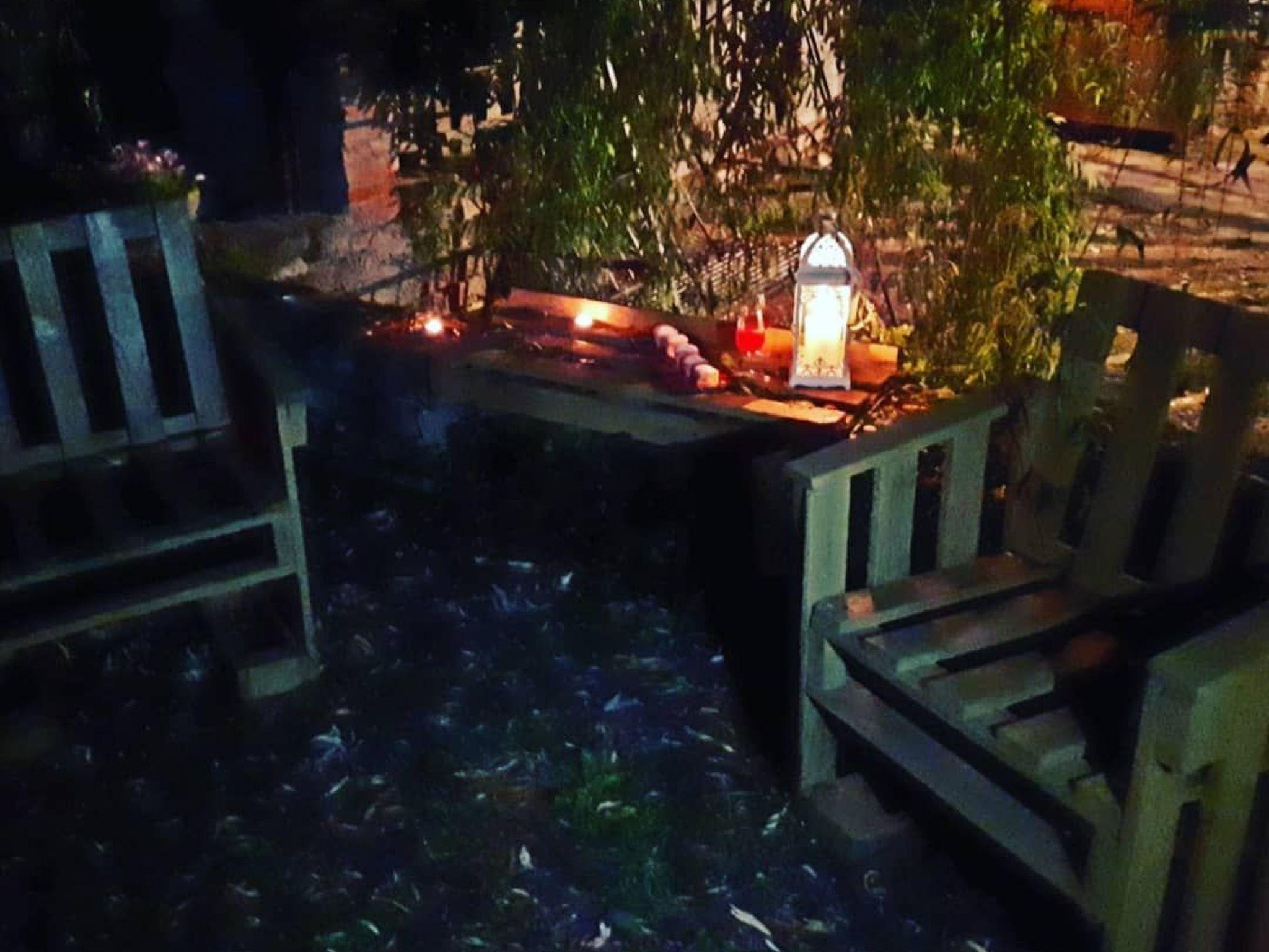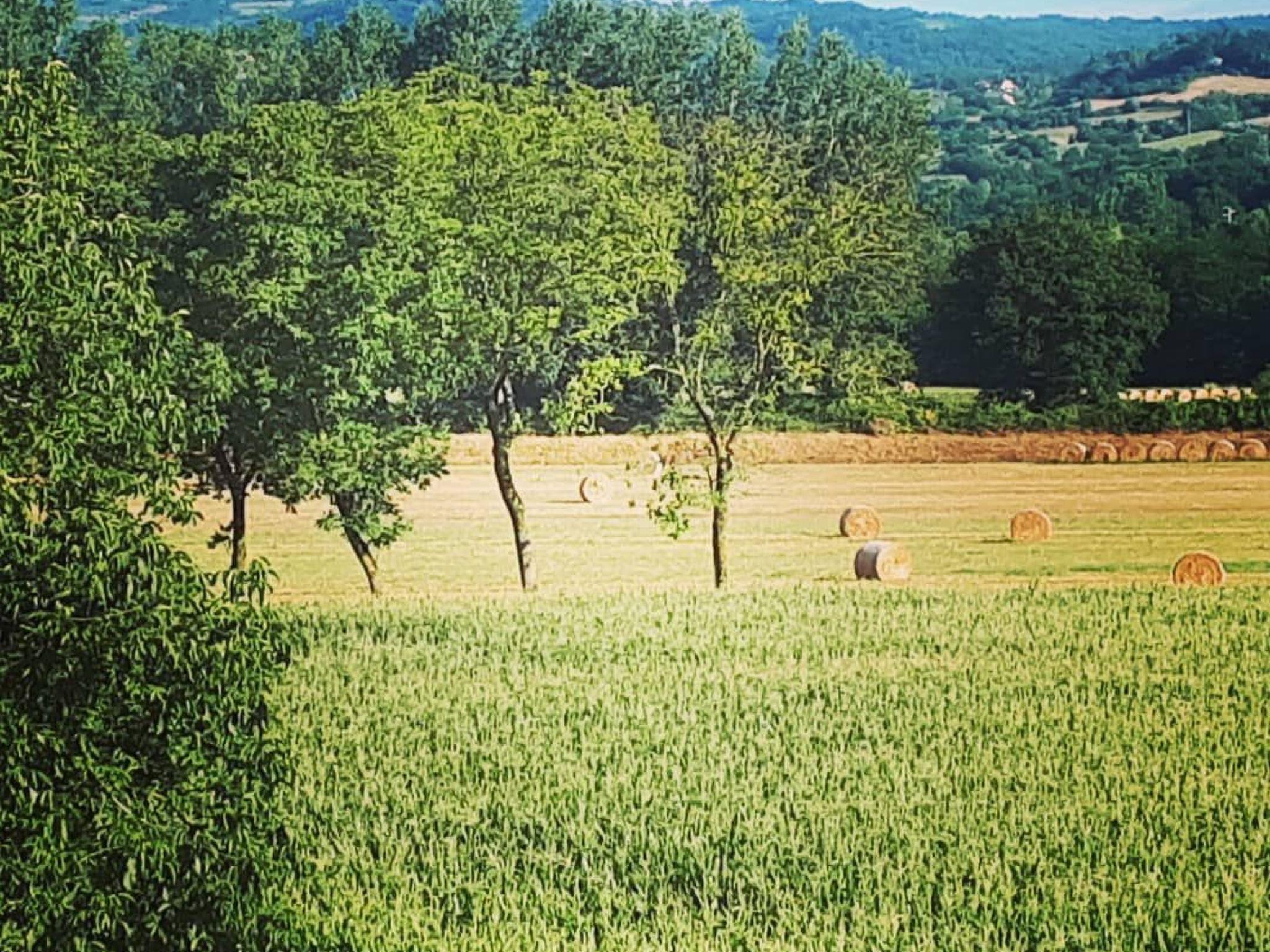 Outdoor space for exclusive use with barbecue, table, outdoor sofas with panoramic views of the surrounding hills.