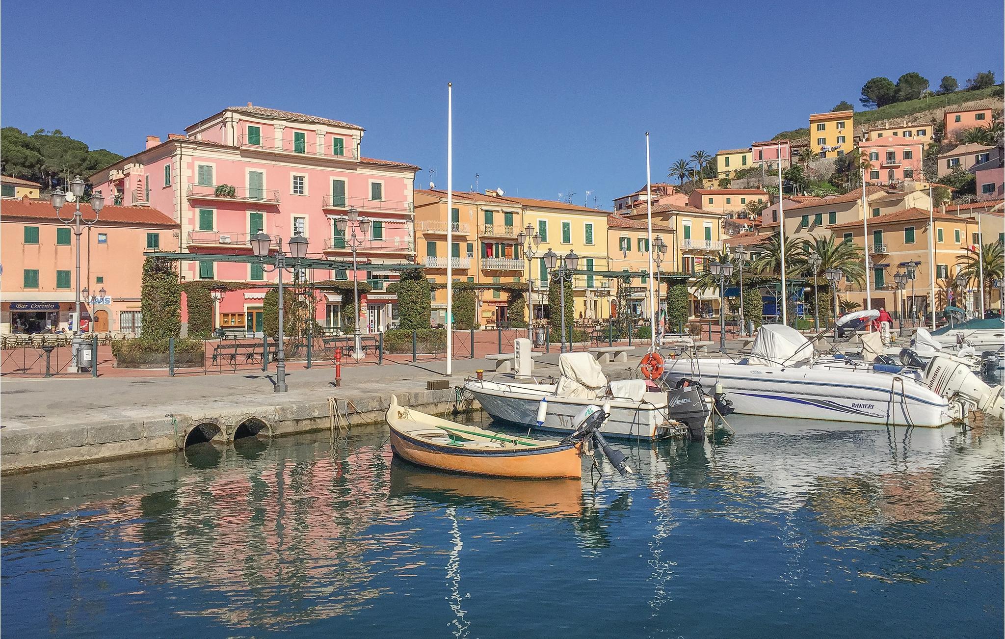Ferielejlighed med panoramaterrasse i et boligkompleks i Porto Azzurro, et af de smukkeste områder på øen Elba. Lejligheden (3. etage, der er elevator i ejendommen) er ideel til familier og har en skøn terrasse med havemøbler, hvor I kan slappe af, nyde solen, spise dagens måltider eller bare beundre udsigten over havet. Butikker og restauranter ligger lige i nærheden. Øen Elba har meget at byde på: det skønne klare hav, historiske kystbyer (Rio Marina 12 km, Marina di Campo 21 km og Marciana Marina 26 km), uberørt natur, som I kan opleve ad de mange smukt anlagte stier, samt en fremragende lokal gastronomi.