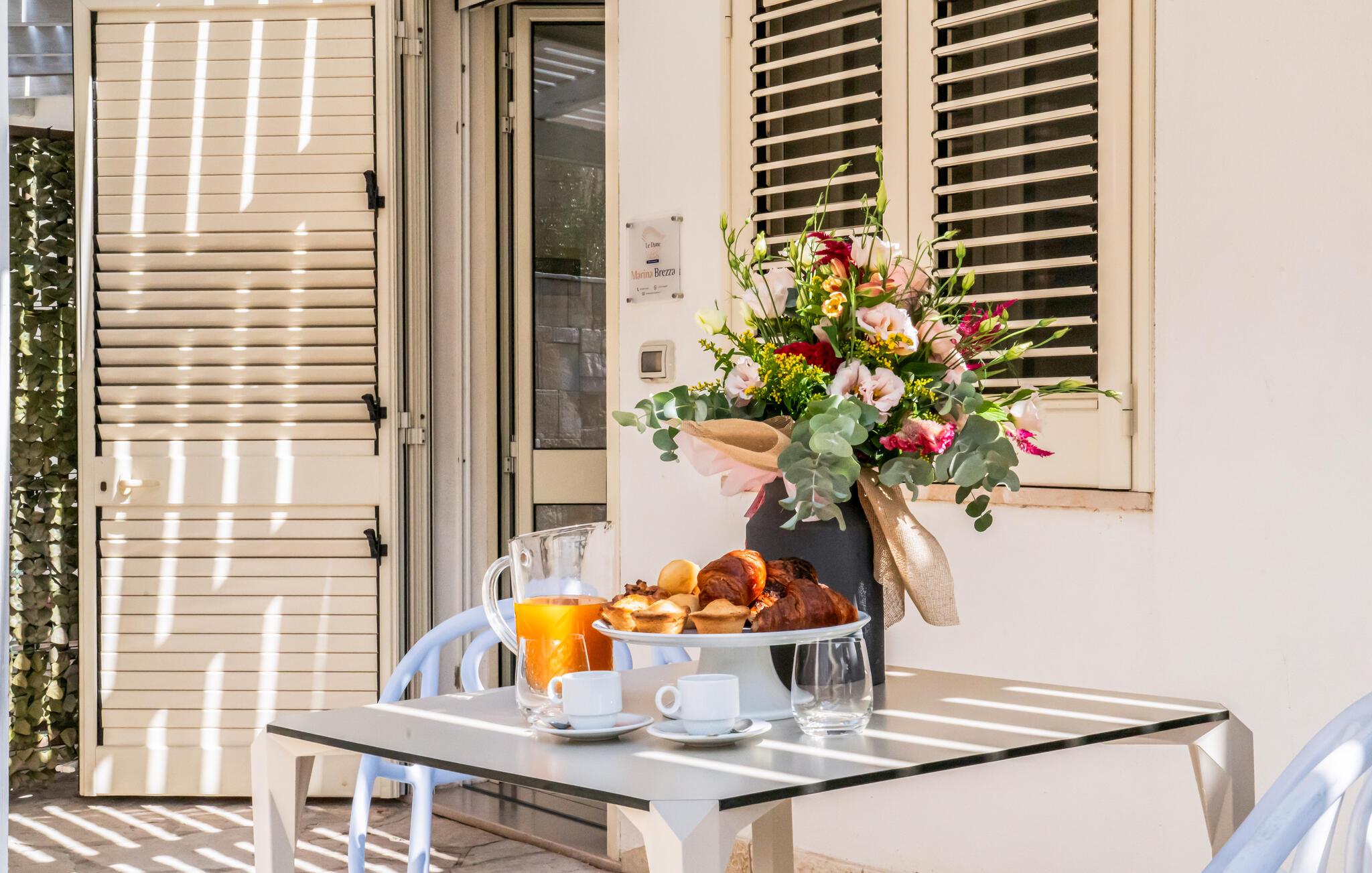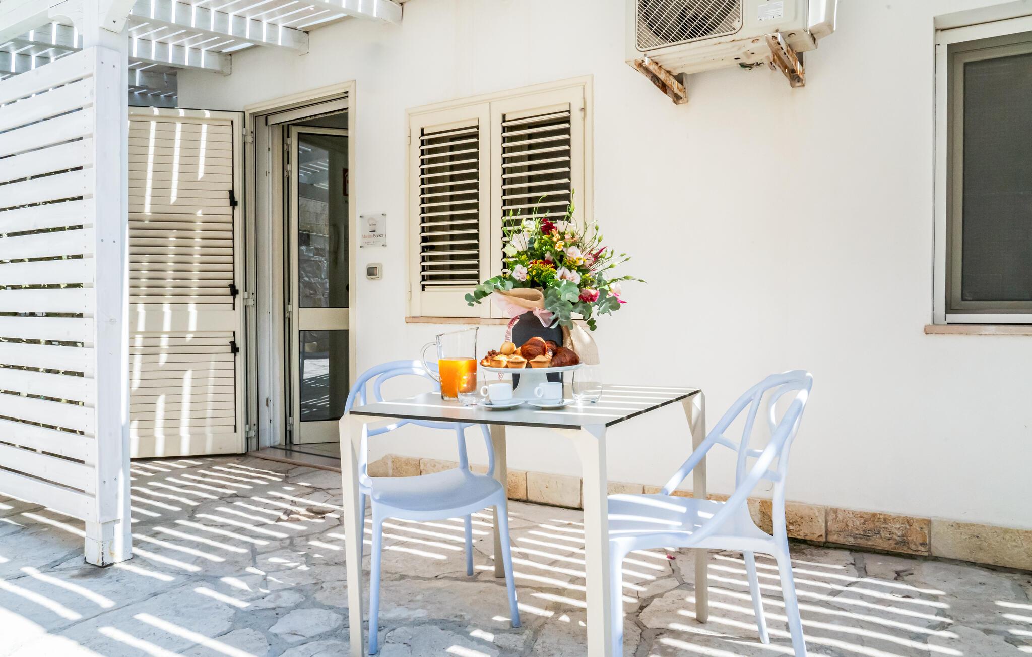 Træd udenfor og nyd middelhavsluften. Der er en kaffebar, hvor I kan nyde en forfriskende drink. Om aftenen kan I nyde den milde luft fra den syditalienske kyst og slappe af efter en lang dag.