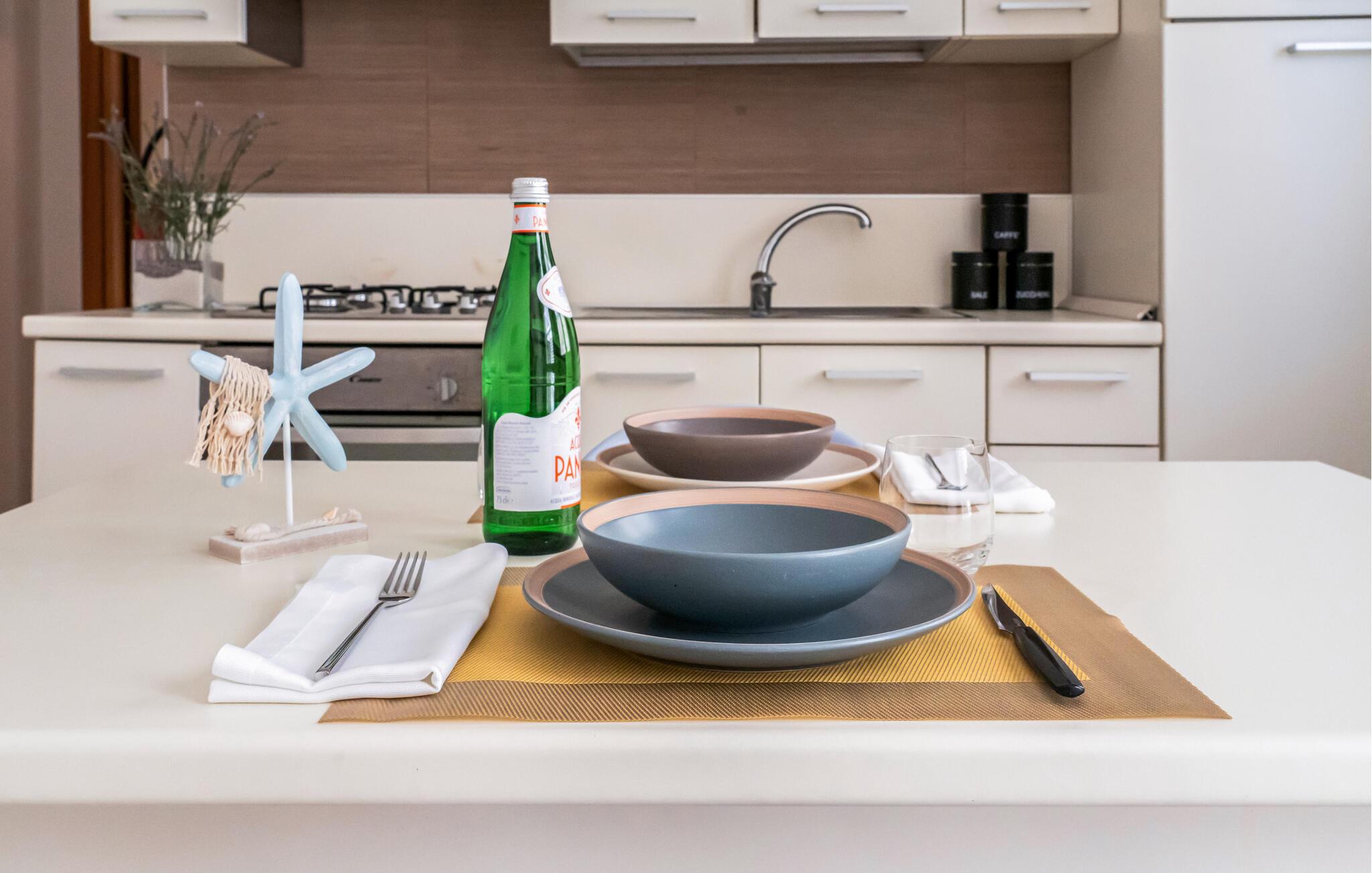 Brug jeres ferielejlighed som en bekvem base for afslappende dage ved havet. Interiøret er funktionelt designet. Tilbered enkle måltider i tekøkkenet og begynd dagene med en solid morgenmad. Lyse farver og rene linjer skaber en indbydende atmosfære. Planlæg jeres udflugter her eller tag en kort pause mellem strandbesøg og sightseeingture.