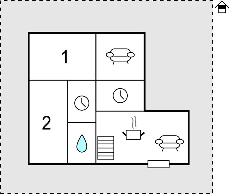 Huset er i et plan (indgang i stueplan og trappe til første sal) med to rummelige soveværelser, et stort køkken med spiseafdeling og vinduer med havudsigt, en stor stue med tv og badeværelse. Indkørslen benyttes sammen med naboerne, men de to parkeringspladser på grunden er jeres alene.