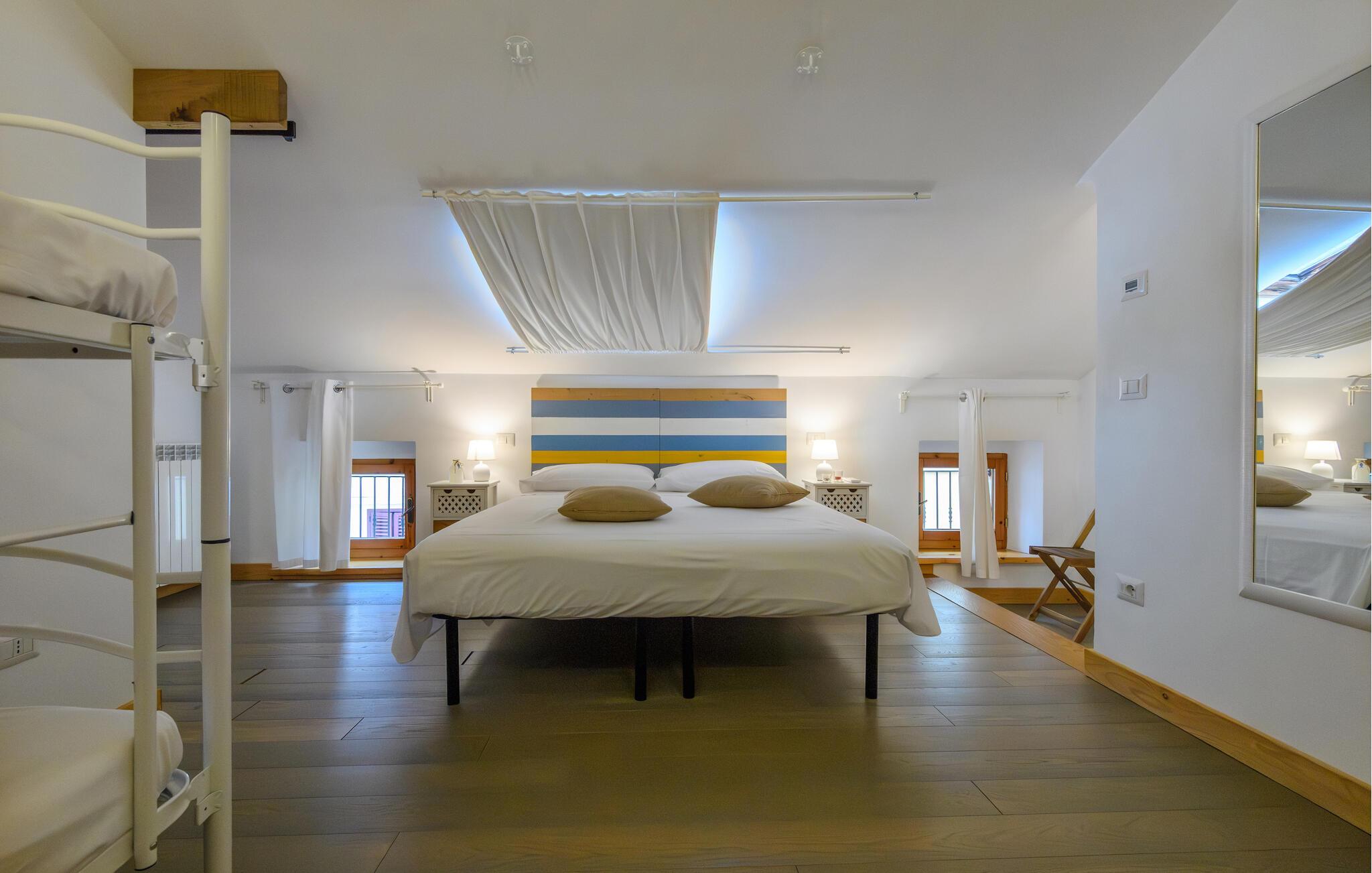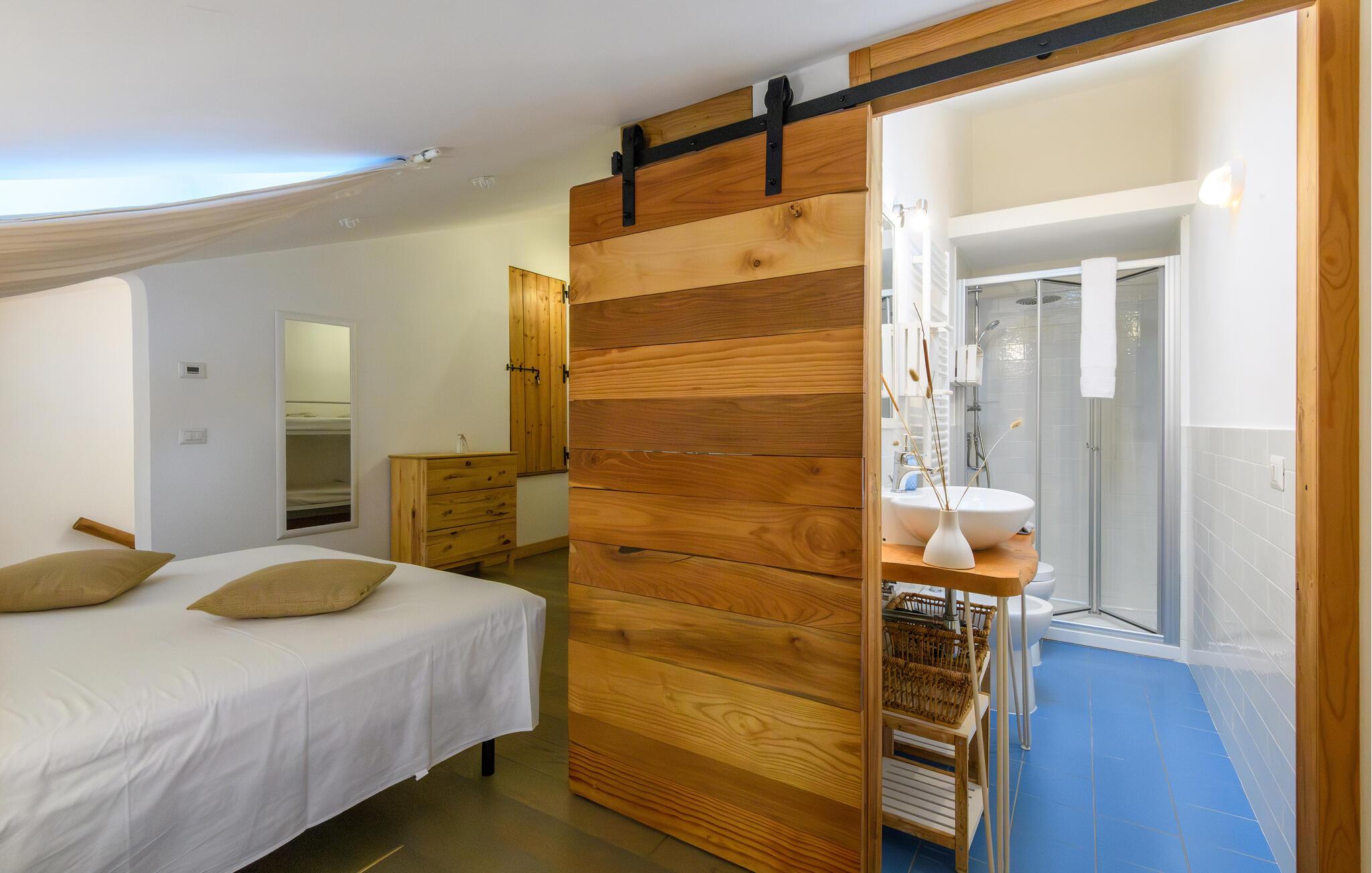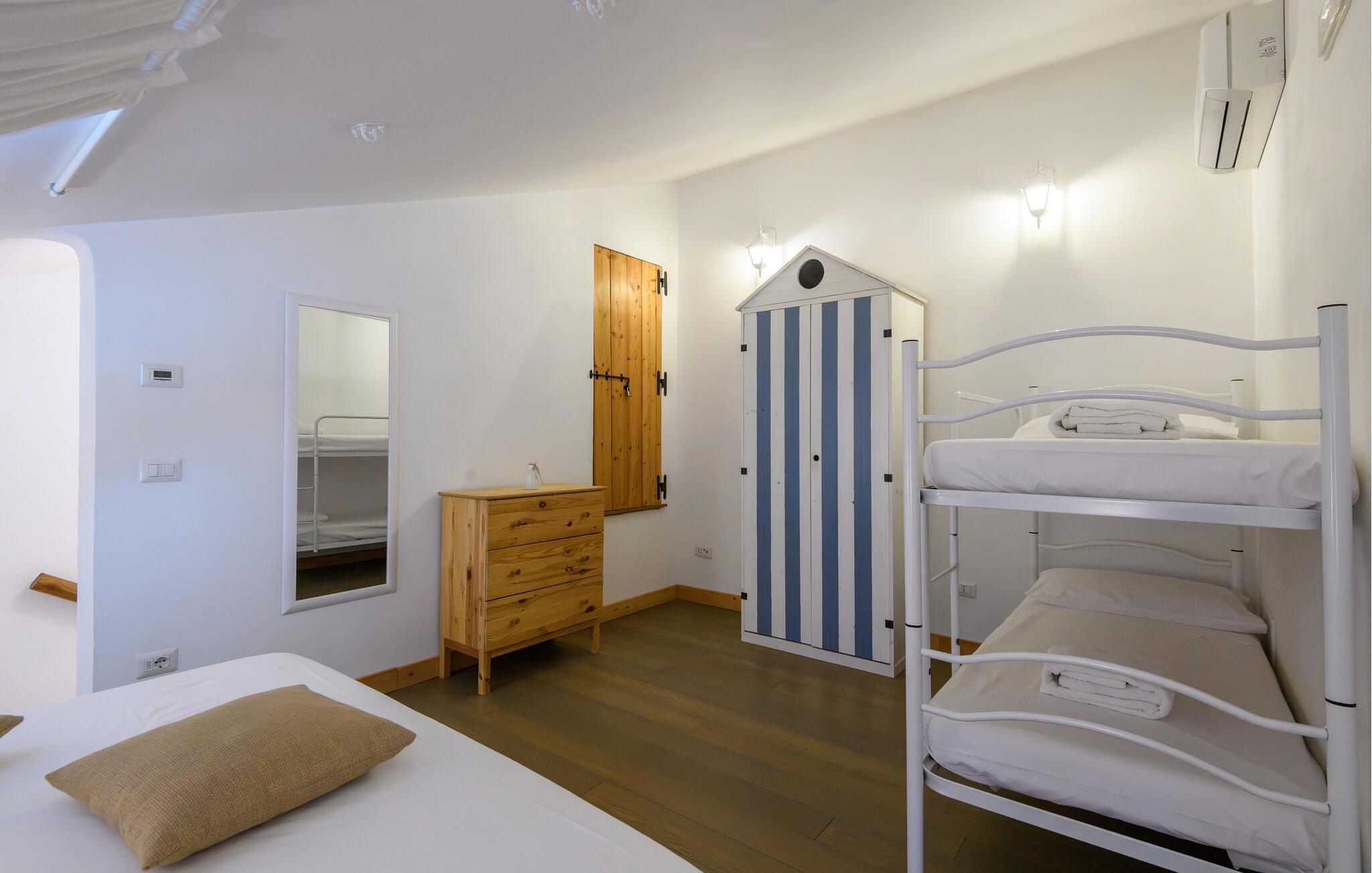 Lige efter I er stået op, kan I med håndklædet over skulderen spadsere ned til stranden, tage en dukkert i det turkisblå hav og på vejen tilbage overraske familien med ovnfriske panini til en lækker morgenmad. Nærliggende restauranter indbyder desuden til spontane smagsoplevelser af lokale specialiteter.