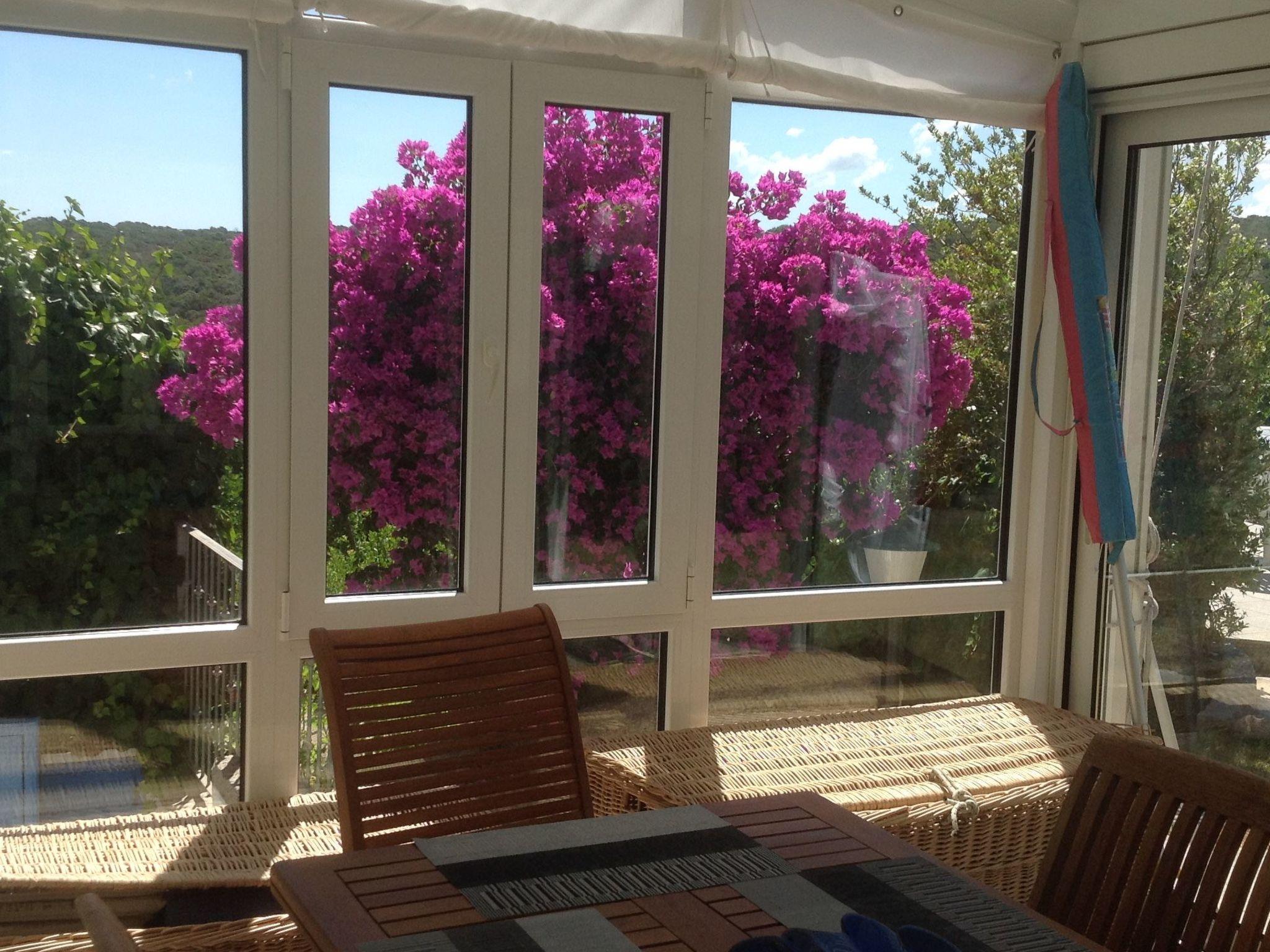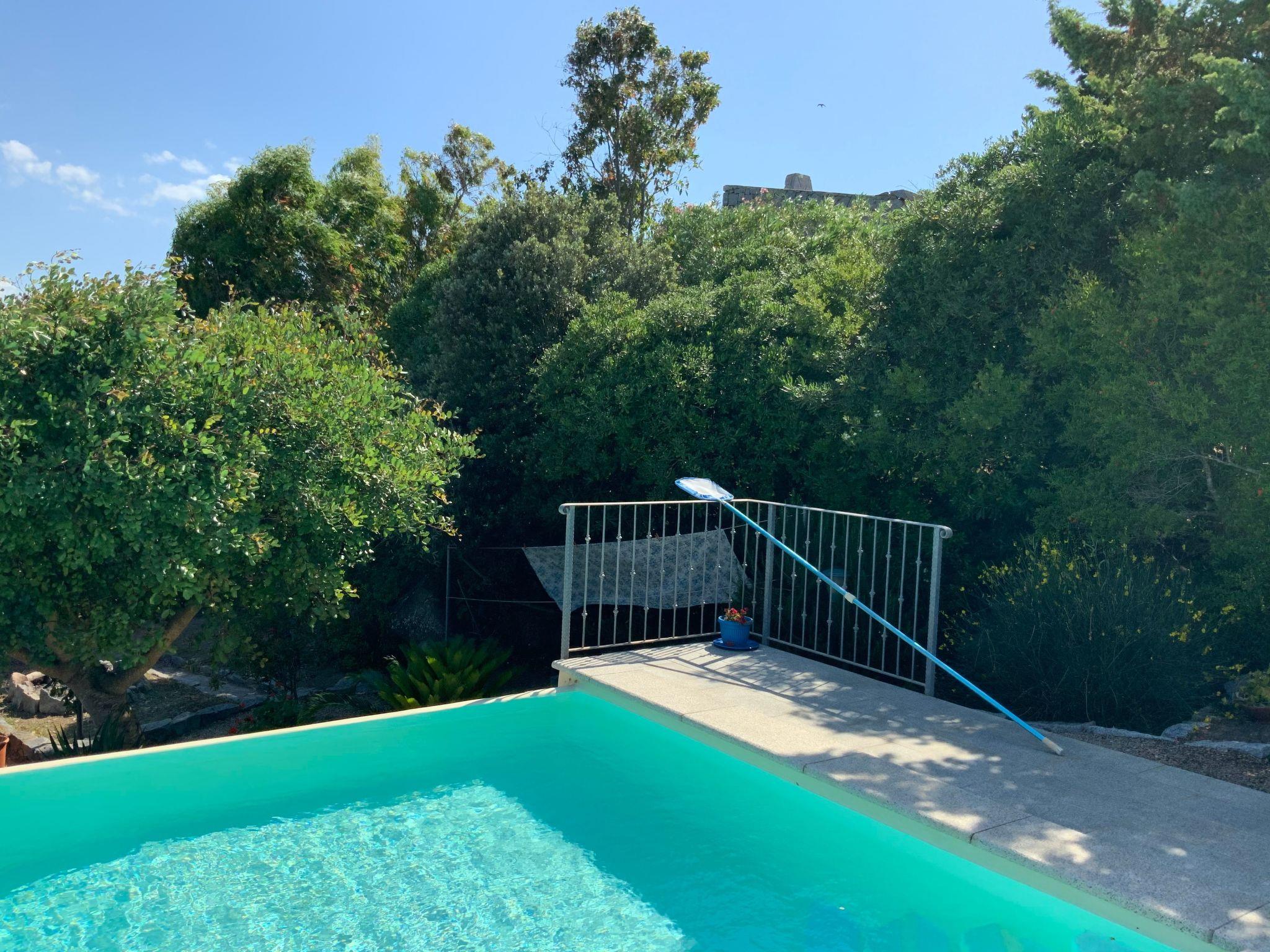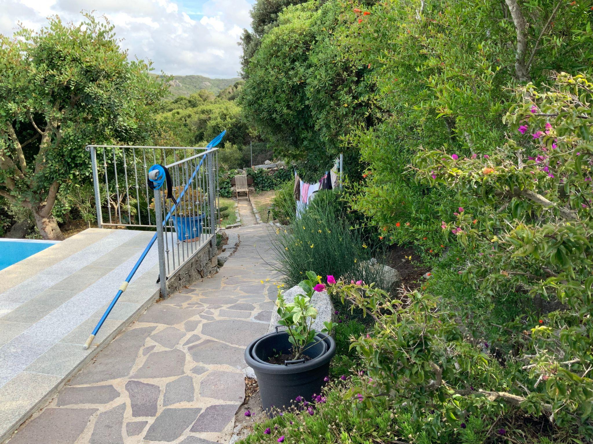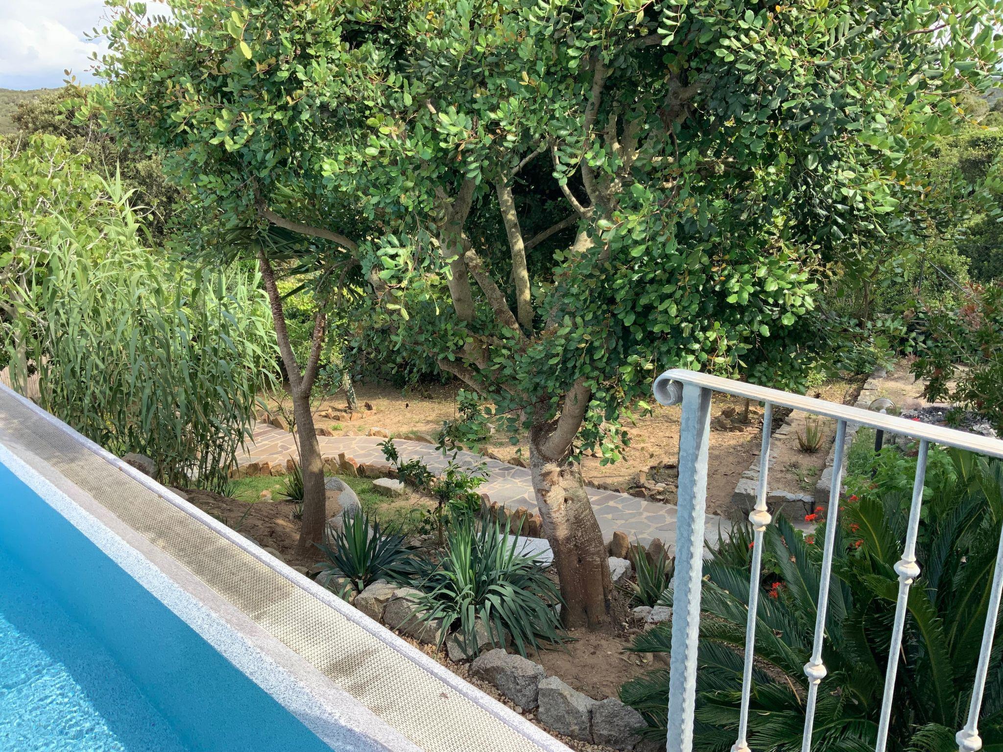Outside you are welcomed by a sunny veranda with an awning. The 1200 m² site is completely fenced. The fruit and vegetable gardens not only create a relaxing atmosphere, but also ensure adequate privacy. On hot days you can cool off in the pool (open from June to September, with solar heating). There is an outdoor shower with cold water, and a solar-heated cold and warm water shower by the pool. Guests can relax on the terraces and lawns, which afford lovely sea views towards the surrounding islands as far as Corsica. The provided garden furniture and a barbecue corner allow guests to end the day outdoors with a cosy grill evening. For arrivals by car, two parking spaces are available.