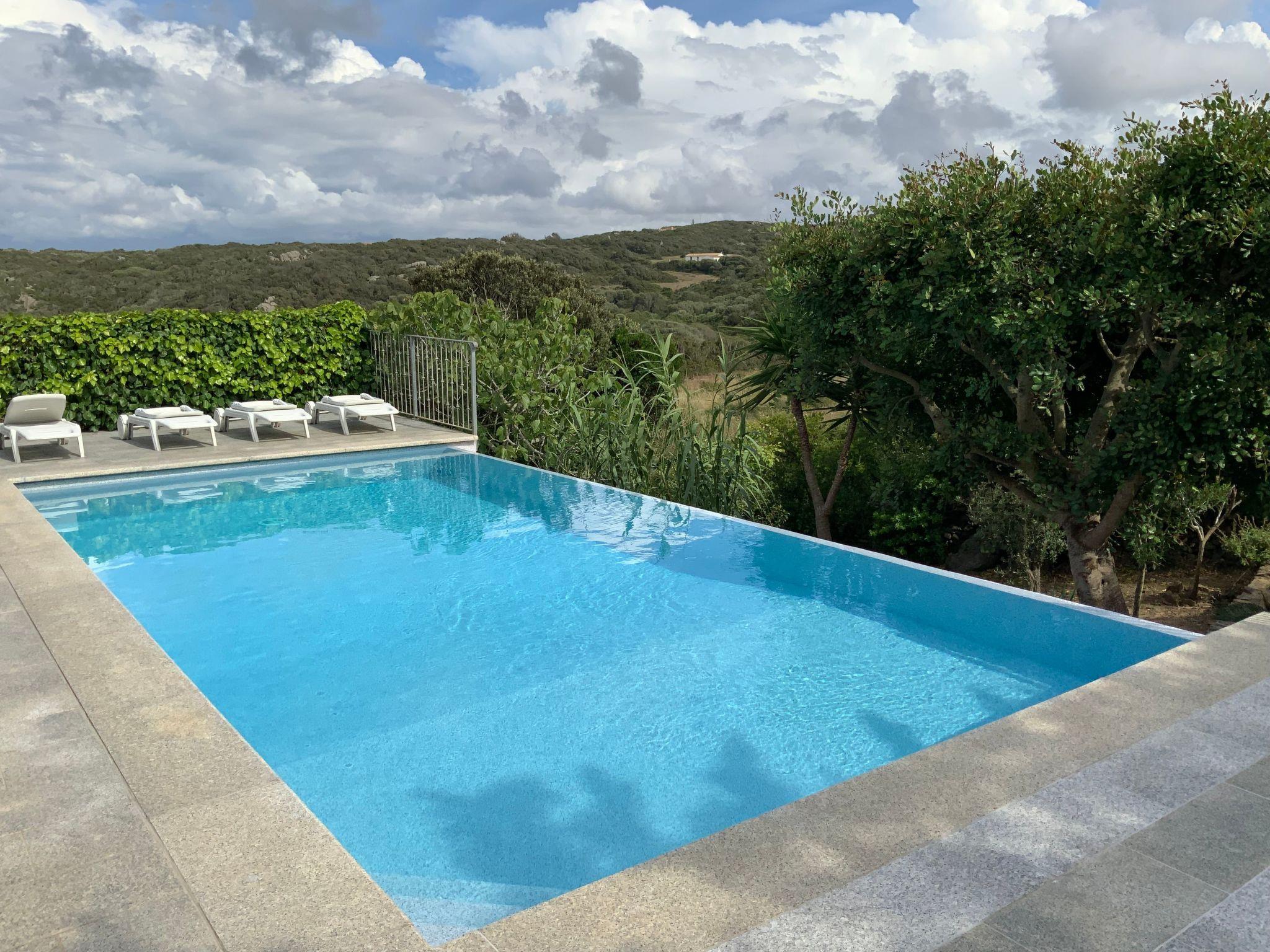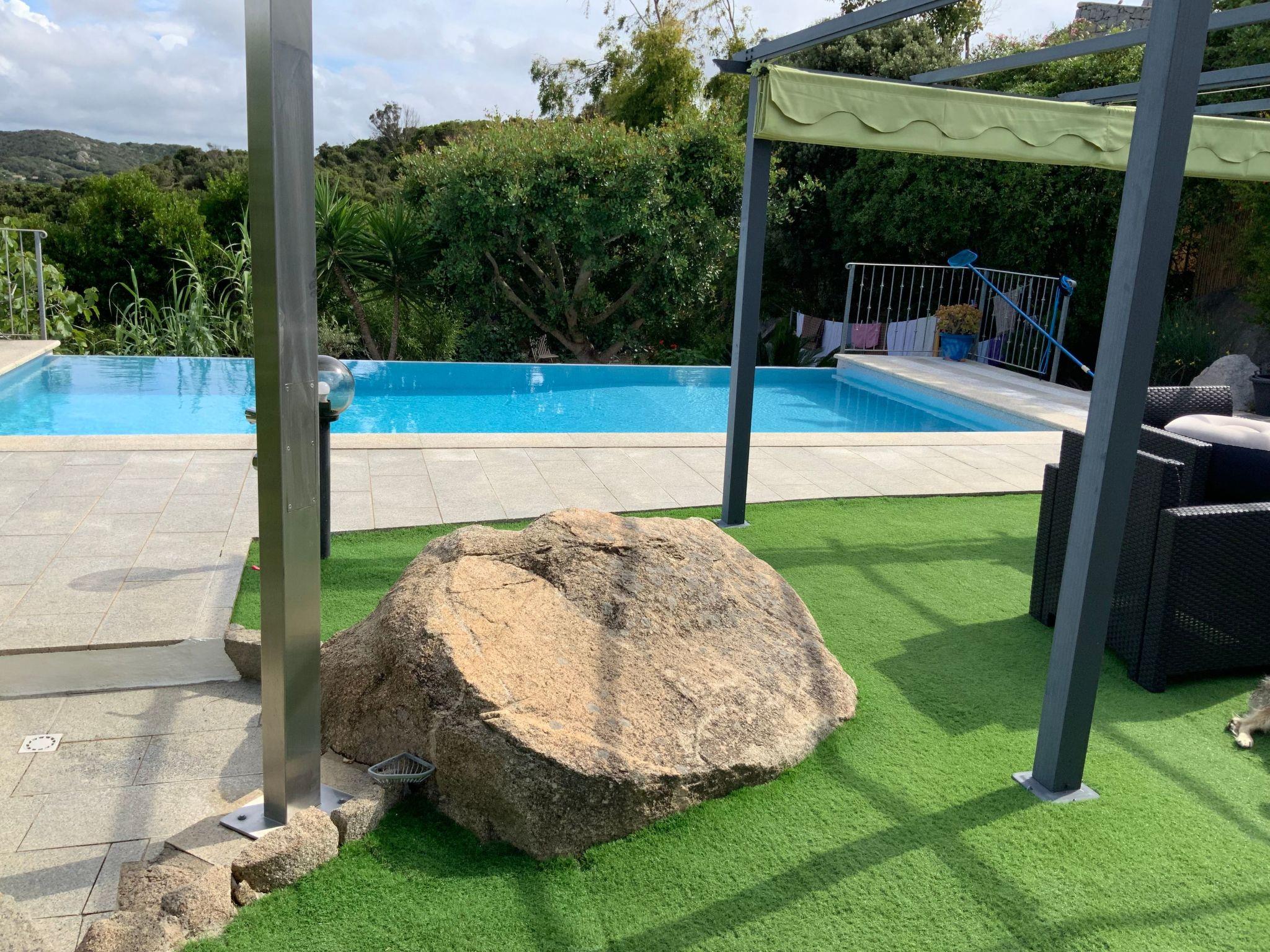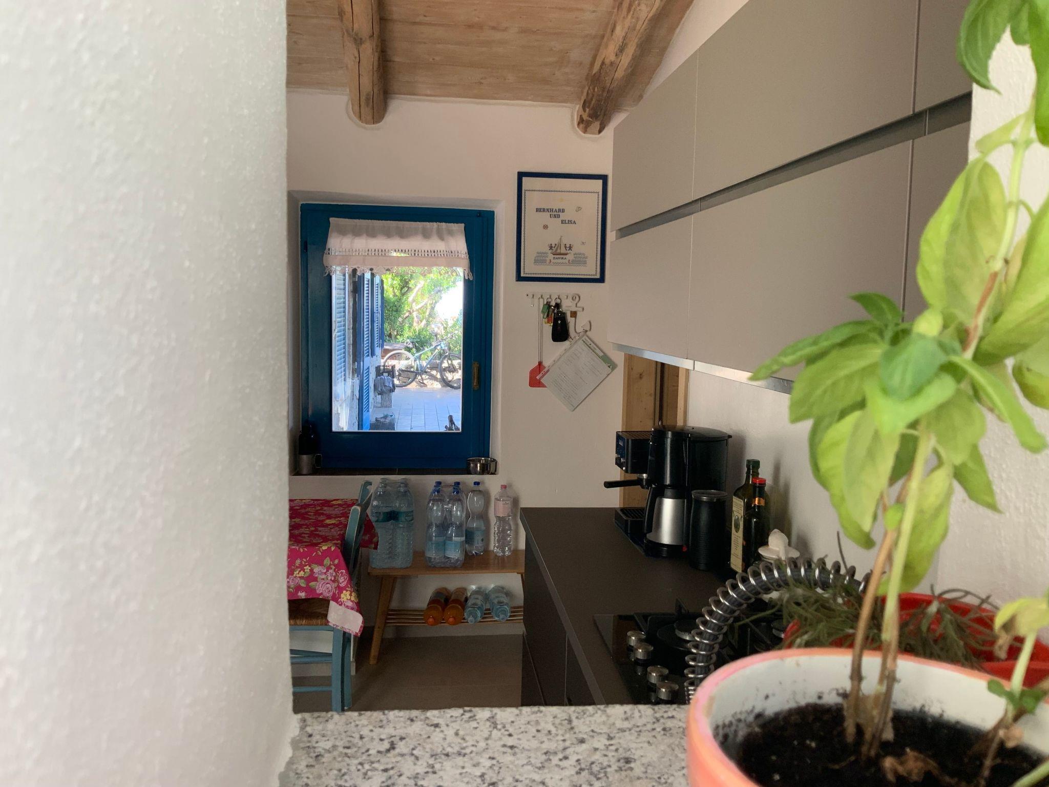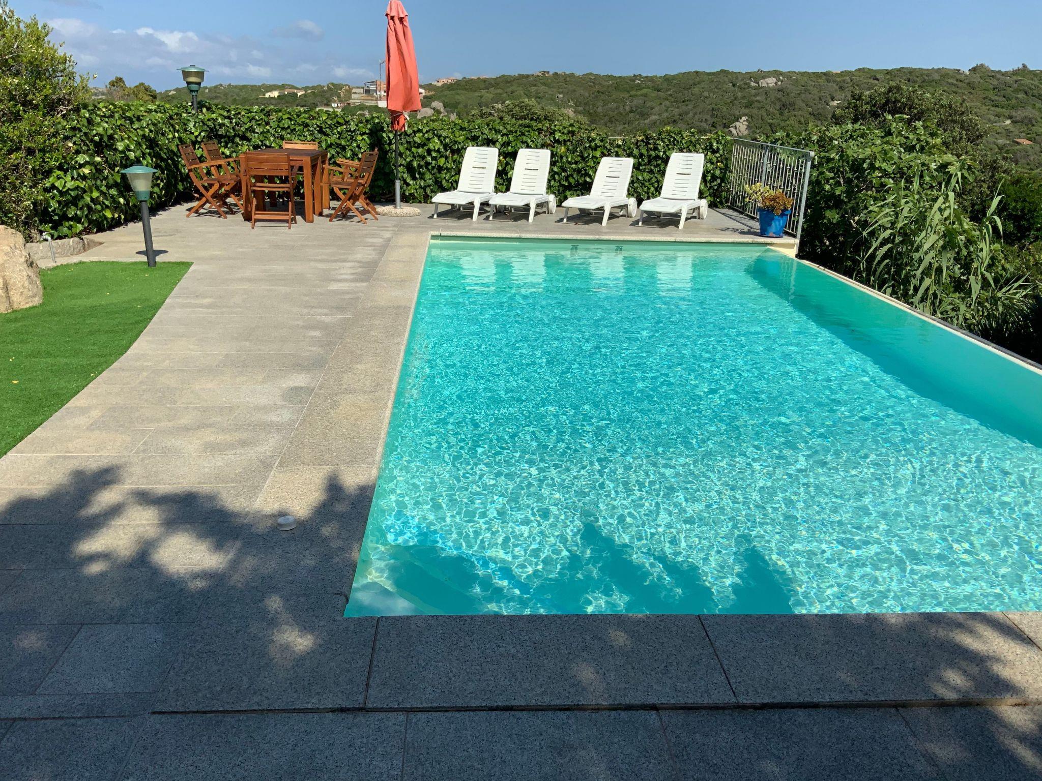 Outside you are welcomed by a sunny veranda with an awning. The 1200 m² site is completely fenced. The fruit and vegetable gardens not only create a relaxing atmosphere, but also ensure adequate privacy. On hot days you can cool off in the pool (open from June to September, with solar heating). There is an outdoor shower with cold water, and a solar-heated cold and warm water shower by the pool. Guests can relax on the terraces and lawns, which afford lovely sea views towards the surrounding islands as far as Corsica. The provided garden furniture and a barbecue corner allow guests to end the day outdoors with a cosy grill evening. For arrivals by car, two parking spaces are available.
