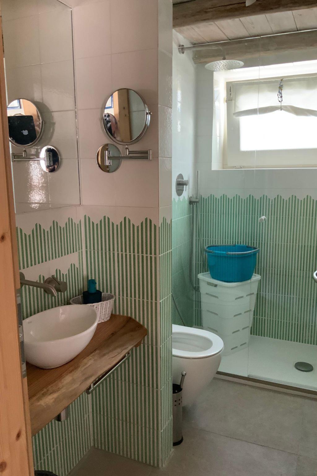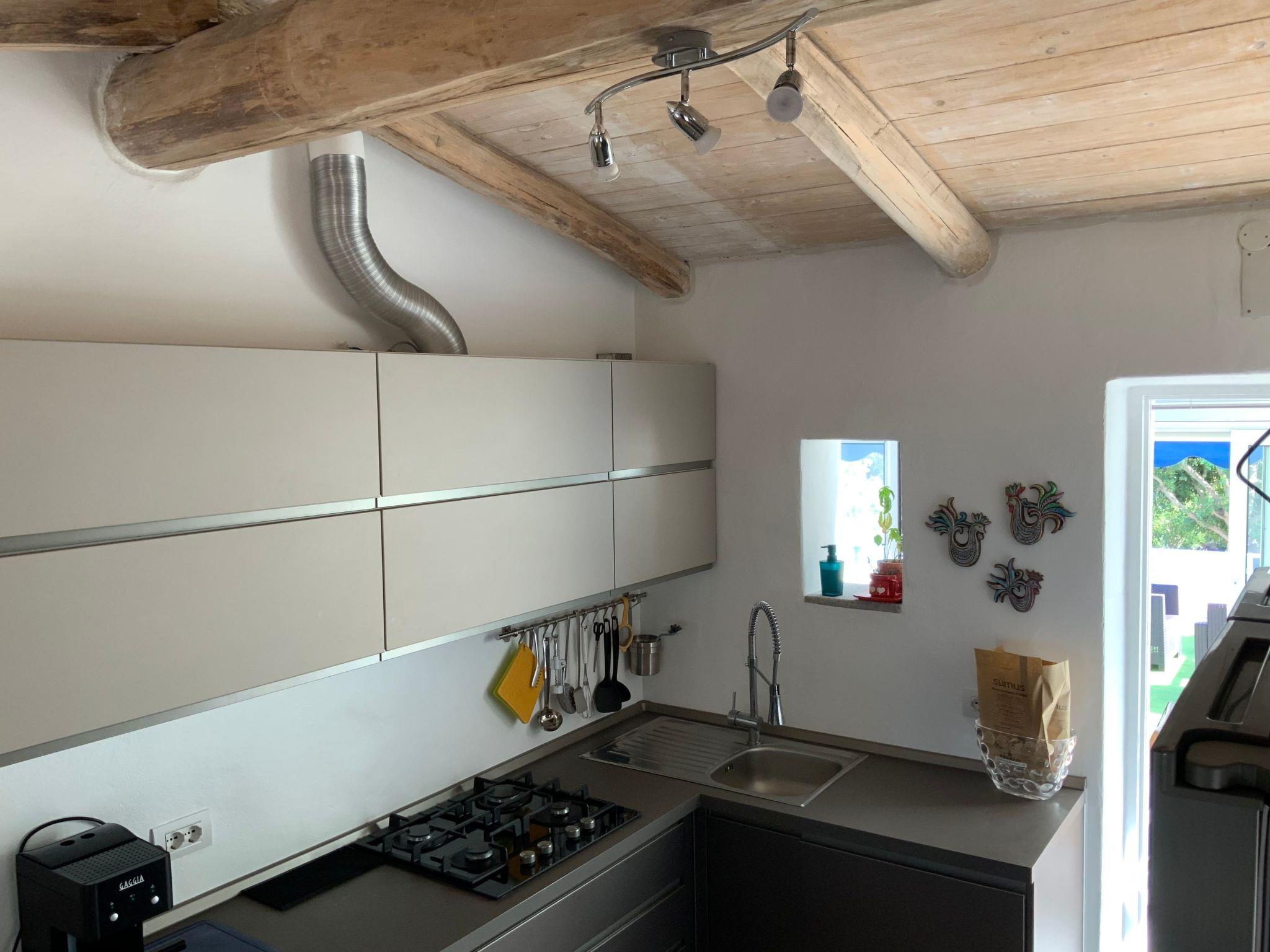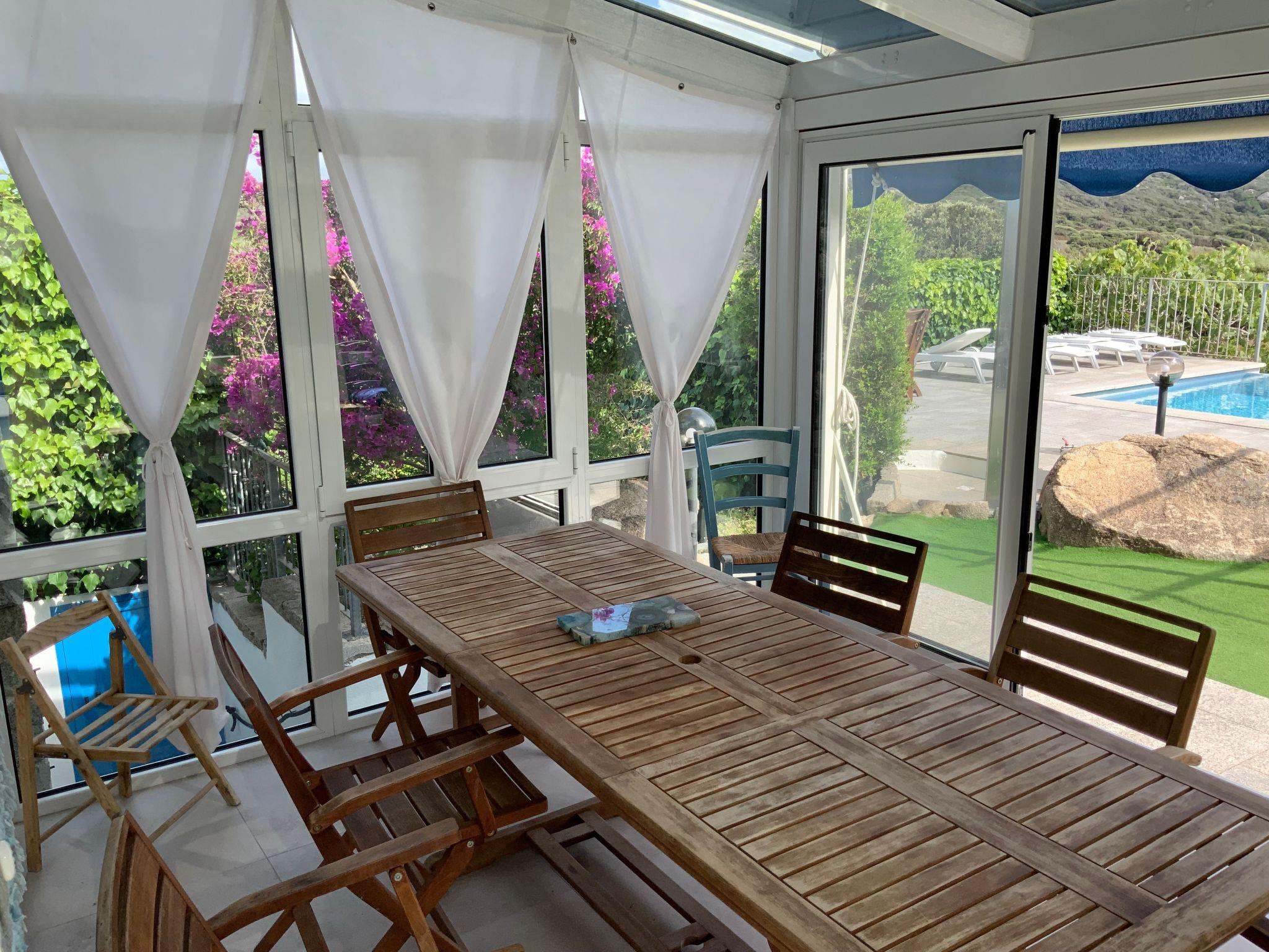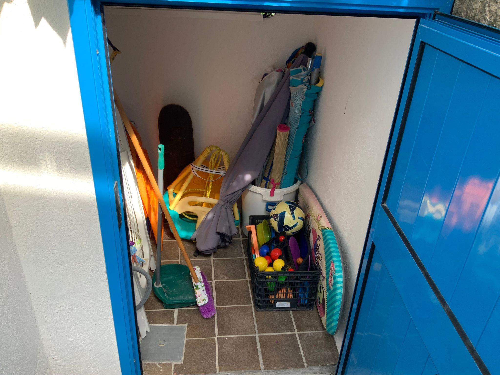 Outside you are welcomed by a sunny veranda with an awning. The 1200 m² site is completely fenced. The fruit and vegetable gardens not only create a relaxing atmosphere, but also ensure adequate privacy. On hot days you can cool off in the pool (open from June to September, with solar heating). There is an outdoor shower with cold water, and a solar-heated cold and warm water shower by the pool. Guests can relax on the terraces and lawns, which afford lovely sea views towards the surrounding islands as far as Corsica. The provided garden furniture and a barbecue corner allow guests to end the day outdoors with a cosy grill evening. For arrivals by car, two parking spaces are available.