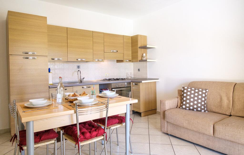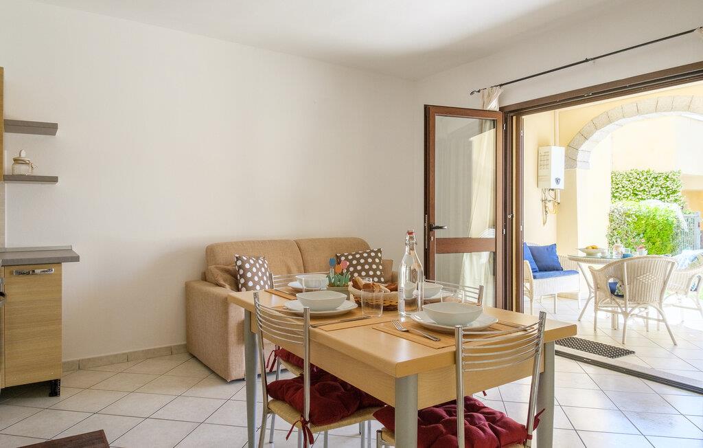Dette lyse feriehus med plads til en større familie er den ideelle base til jeres sommerferie på Sardinien. Køkkenet har direkte udgang til den overdækkede terrasse, hvor I kan nyde jeres måltider eller bare en god kop kaffe. Det ene soveværelse har udgang til den smukt anlagte have.