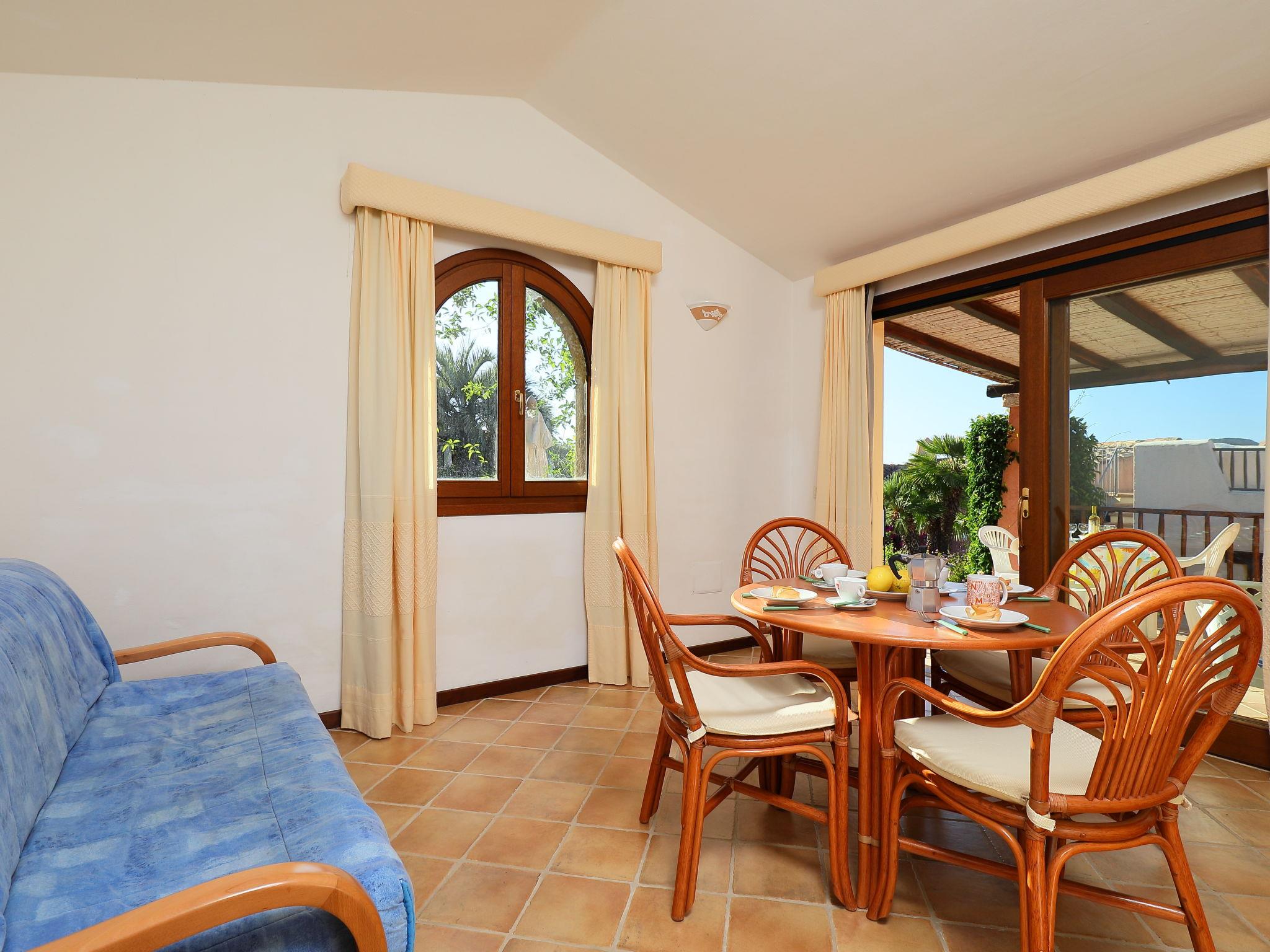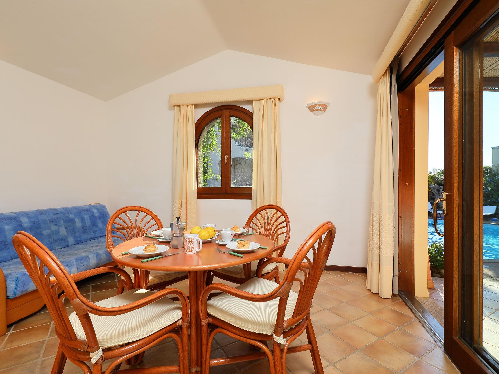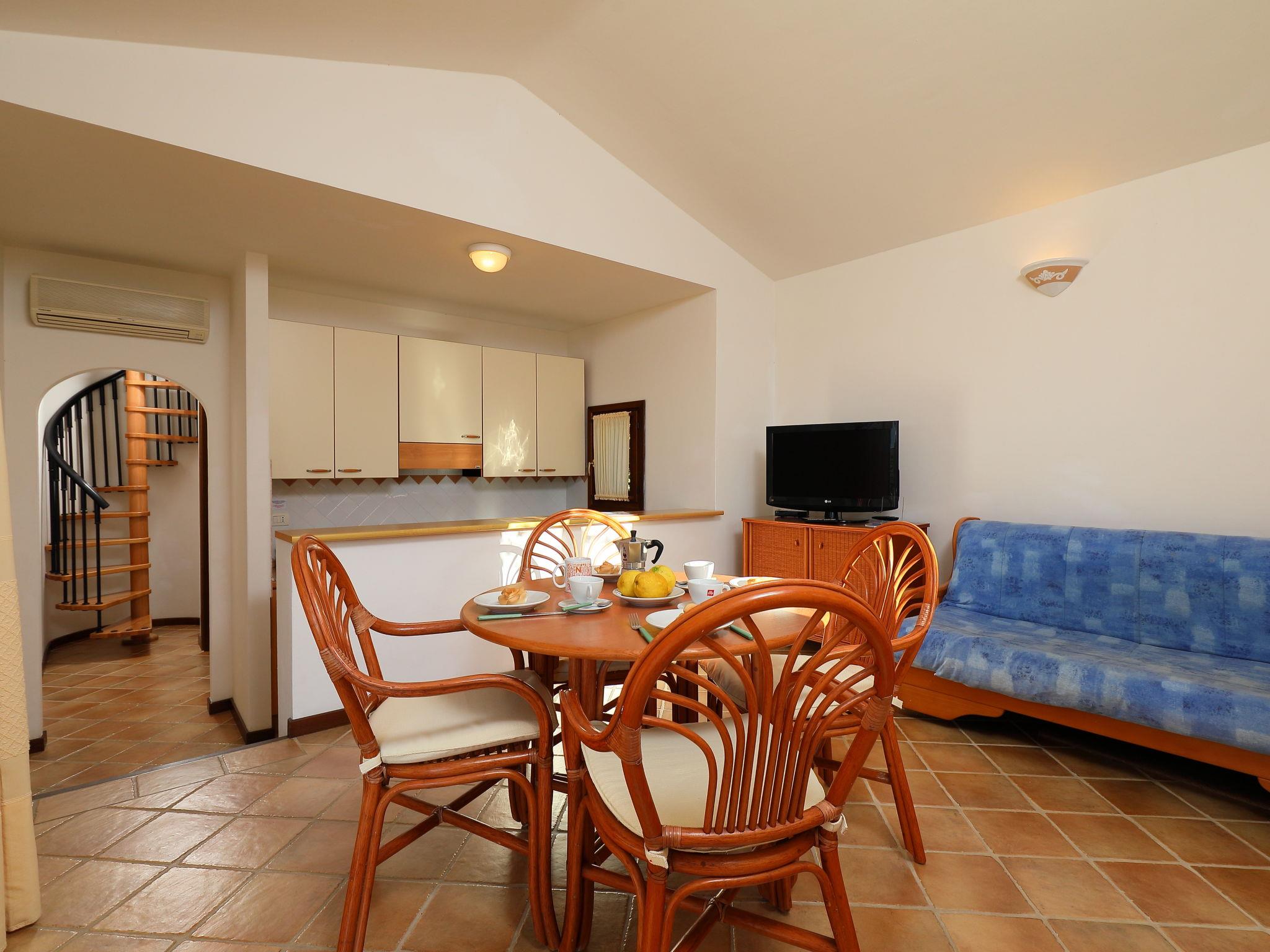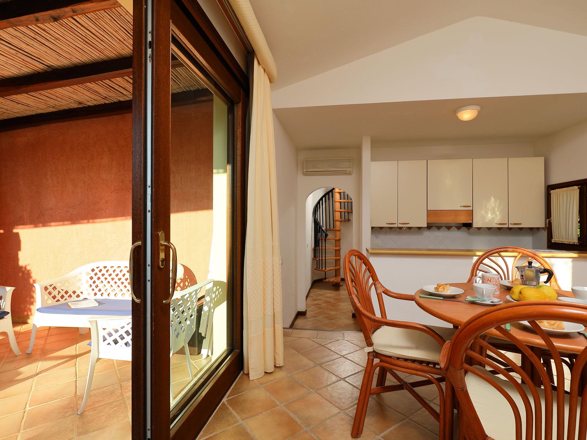 "Erica 22 - Vista Village", 2-room terraced house 52 m2 on 2 levels. Comfortable and cosy furnishings: living/dining room with veranda with 1 double sofabed, dining table, satellite TV and flat screen. Kitchen (4 hot plates). Shower/bidet/WC. Air-conditioning, forced-air heating. Upper floor: (spiral staircase), 1 double bedroom. Terrace roofed, garden. Terrace furniture. View of the swimming pool, the garden and pool. Facilities: safe, hair dryer. Parking space n E22 (roofed, fenced), width 230 cm. Services included: WI-FI in the common areas, access to the swimming pool, use of the tennis court, hairdryer, safe. IT090084B4000E2088