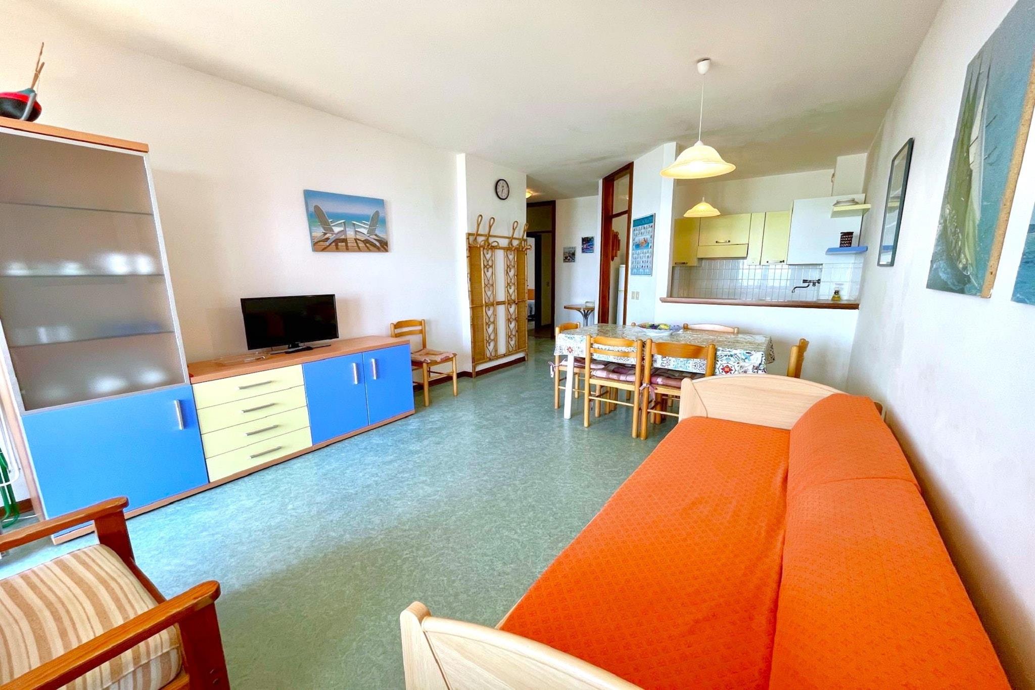Velkommen til denne charmerende lejlighed i Porto Santa Margherita - Caorle, det perfekte sted for en afslappende ferie ved havet! Denne indbydende lejlighed tilbyder alle de bekvemmeligheder, du har brug for til et mindeværdigt ophold. Den fælles have er et dejligt sted, hvor gæsterne kan slappe af, med siddeområder, hvor I kan slappe af og nyde solen. Beliggende i det pulserende Porto Santa Margherita, befinder I jer kun en kort gåtur fra fantastiske strande og den maleriske kystlinje. Nyd vandsport, strandaktiviteter og charmerende strandpromenader. Den nærliggende by Caorle tilbyder en dejlig blanding af historie og kultur med sin farverige arkitektur, hyggelige butikker og lækre restauranter, der serverer frisk fisk og skaldyr. Træd ind i den hyggelige stue, som har en enkelt sovesofa, et spisebord og et tv, hvilket skaber en varm atmosfære til familiesammenkomster eller rolige aftener derhjemme. Det åbne køkken er veludstyret, hvilket gør det nemt at tilberede lækre måltider, som I kan nyde sammen. Lejligheden har to komfortable soveværelser, begge møbleret med en dobbeltseng og en enkeltseng - designet til en fredelig søvn, så I vågner friske op og er klar til at udforske. Gå udenfor til din private balkon, hvor du kan nyde din morgenkaffe eller et glas vin i aftenbrisen. Yderligere faciliteter inkluderer aircondition, Wi-Fi og parkering på stedet for ekstra bekvemmelighed. Denne lejlighed i Caorle Port Santa Margherita er perfekt til rejsende, der søger komfort, bekvemmelighed og nem adgang til stranden. Den tilbyder en mindeværdig italiensk ferie ved havet med fælles pool og en førsteklasses beliggenhed ved kysten.