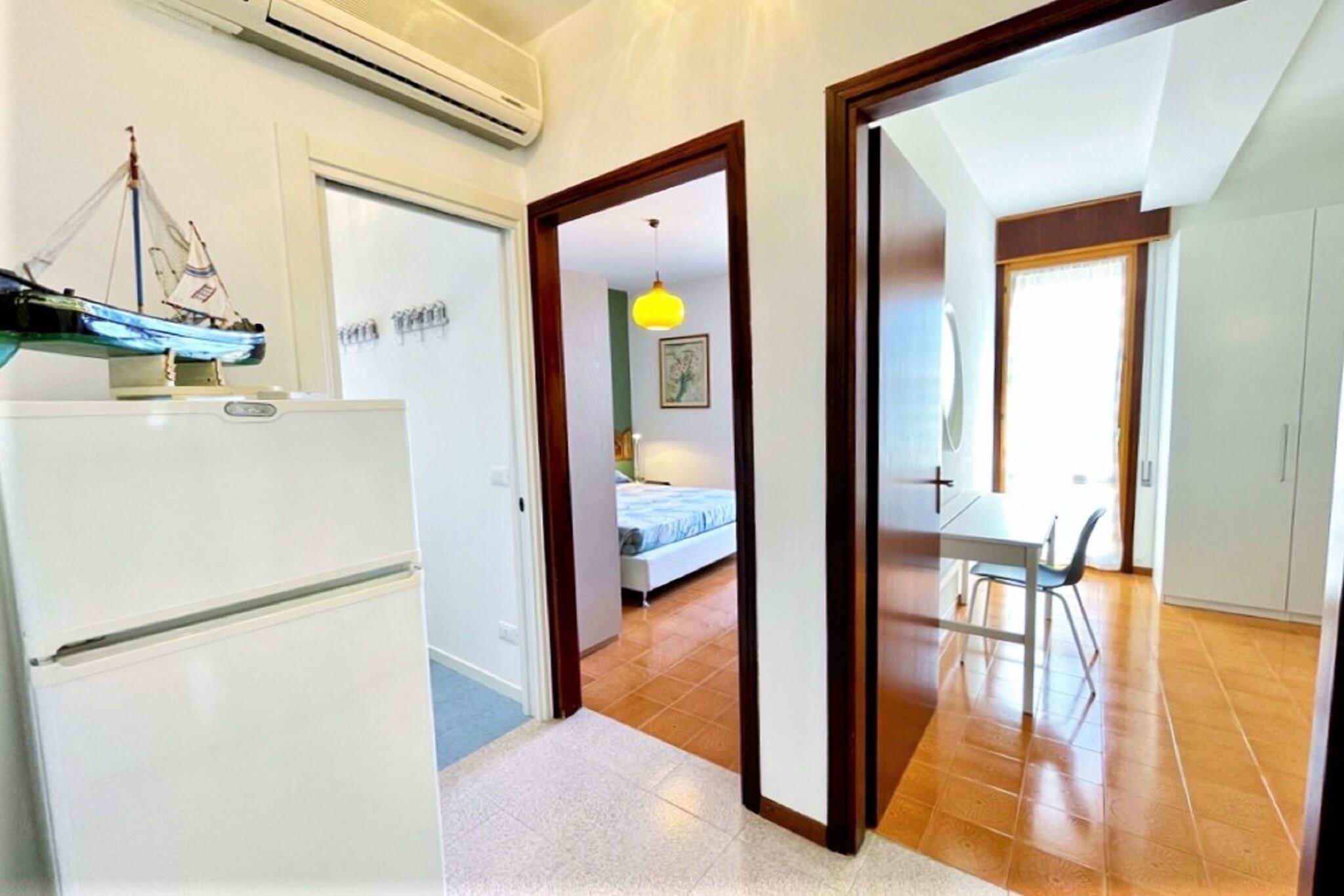 Komfort og faciliteter ved havet Denne lejlighed på første sal til fem personer ligger kun 500 m fra sandstranden i Porto Santa Margherita og tilbyder en lys stue med en sovesofa til én person, tv og spiseplads. Det tilstødende køkken er udstyret med kogeplader, emhætte, mikrobølgeovn, køleskab med fryser og håndvask, ideelt til at tilberede lette måltider. Aircondition og gratis Wi-Fi sikrer et køligt og forbundet ophold, mens privat parkering giver ro i sindet. Afslappende soveværelser og udendørsområde Slap af i det komfortable dobbeltværelse eller i det sjove køjesengsværelse, perfekt til børn eller ekstra gæster. Et moderne badeværelse har bruser, bidet og håndvask. Gå ud på balkonen for at nyde morgenkaffen eller aftenaperitiffer i middelhavsbrisen. Fremragende beliggenhed og lokalt liv Beliggende på Via Dandolo er du inden for gåafstand af caféer, gelateriaer og strandbarer. Udforsk det nærliggende Lido di Jesolo eller tag en færge til Venedig (30 km). Uanset om du solbader, cykler langs promenaden eller smager på venetianske fiske- og skaldyrsspecialiteter, er denne lejlighed din ideelle base for en mindeværdig ferie ved Adriaterhavet.