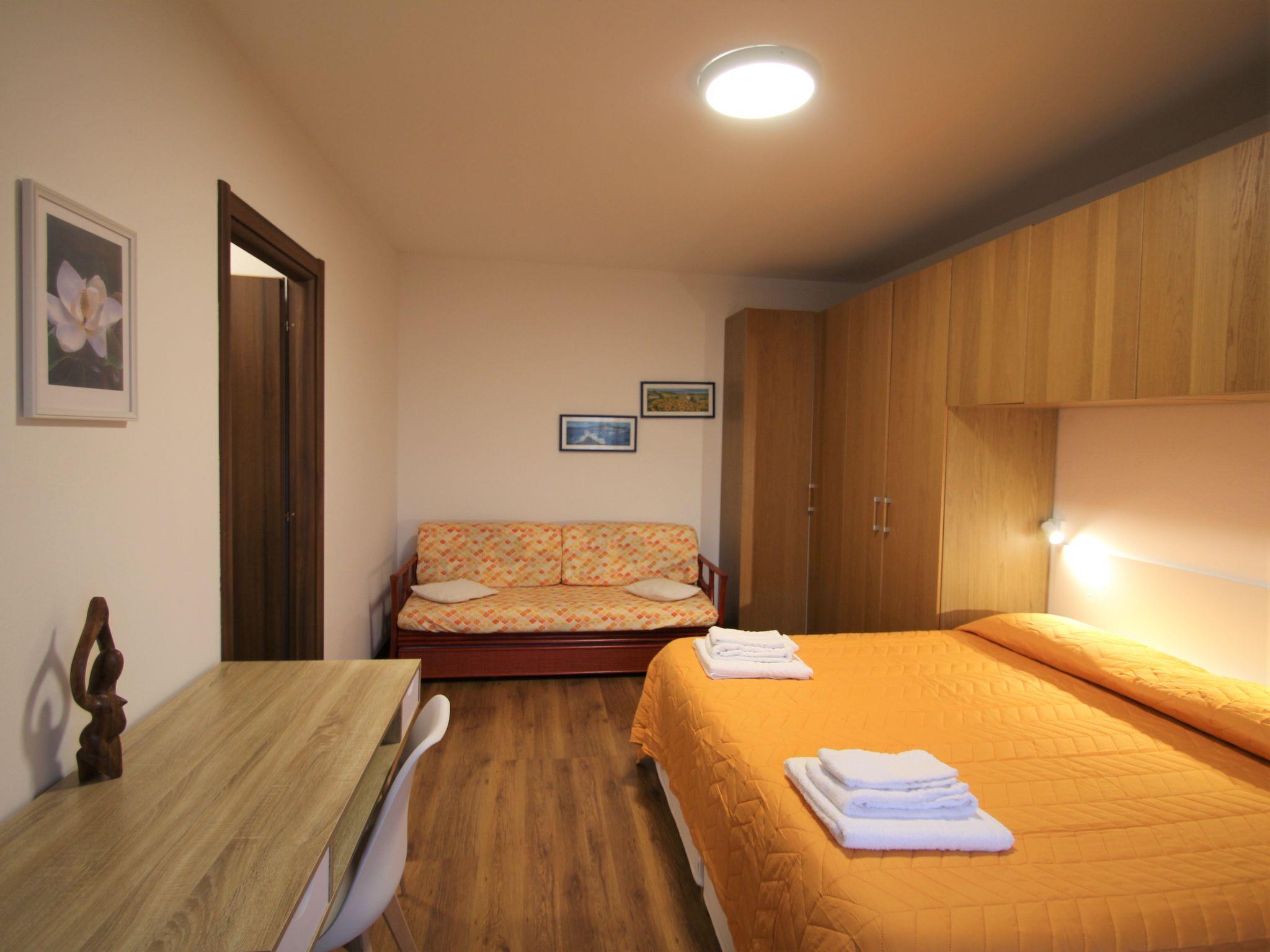"Magnolia", 2-room apartment 55 m2 on 1st floor. Practical furnishings: living/dining room with 1 bed, 1 pull-out bed and TV. Exit to the balcony. 1 double bedroom. Kitchenette (4 hot plates, oven, toaster, kettle, microwave, freezer, electric coffee machine). Bath/bidet/WC. Gas heating (extra). Heating available only from 20.10. to 10.04. Small balcony. Facilities: iron, hair dryer. Internet (WiFi, free). Please note: apartment street side. Non-smoking house. Smoke alarm, fire extinguisher. IT012114C2BEUPLBTM