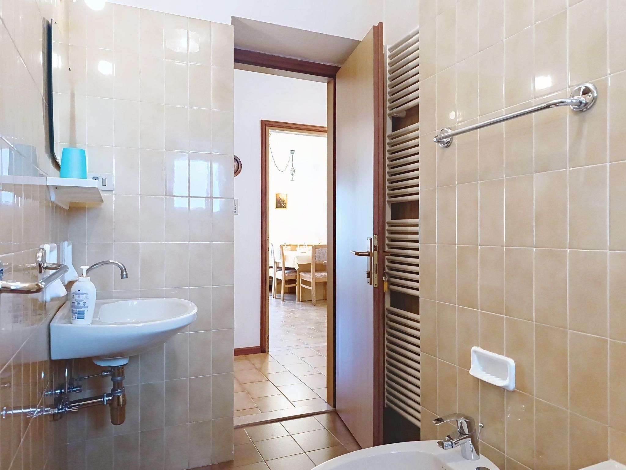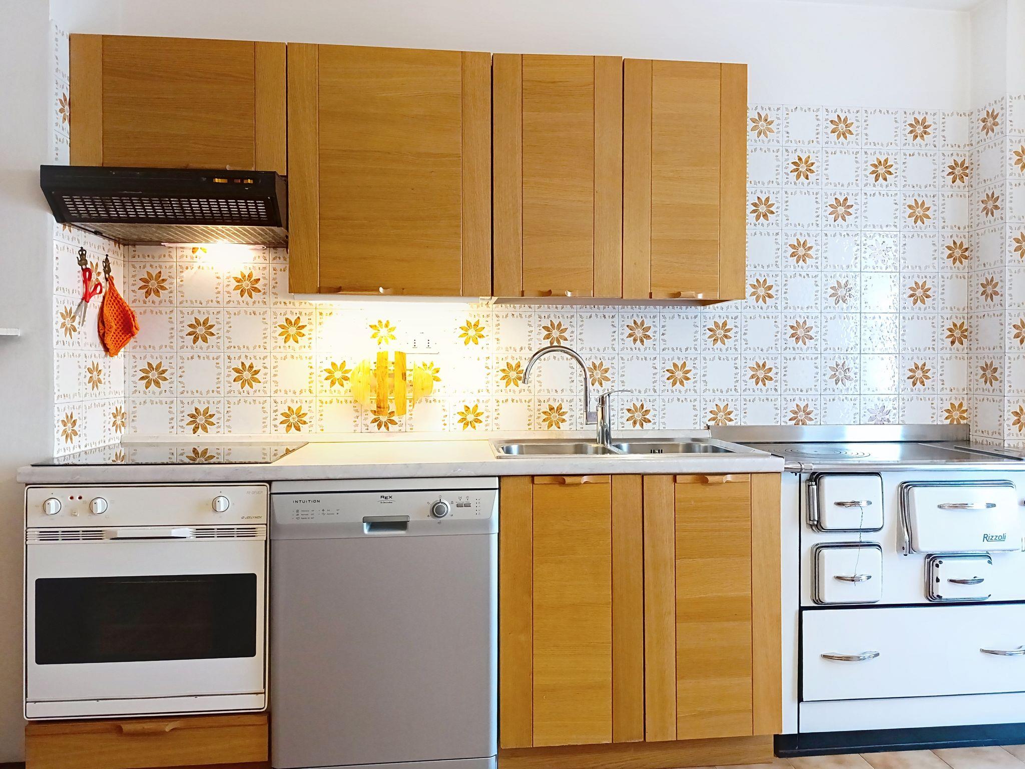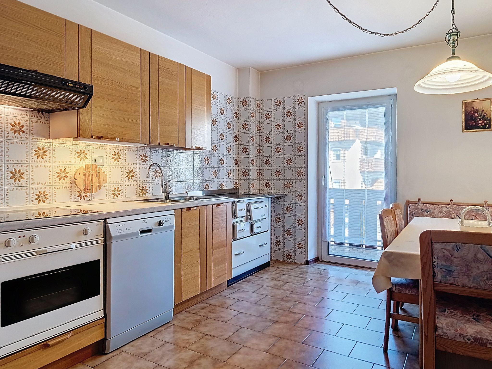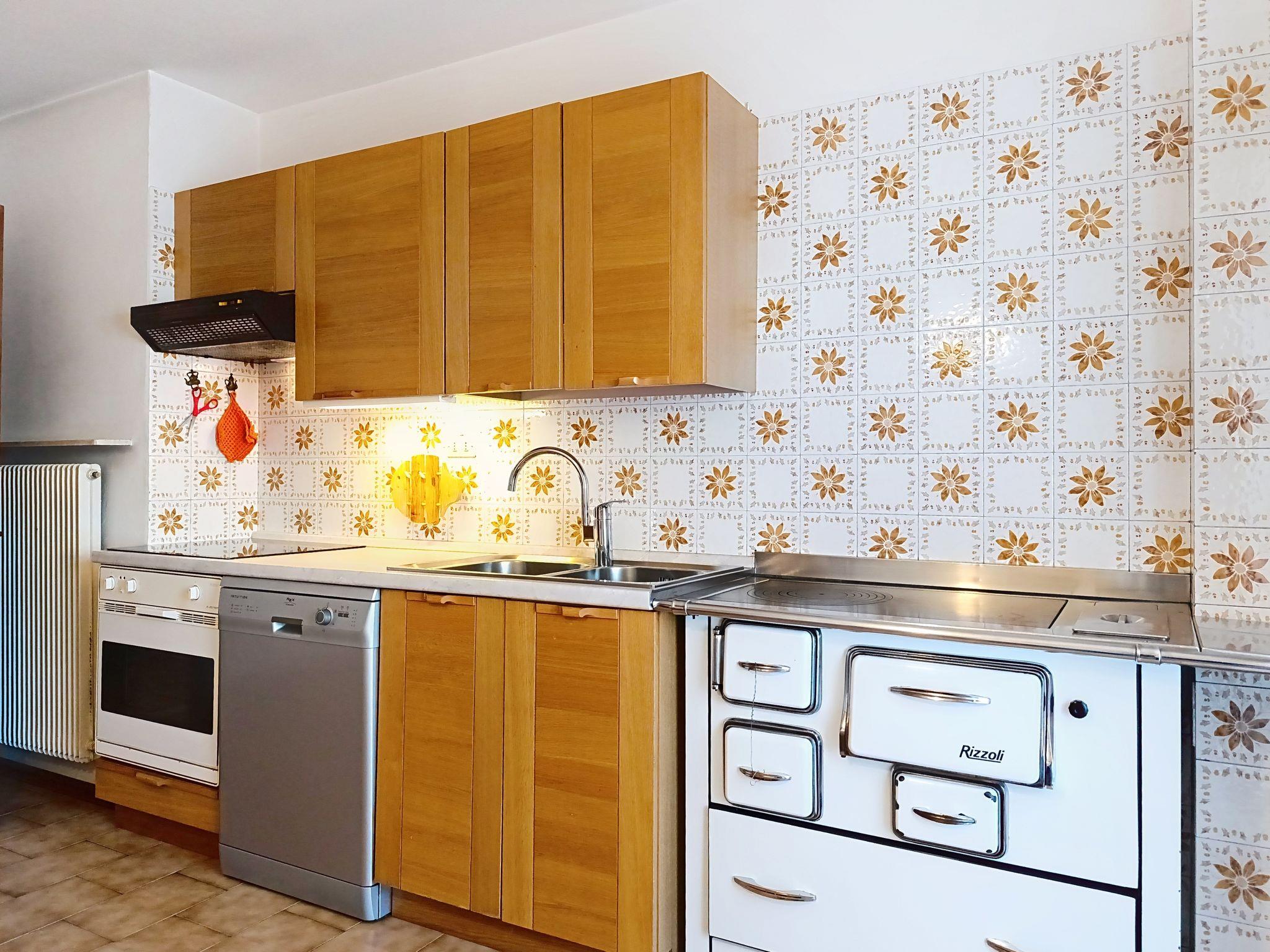 "Cesa Marco", 5-room apartment on 1st floor. Simple furnishings: entrance hall. 1 room with 1 bed. Exit to the terrace. 1 room with 1 double bed. Exit to the balcony. 1 room with 2 beds. Exit to the terrace. 1 room with 1 double bed. Exit to the terrace. Living room with Scandinavian wood stove (only for decoration), TV. Exit to the balcony. Kitchen (4 hot plates, oven, dishwasher) with dining table. Exit to the balcony. Bath/bidet/WC, shower/bidet/WC. Heating available only from 01.12. to 01.05. Very beautiful view of the mountains and the town. Facilities: washing machine, hair dryer. Internet (WiFi, free). Parking (2 cars). Please note: non-smokers only. Smoke alarm, fire extinguisher, no lift. IT022250C28KAV6VGC