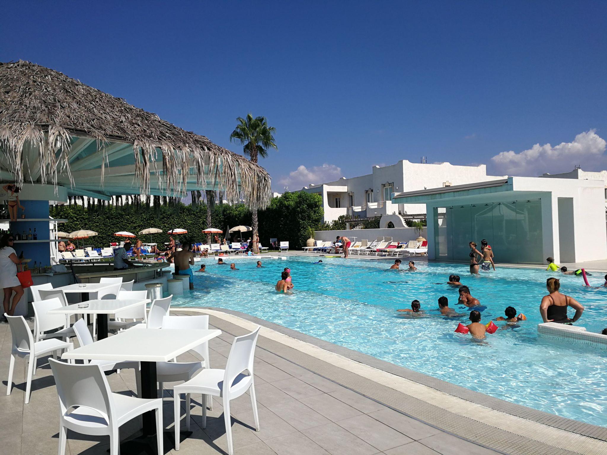 The well-equipped beach of fine, golden sand is just 300 m from the resort with a large car park. A crystal-clear sea with a gently sloping seabed makes bathing easy and safe even for children.