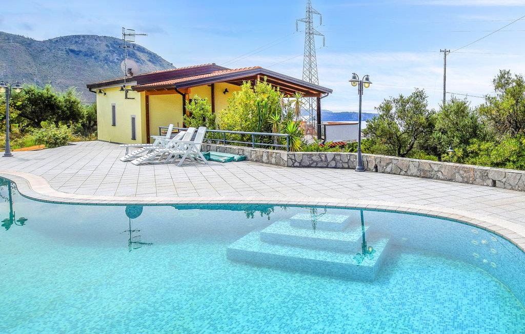 Dette skønne feriehus ligger 2,5 km fra Praia a Mare i panoramaomgivelser med udsigt til det Tyrrhenske hav langs dei Cedririvieraen i Kalabrien. Boligen ligger i en indhegnet have og rummer en stor, delvist overdækket terrasse med bord og stole til behagelige måltider i det fri og med panoramaudsigt over havet og kysten, med de typiske farver i den mediterrane maki. Den skønne private pool i hvis kant der står havemøbler og liggestole er ideelle både til solbad og når dagens måltider skal nydes. Huset er i to plan, hovedindgangen ligger på første sal, hvor der også er en stor stue med køkken og et badeværelse og udgang til panoramaterrassen og poolen. I stueplan er der fire soveværelser, alle med eget bad og klimaanlæg og udgang til haven. Et ideelt rejsemål, når I vil opleve den naturskønne kyst, med de flotteste strande og byer i Kalabrien. Byer som Diamante, Belvedere Marittimo, Scalea og det nærliggende Maratea med klubber, diskoteker og pubs er nemme at nå. Alle former for nærliggende butikker og services er heltårsåbne. Lufthavnen i Lamezia Terme: 134 km. Tag gerne jeres husdyr med på ferie.
