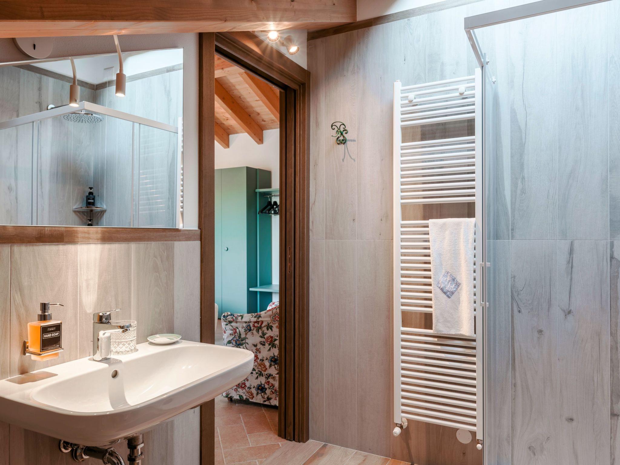 Inside, the flat is equipped with air conditioning and underfloor heating in every room, ensuring a comfortable stay in every season. Guests will enjoy the convenience of a kitchen equipped with a capsule coffee machine and dishwasher, facilitating the preparation of meals. The presence of two bathrooms with showers adds further convenience, making the accommodation ideal for families or groups of friends.