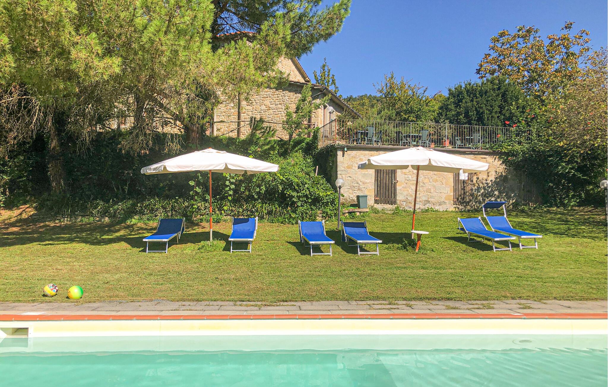 Tilbring afslappende dage i dette naturstenshus med adgang til poolen.
