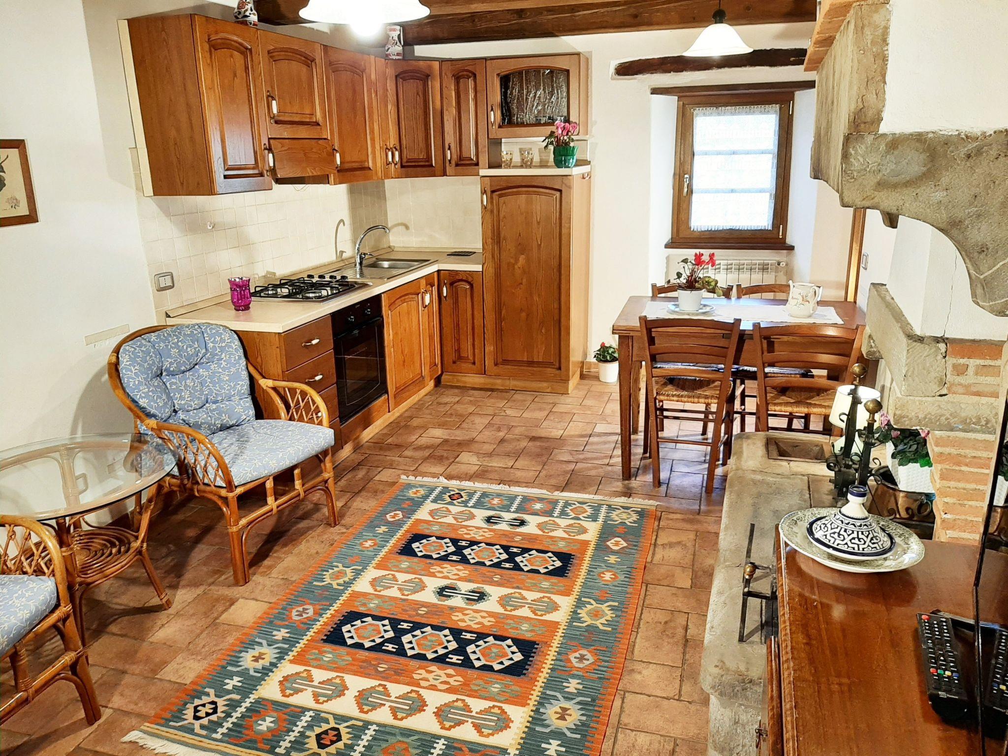 PRATOVECCHIO - Casalino - TUSCAN PIETRA RUSTICO TOSCANO - IL CAMINETTO Three-roomed apartment sqm. 65, 1st floor (sleeps 5) - large kitchen-living room with stone fireplace, double bedroom + 1 single bed, bedroom with 2 single beds, bathroom with shower, washing machine, TV, garden, barbecue. WI-FI