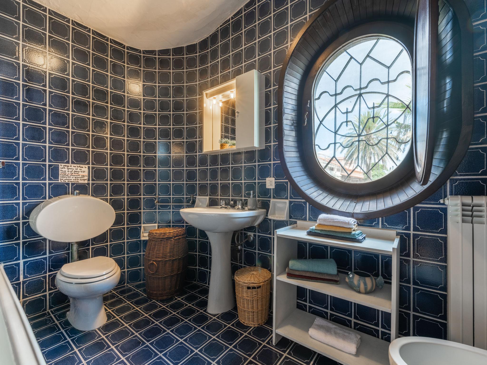 "Villa Grete", 6-room villa 140 m2 on 2 levels. Comfortable and tasteful furnishings: living/dining room with satellite TV. Exit to the terrace. 2 rooms, each room with 1 double bed with air conditioning. Kitchen (4 hot plates, oven, dishwasher, kettle, microwave, electric coffee machine). Bath/bidet/WC, shower/bidet/WC. On the lower ground floor: 2 rooms, each room with 2 beds and air conditioning. Shower/bidet/WC. Terrace 10 m2, roofed, large patio roofed, garden. Balcony furniture, barbecue, deck chairs. Marvellous view of the sea. Facilities: washing machine, children's high chair, baby cot, hair dryer. Internet (WiFi). Parking. IT092050C2000T9675