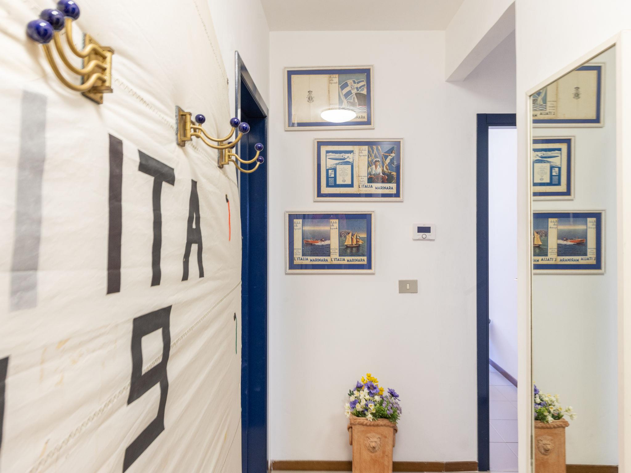 "Il Veliero", 4-room apartment 145 m2 on 1st floor. Spacious and bright, cosy furnishings: living/dining room 30 m2 with panoramic window with dining table and TV. 1 large double bedroom 18 m2 with shower/bidet/WC. Exit to the balcony. 1 double bedroom 17 m2. 1 room with 1 french bed (140 cm). Exit to the balcony. 1 small room with 2 x 2 bunk beds. Exit to the balcony. Open kitchen (dishwasher, 4 gas rings, microwave, electric coffee machine). Shower/bidet/WC, hip bath/bidet/WC, sep. WC. 4 small balconies. Marvellous view of the sea and the port. Facilities: washing machine, baby cot for up to 2 year olds (extra). Garage (2 cars) at the house. Please note: non-smokers only. Maximum 1 pet/ dog allowed. IT053006C22WP8WC93