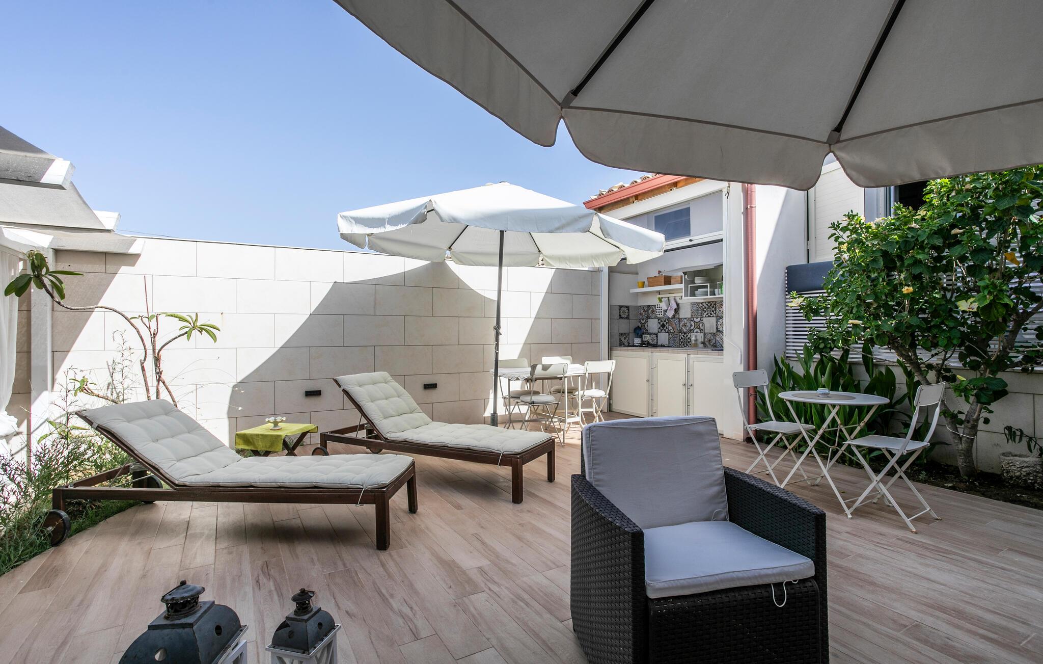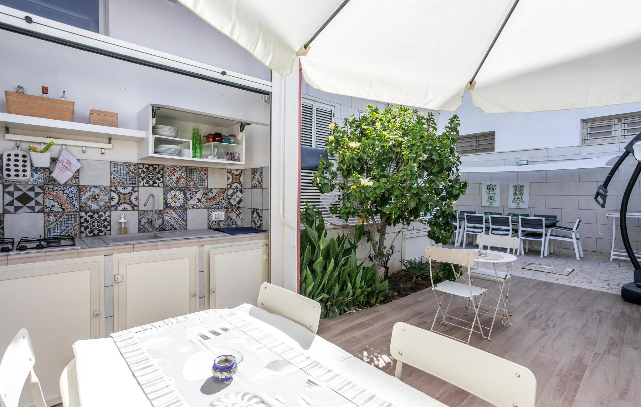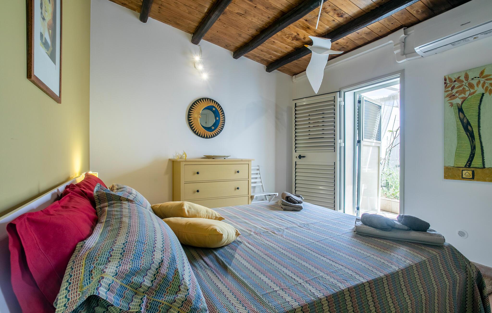 Velkommen til dette charmerende hus, der ligger tæt på stranden og tilbyder alt, hvad I behøver for en pause i middelhavsstemning. Glæd jer til hyggelige aftener, når I vender tilbage fra jeres udflugter eller en dag på stranden, lav mad sammen, og slap af på sofaen efter middagen.