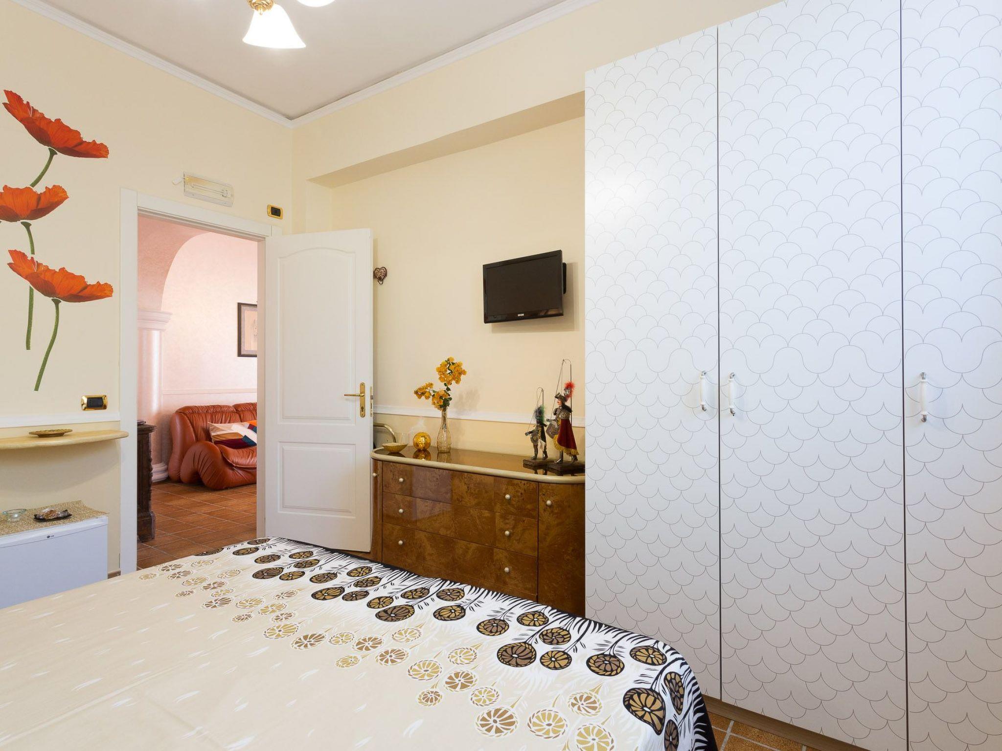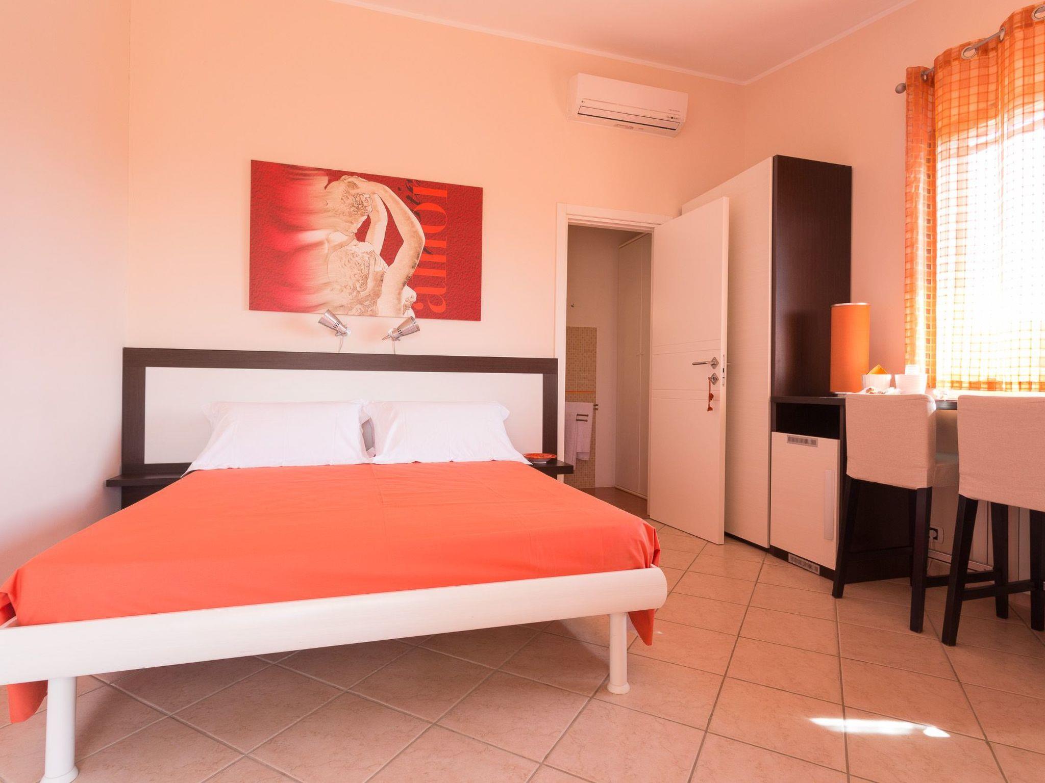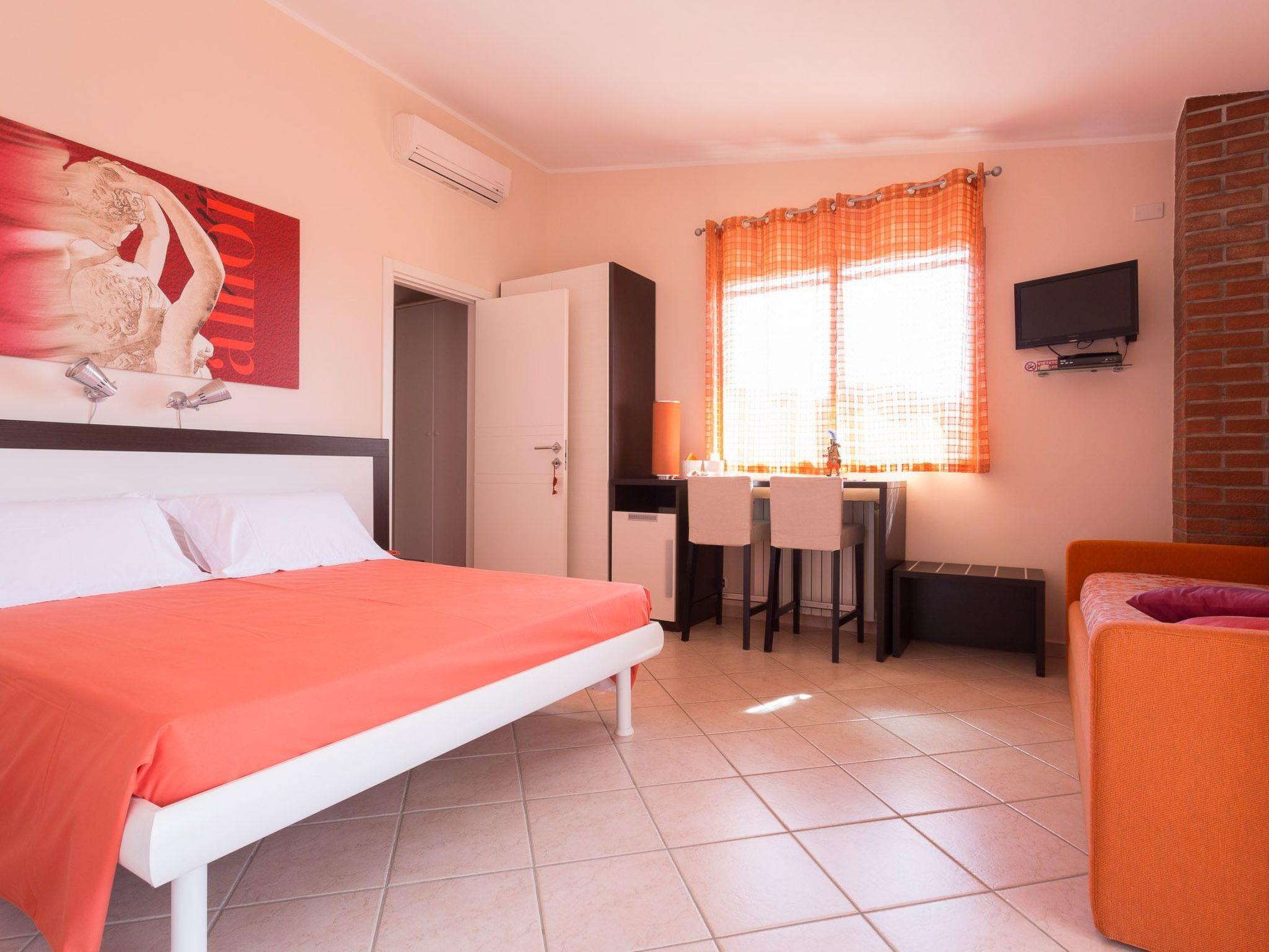 The orange room is very large and has a double bed and a sofa bed that can extend to become a comfortable bunk bed if necessary. The orange room also has a separate entrance and overlooks the furnished terrace.