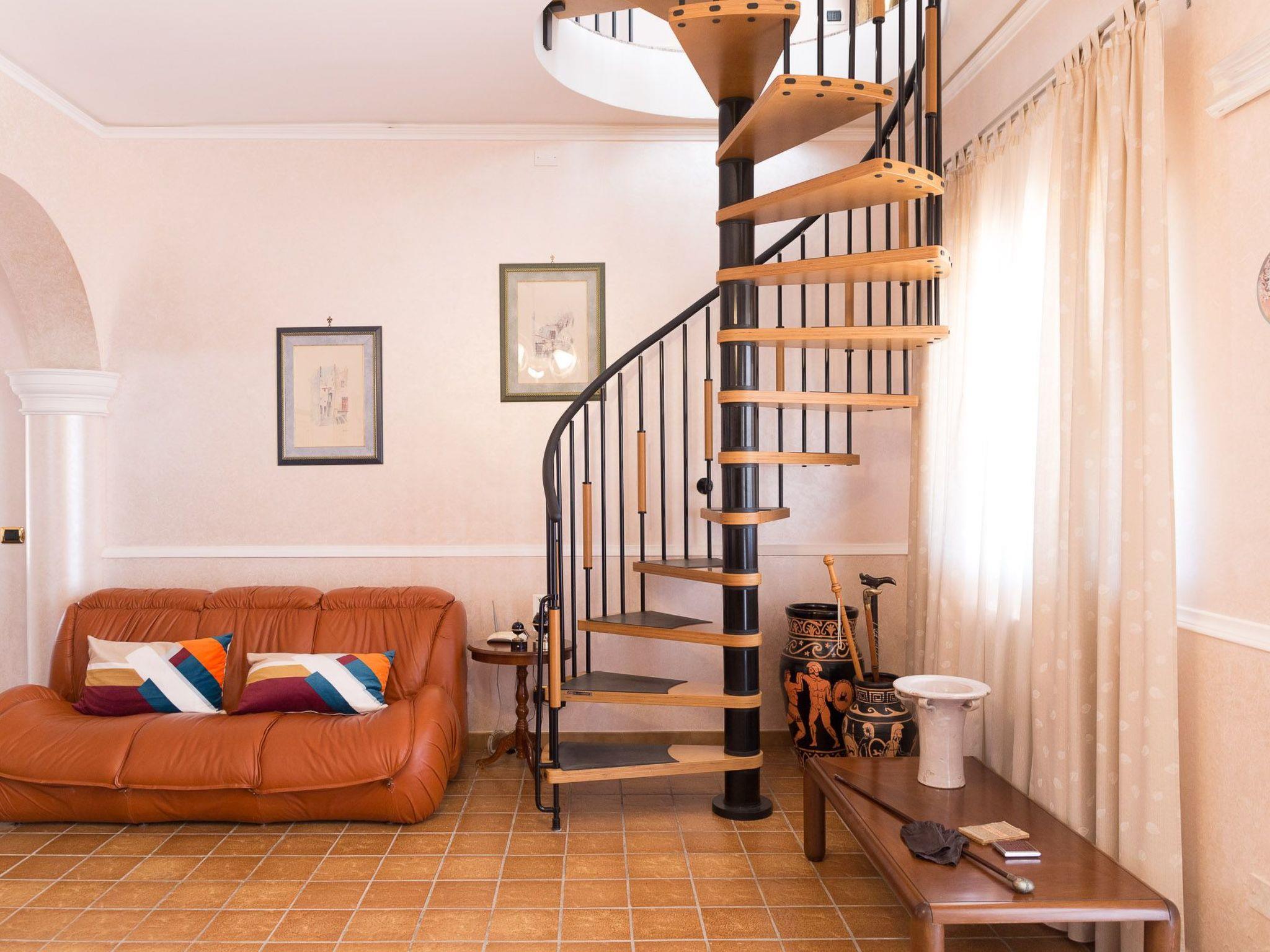From the living room, a spiral staircase leads to the first floor (which can also be accessed from the outside via a flight of steps) which enjoys a lovely furnished terrace with a sea view.