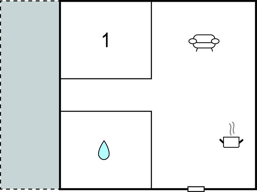 Opholdsstue/køkken 20m2 - 2 Sovepladser. (Sofa, madras eller lignende).