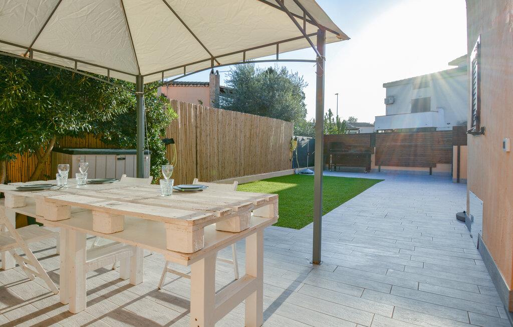 Dette moderne feriehus lover jer og familien harmoniske dage på Sardiniens solbeskinnede sydkyst. Tilbered lækre måltider med lokale råvarer i det stilfulde køkken og Hold jeres kreationer ved det indbydende spisebord. Slap af i den komfortable sofa i den hyggelige opholdsstue og afslut dagen med et glas vin eller en god bog.