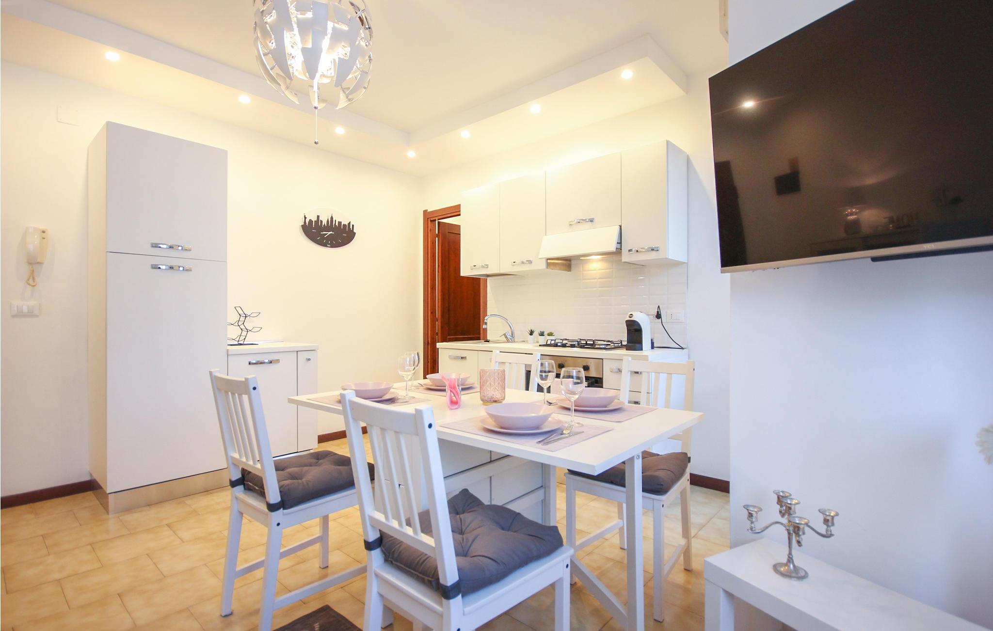Velkommen til denne smagfulde, lyse lejlighed, hvor der er gode rammer til et par eller den lille familie. Her kan I slappe af med at lave lækre retter i køkkenet efter en lang dag på farten. Sæt jer med morgenkaffen i det lille rum med havemøbler og spil kort eller læs en bog, når I trænger til en lille pause.