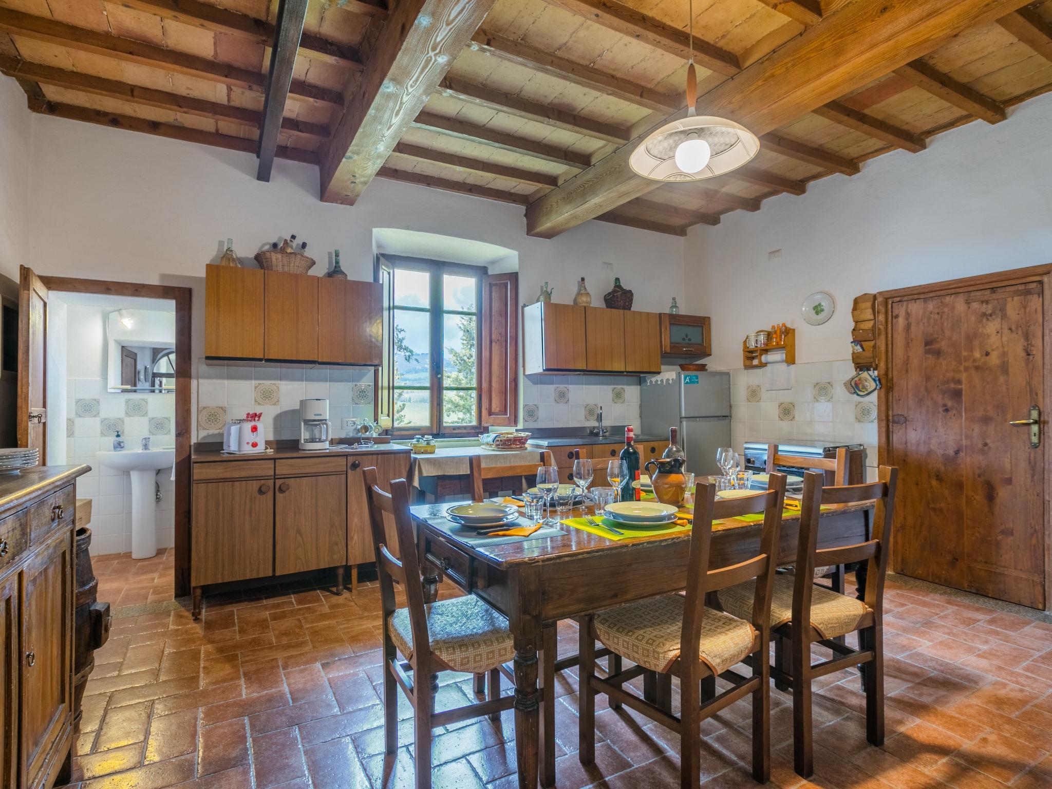"La Terrazza", 4-room semi-detached house 150 m2 on 2 levels. Practical and antique furnishings: large entrance hall. Living/dining room with TV. Exit to the terrace. Large kitchen (4 hot plates, oven, toaster, kettle, microwave, freezer, electric coffee machine) with open-hearth fireplace. Sep. WC. Upper floor: 1 double bedroom 25 m2. 1 double bedroom 25 m2 with shower/bidet/WC. 1 room 20 m2 with 2 beds. Shower/bidet/WC. Terrace 10 m2. Terrace furniture, barbecue. Panoramic view of the countryside. Facilities: washing machine, iron, children's high chair, baby cot for up to 2 year olds, hair dryer. Internet (WiFi, free). Maximum 2 pets/ dogs allowed. IT052023C25AZMXXFP