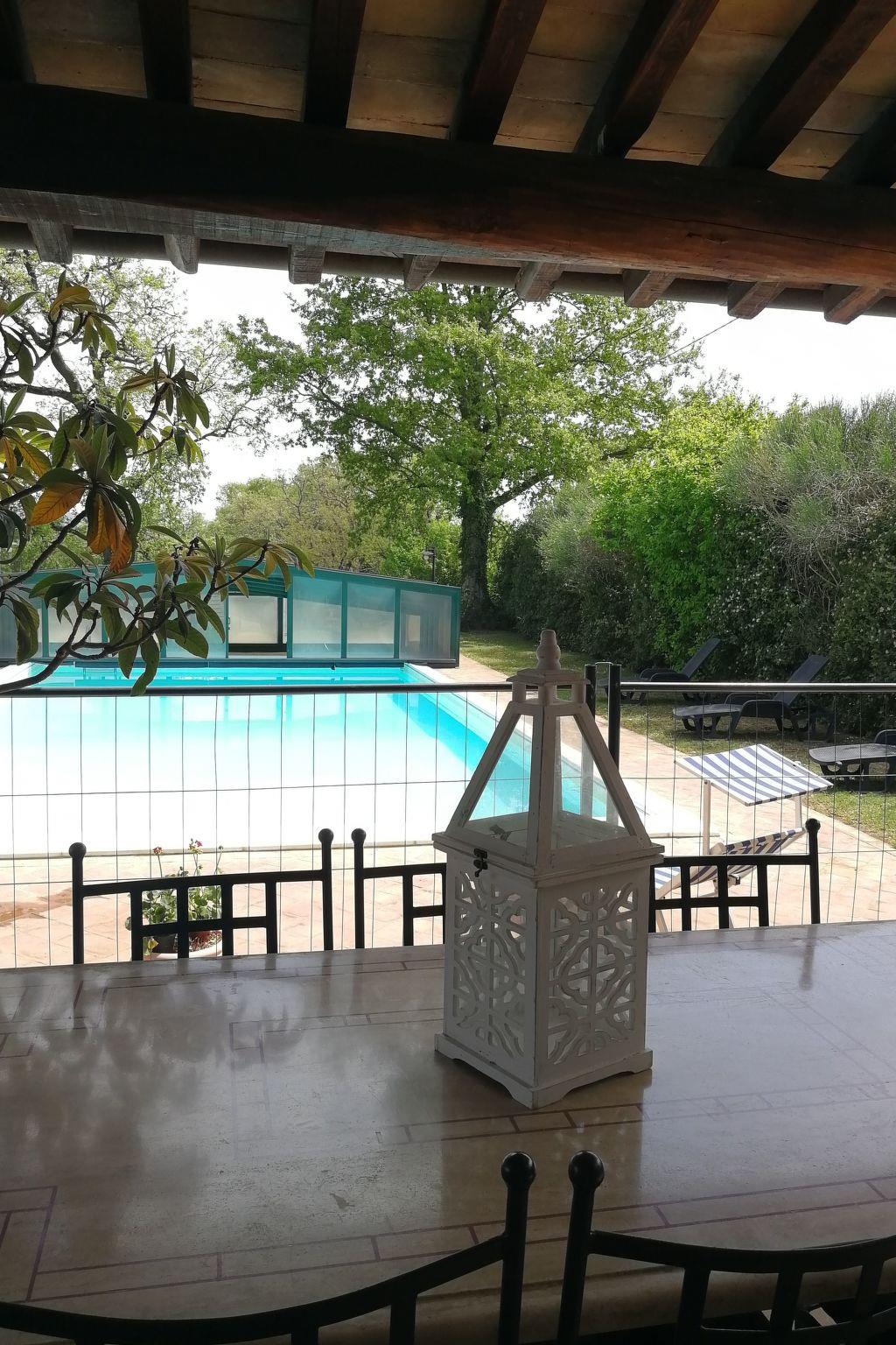 In the large garden, a wonderful swimming pool with a panoramic view invites you to swim and relax. It is used exclusively by the guests of this house and is cleaned every morning. The pool measures 6 x 12 m and the water depth varies from 1.50 to 2.20 m. You can also enjoy barbecue evenings outdoors; there is even a wood-burning oven. It is possible to eat outdoors at any time, in the large veranda with a stone table, covered by a pergola. The estate includes a five-hectare olive grove, one hectare of which is fenced off around the house, so that even your four-legged friends have ample freedom. The property has four covered parking spaces. The family-run property has been renovated using traditional materials and therefore conveys a special kind of hospitality. It offers the ideal setting for a relaxing holiday in the fresh air and with good food.