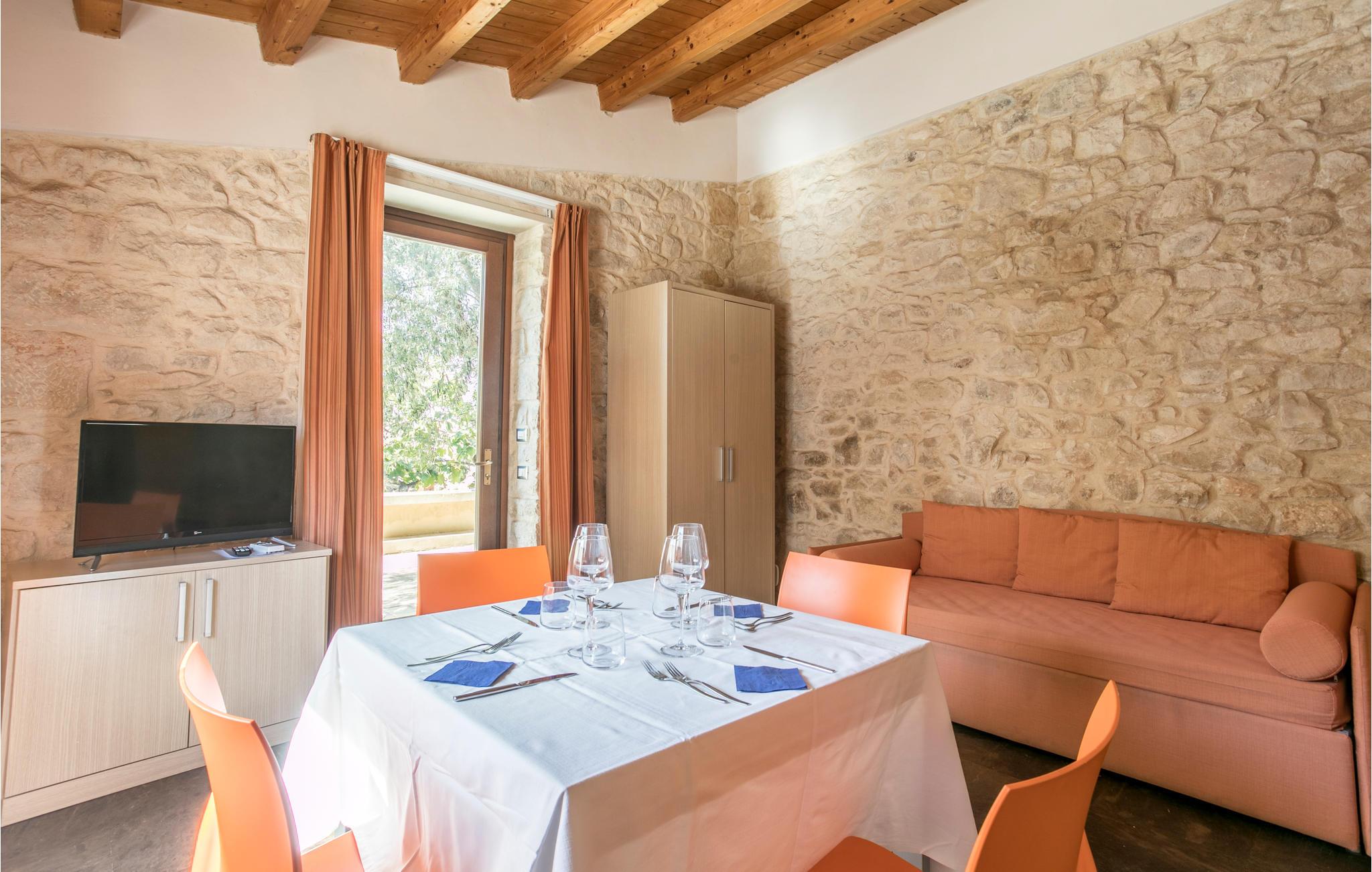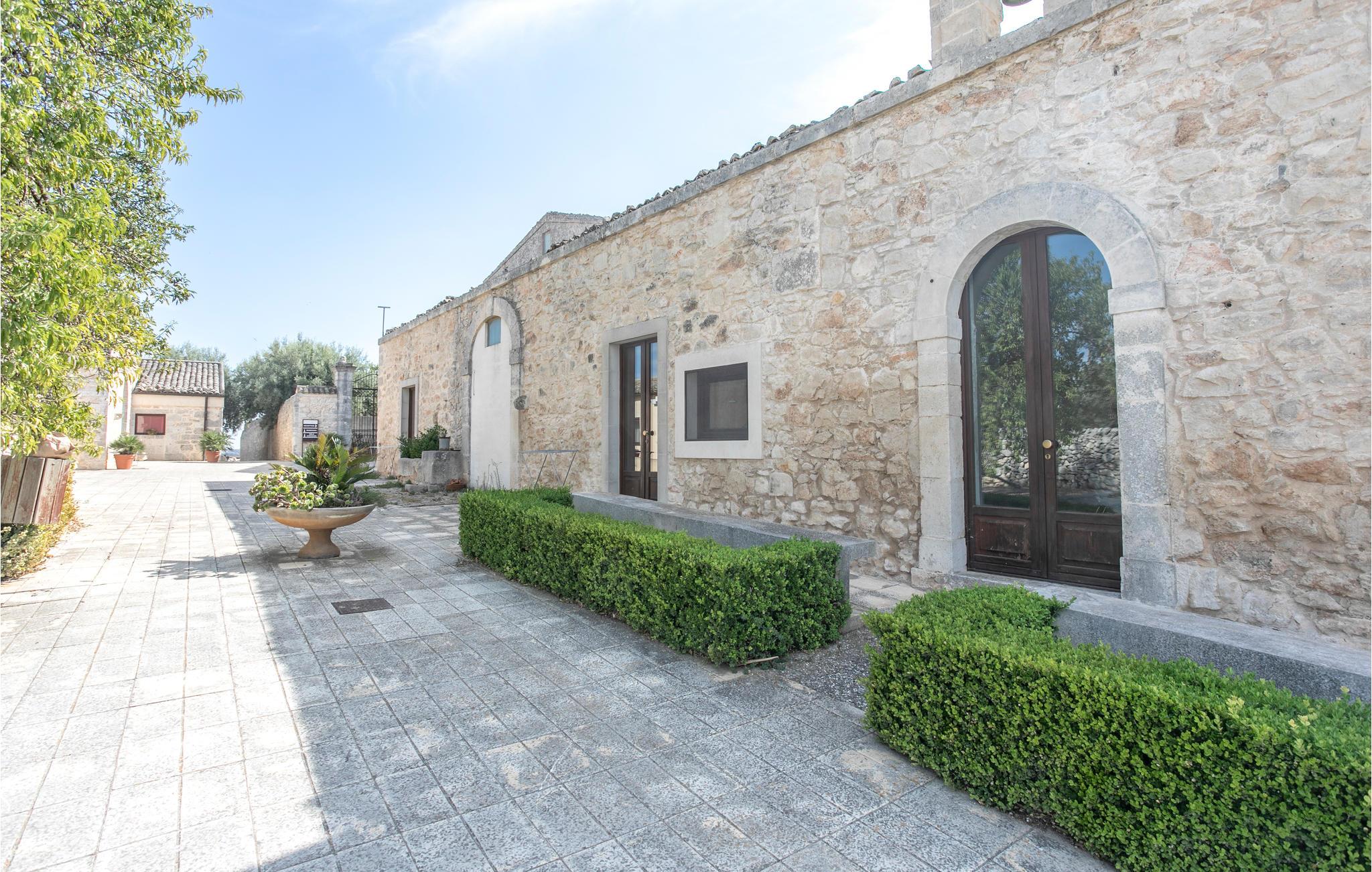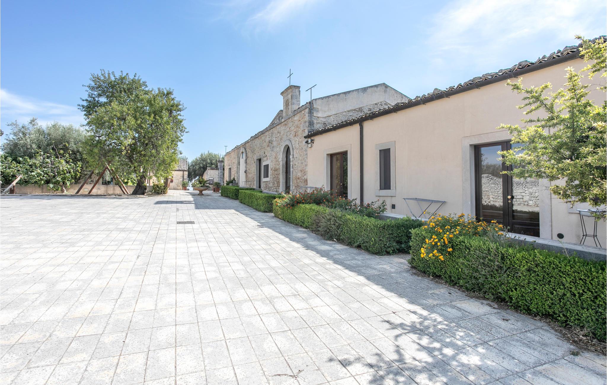 Hold en helt speciel ferie i denne ferielejlighed i et restaureret 19. århundrede palæ, der ligger på et stort gods i det sydøstlige Sicilien. Adgang til lejligheden via en stor gårdhave, omgivet af forskellige bygninger. Privat, møblereret udendørs område med legeplads, fælles grill. Andre fælles faciliteter: Pool (ca. 70 m²) der har et massagehjørne med 8 hydromassagedyser. På ejendommen er der ridestalde, så I kan få rideundervisning og tage på ture på hesteryg i den smukke natur. Andre udflugtsmuligheder: 4 km Donnafugata, 27 km Chiaromonte Gulfi, 14 km Comiso, 19 km Ragusa Ibla, 20 km Marina di Ragusa med strande og livligt natteliv. Der er videoovervågning på ejendommen. Adgang via 300 m grusvej.