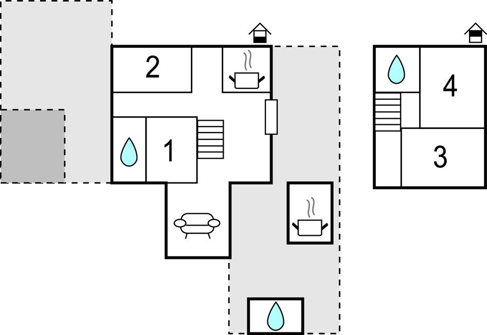Soveværelse 14m2 (nr. 4) - 1 Soveplads. (Enkeltseng(e)). 2 Sovepladser. (Dobbeltseng(e)).
