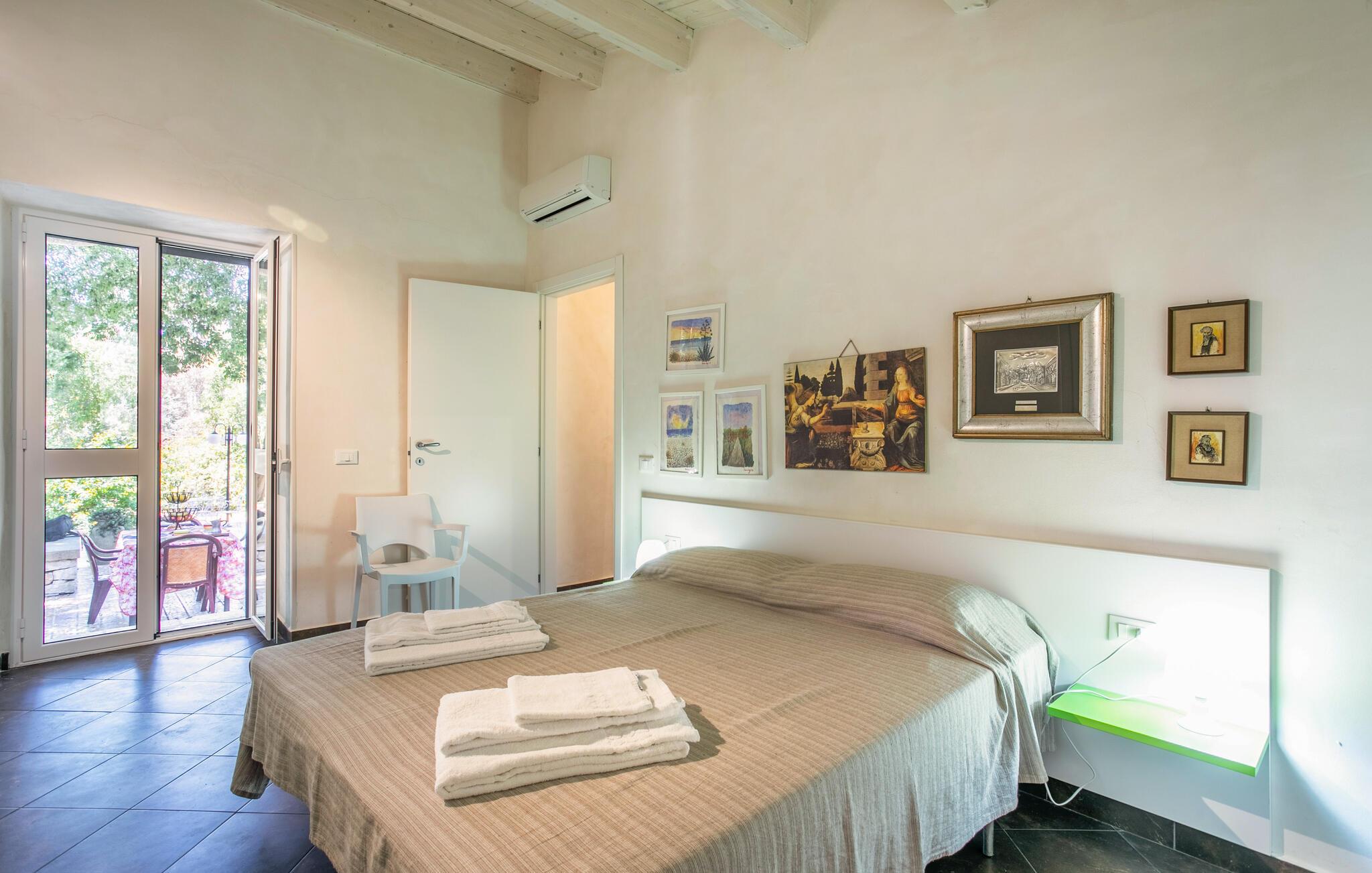 Børnene vil også elske et ophold her takket være et lille legehus af sten. Besøg de omkringliggende landsbyer og deres bagerier, caféer eller restauranter med venlige indehavere. Nyd den sydlige middelhavsatmosfære, mens I drikker en espresso under en parasol på jeres yndlingscafé, eller gå en tur langs en af strandene.