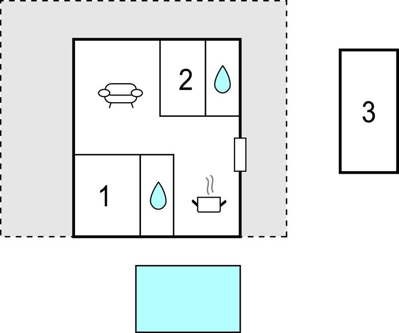Opholdsstue/køkken 40m2 - 2 Sovepladser. (Sofa, madras eller lignende).