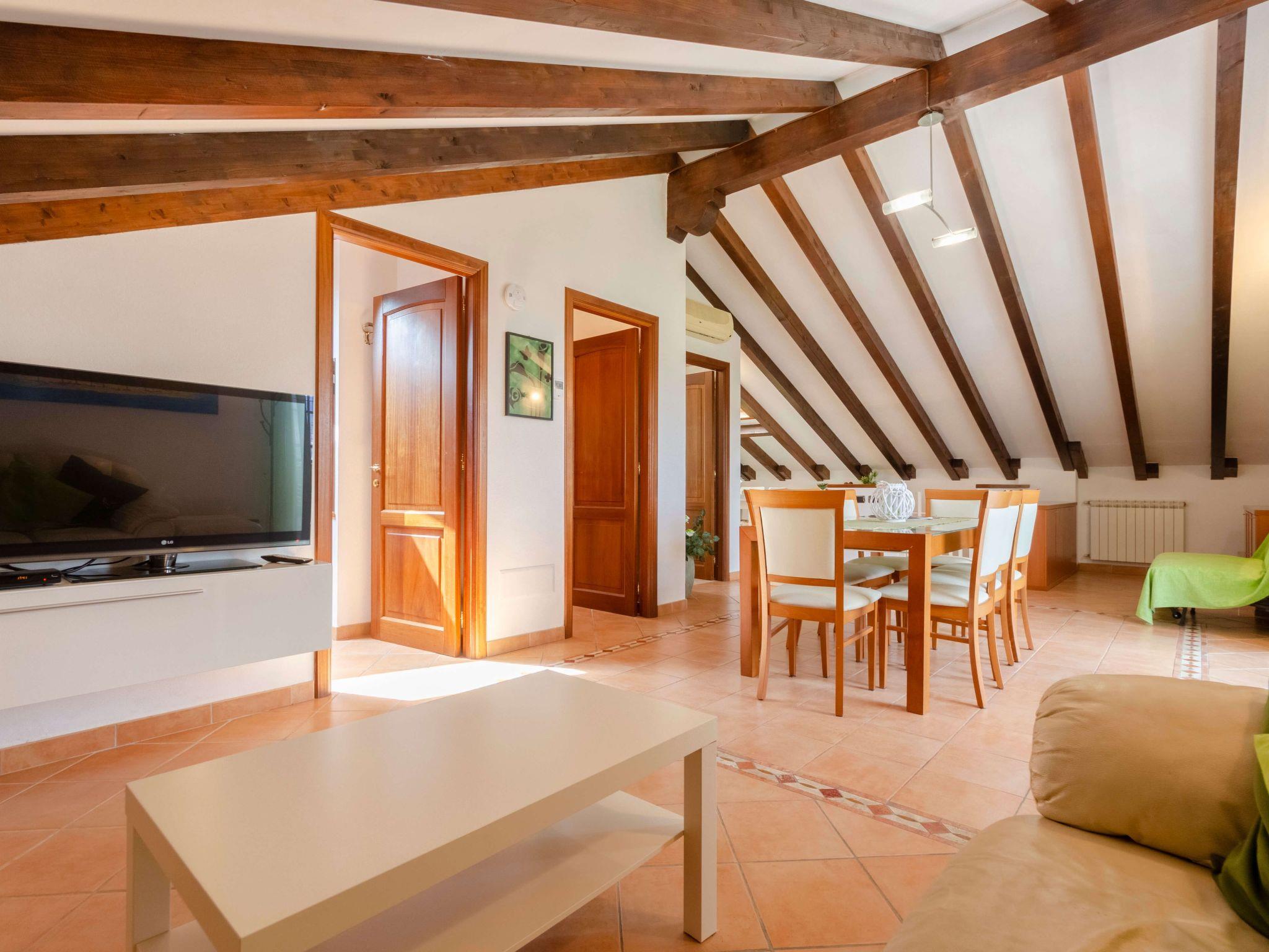 Composed of 2 bedrooms, one with a double bed and one with two bunk beds, cot also available, and 1 bathroom with steam shower. Livable terrace excellent for panoramic breakfasts with table and chairs.