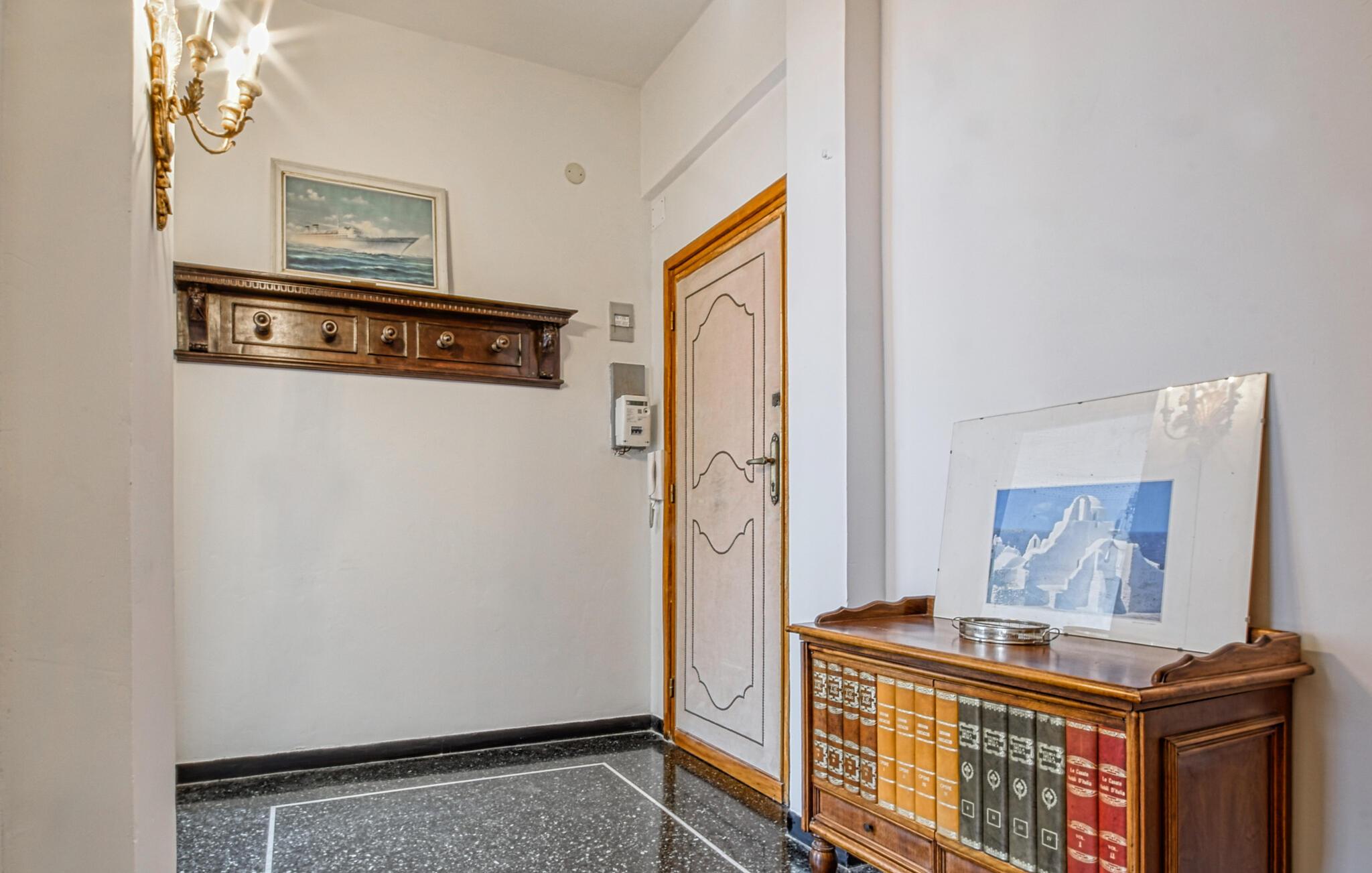 Velkommen til denne charmerende ferielejlighed i Recco. Blandingen af ??klassiske og moderne møbler skaber en stilfuld og hyggelig atmosfære for jer. Lyse lokaler og store vinduer lukker masser af naturligt lys ind og giver jer et afslappende miljø. Altanen lægger op til at starte dagen med morgenmad med udsigt over byen eller afslutte aftenen med et glas vin.