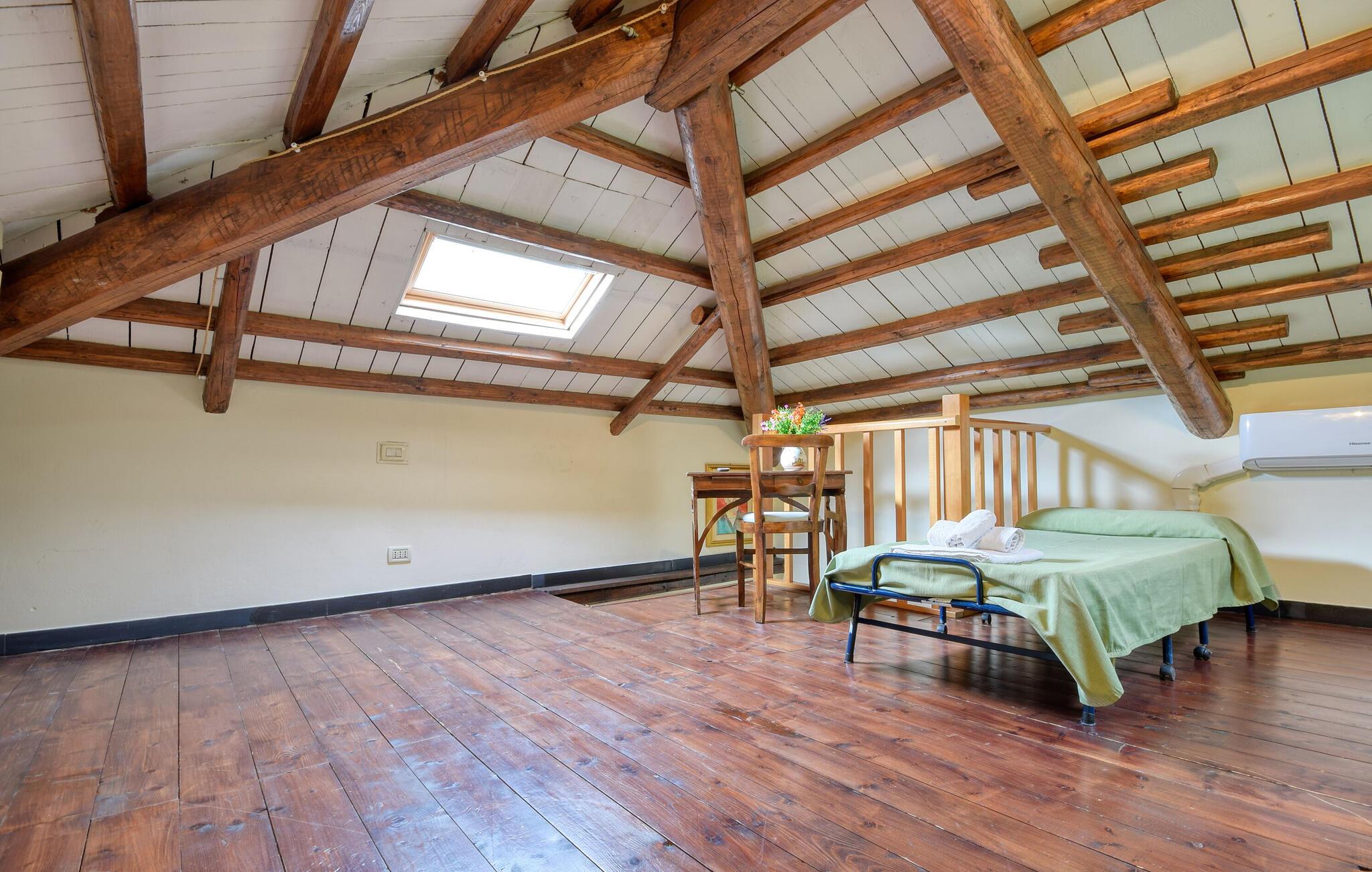 Denne velindrettede lejlighed byder på en hyggelig atmosfære med rustikke træbjælker og en moderne, fuldt udstyret køkken. Nyd udsigten til de omkringliggende bakker, mens I spiser jeres måltider. Tilbered jeres yndlingsretter og afslut dagen i den komfortable opholdsstue. Begynd morgenen med en kop kaffe i de lyse, indbydende rum, der emmer af ferieidyl.