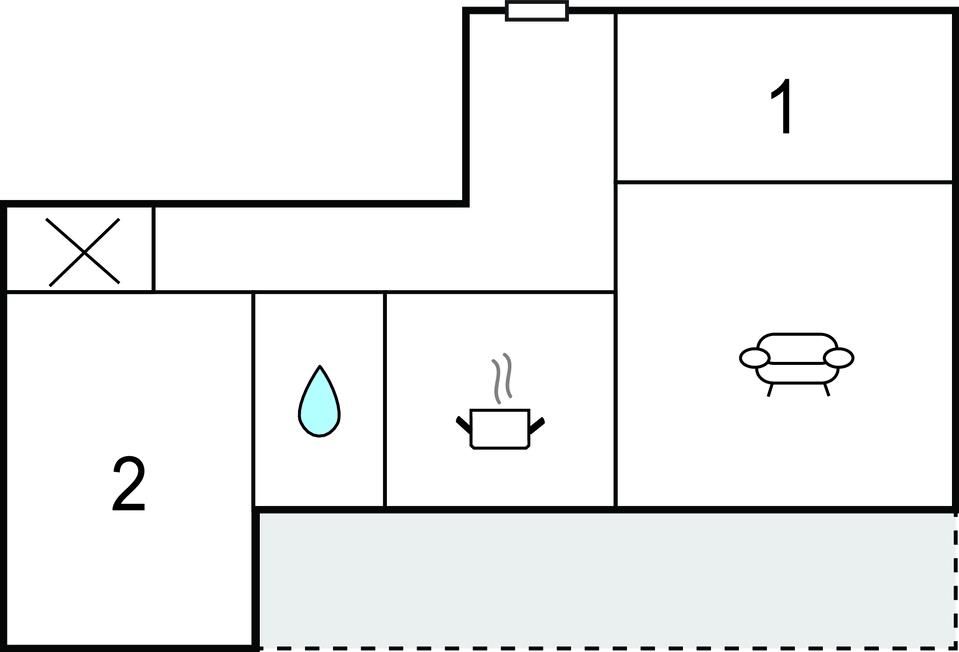 Opholdsstue 18m2 - 2 Sovepladser. (Sofa, madras eller lignende).