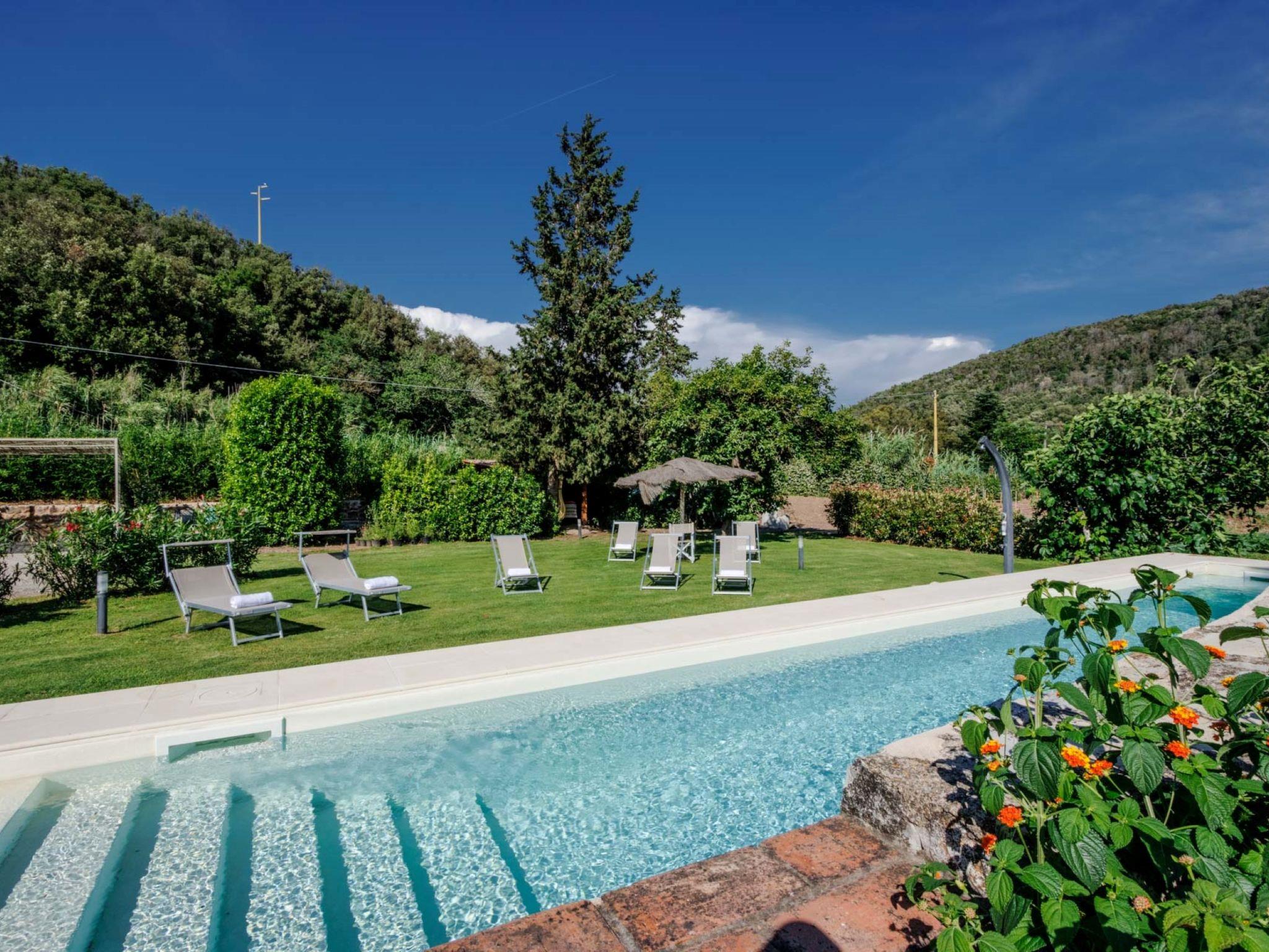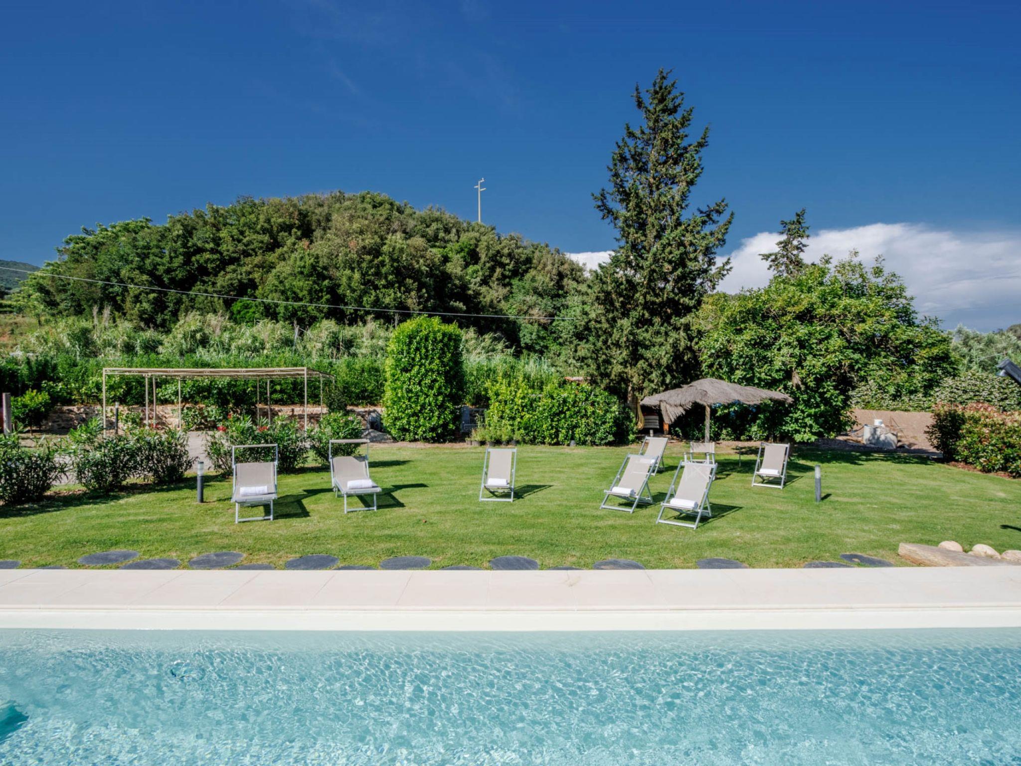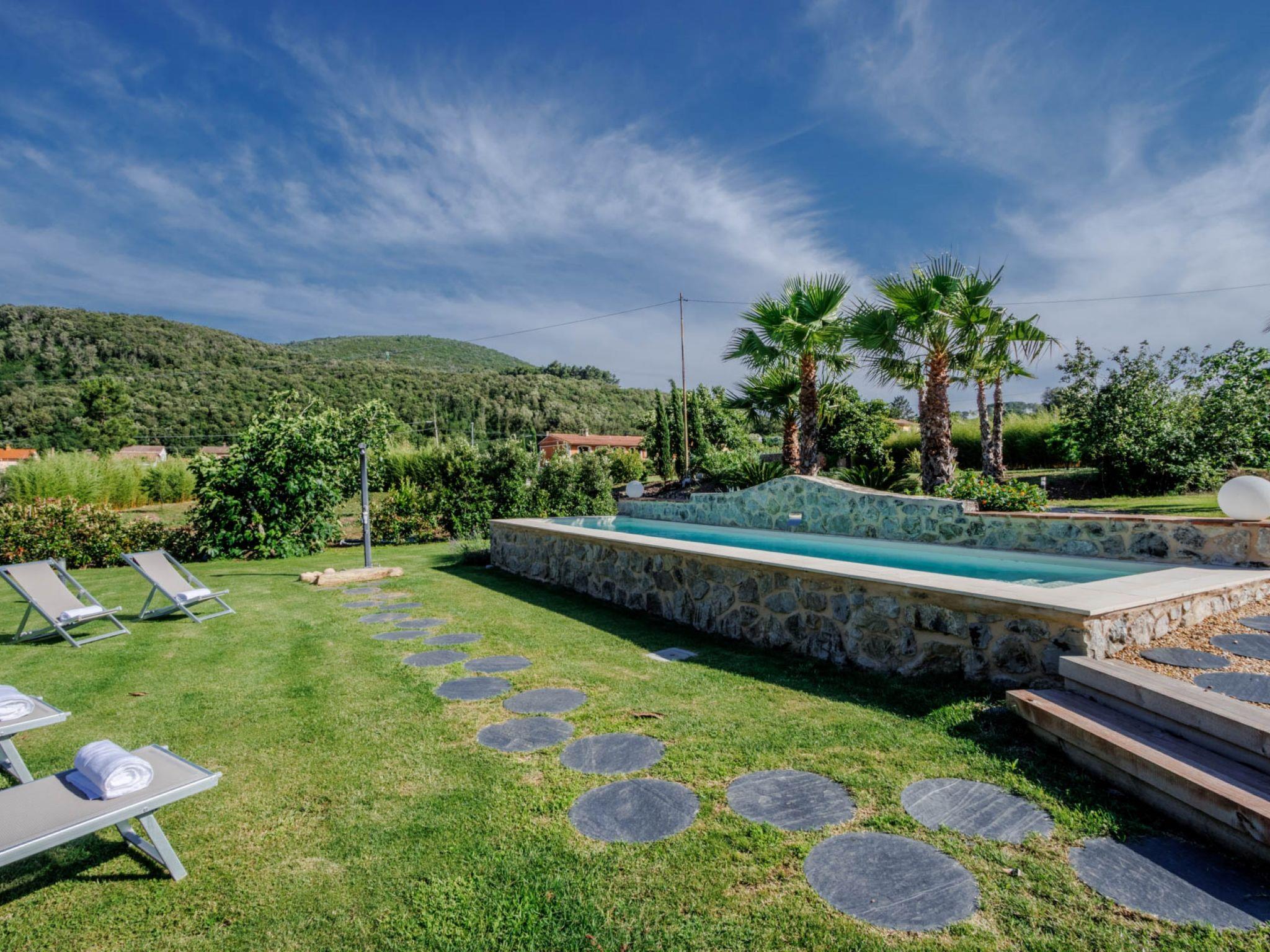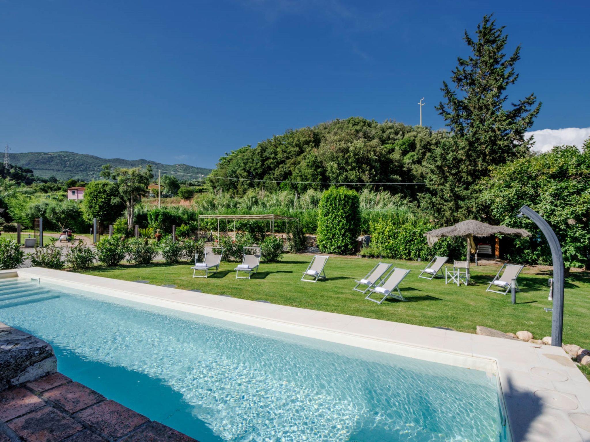The Villa is located on the edge of the village of Rio Marina, close to services but in a very peaceful position in a splendid luxuriant park. It offers many shady spaces to relax in and a roof terrace with views of the nearby sea. The port with daily connections is only 5 minutes away by car. Very beautiful villa "Serena", detached, renovated in 2023. 2 km from the centre of Rio Marina, in a quiet, sunny position, 2 km from the sea, 3 km from the beach, in the countryside. Private: large, beautiful, well-kept garden 2'000 m2 (fenced) with flowers and trees, swimming pool (9 x 3 m, seasonal availability: 01.Apr. - 15.Oct.) with internal staircase. Outdoor shower, garden furniture. In the house: roof terrace, bicycles available (extra). Roofed, parking on the premises. Shop 1.5 km, supermarket 400 m, restaurant 1.5 km, bar 2 km, bicycle rental 1.5 km, bus stop 750 m, ferry "Rio Marina" 2 km, sandy beach "Ortano" 3 km. Tennis 500 m. Nearby attractions: Porto Azzurro 10 km, Cavo 8 km, Portoferraio 16 km, La Biodola 20 km, Capoliveri 15 km. Groups of teenagers on request only.
