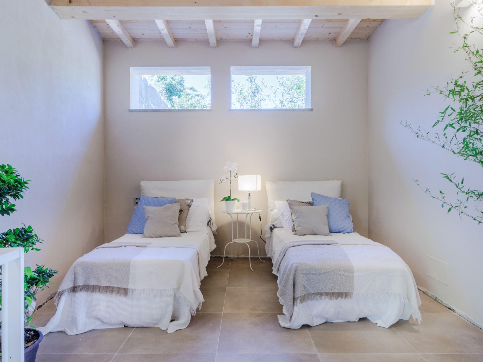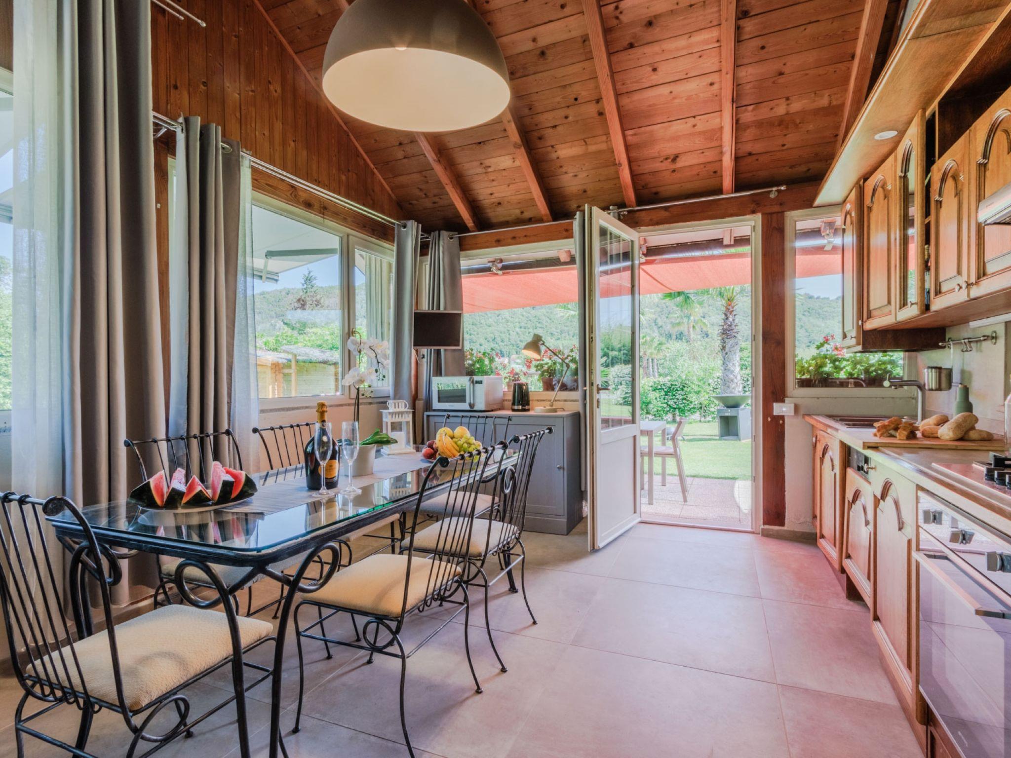 4-room villa 160 m2, on the ground floor. Spacious and bright, fully renovated in 2023, modern and tasteful furnishings: living room with 1 double sofabed and TV. Exit to the garden, to the terrace. 1 large room with 1 double bed (170 cm, length 220 cm), shower/bidet/WC. 1 room with panoramic window with 1 bed and 1 pull-out bed. Exit to the terrace. 1 room with 2 beds and shower/bidet/WC. Exit to the garden, to the veranda. Kitchen (oven, dishwasher, 5 gas rings, toaster, kettle, microwave, electric coffee machine) with dining table. Exit to the terrace. Shower/bidet/WC. Air-conditioning, forced-air heating. 2 large terraces covered, patio. Terrace furniture, barbecue electric barbecue (portable), deck chairs, conservatory. Beautiful view of the garden. Facilities: washing machine, dryer, baby cot for up to 2 year olds, hair dryer. Internet (WiFi, free). Parking (roofed). Please note: one double bedroom is outside the apartment. Maximum 1 pet/ dog allowed. Private entrance. The large double bedroom is not internally connected to the other rooms of the villa, it is accessed via the loggia or from a door at the back of the house. The single beds can be combined into a double. IT049021C2XR5WGVPO