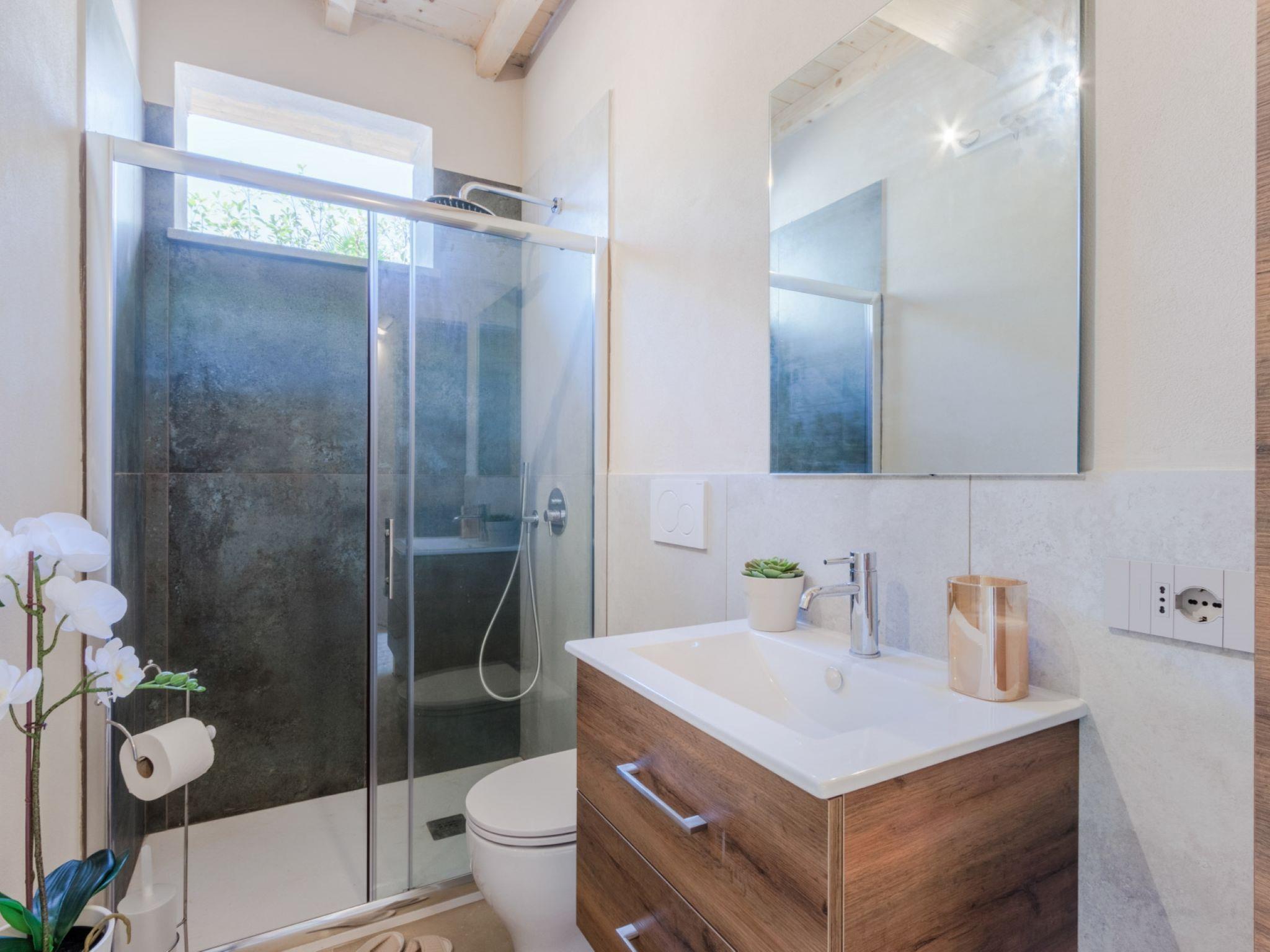 "Porzione Piccola", 2-room semi-detached house 56 m2, on the ground floor. Bright, modern and tasteful furnishings: 1 open room with 2 beds and shower/bidet/WC. Exit to the garden. Kitchen (oven, dishwasher, 4 gas rings, toaster, kettle, electric coffee machine) with dining table. Air-conditioning, forced-air heating. Large terrace, garden. Terrace furniture, barbecue, deck chairs. Facilities: washing machine, baby cot for up to 2 year olds, hair dryer. Internet (WiFi, free). Parking at the house. Please note: non-smoking house. Maximum 1 pet/ dog allowed. Private entrance. IT049021C2XR5WGVPO