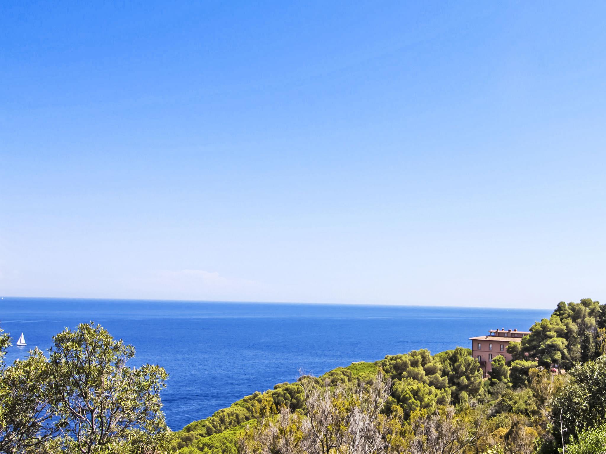 3-room apartment 60 m2 on 2 levels. Renovated, beautiful and tasteful furnishings: living/dining room with 1 double sofabed and TV. Exit to the garden, to the terrace. Kitchenette (oven, dishwasher, 4 induction hot plates) with dining table. Sep. WC. Upper floor: 1 double bedroom with panoramic window. 1 small room with panoramic window with 2 beds. Shower/bidet/WC. Air-conditioning, forced-air heating. Patio 40 m2, garden. Terrace furniture, deck chairs (2), sitting area. Beautiful view of the sea. Facilities: washing machine, baby cot for up to 2 year olds, hair dryer. Internet (WiFi, free). Parking at 100 m. IT049021C296D4MNUH