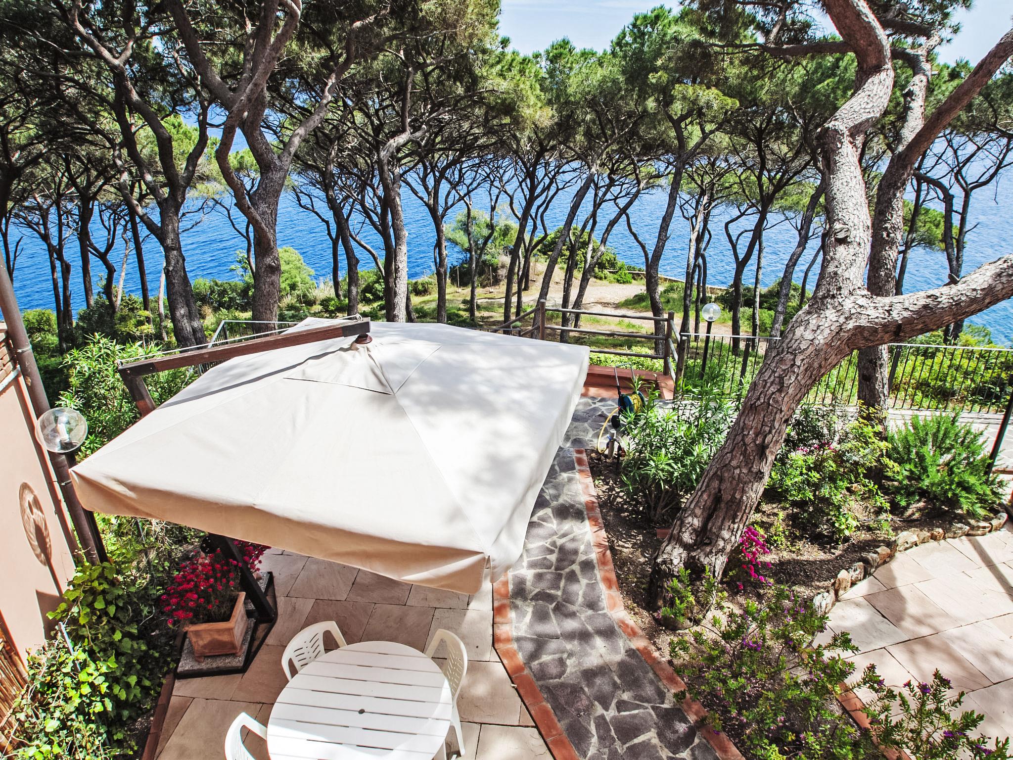 The area of Capo D'Arco (private access with guard) is surronded by an oasis of natural beauty. Beautiful resort "Capo d'Arco", surrounded by trees. In the resort Capo d'Arco, in a quiet position, 500 m from the sea, 500 m from the beach, direct access to the beach. For shared use: terraced garden, natural garden, 2 swimming pools (seasonal availability: 01.Jun. - 30.Sep.). Shower/WC in the pool area, children's pool, outdoor shower, private beach, tennis (extra), beach volleyball, garden furniture. In the complex: restaurant, bar, table tennis. Motor access (500 m via unmade road). Parking. Supermarket 5 km, bus stop 3.3 km, ferry "Rio Marina" 13 km, sandy beach "Brigantino" 500 m (small). Nearby attractions: Porto Azzurro 5 km, Capoliveri 11 km, Rio nell'Elba 13 km, Portoferraio 18 km. Please note: car recommended. The owner does not accept any youth groups. Guarded residence. Additional accommodations can be booked. Guests can use the swimming pools (sea water and fresh water) free of charge except the use sunloungers and umbrellas (extra). Bar, restaurants and market (01.06/15.09). WIFI signal is garantuee only near the pool area (fresh water one). Opening dates and times of the swimming pools and restaurants may vary if demand is not sufficient or in adverse weather conditions.