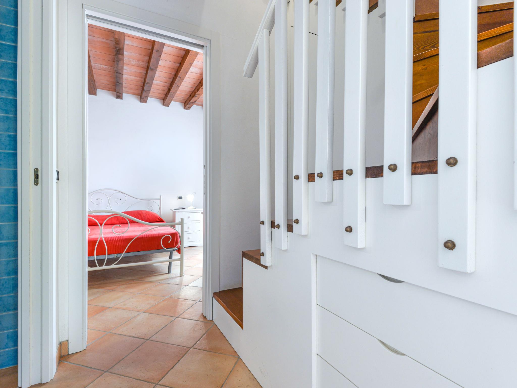 3-room house 61 m2. Practical and beautiful furnishings: living/sleeping room with dining nook and satellite TV. Exit to the terrace. 1 room with 1 double bed (160 cm). Exit to the garden. Small, open kitchen (oven, 4 gas rings). Shower/bidet/WC. Upper floor: 1 room with 3 beds (80 cm). Air-conditioning, forced-air heating. Terrace roofed. Terrace furniture. Facilities: baby cot for up to 2 year olds. Internet (WiFi, free). Parking. Please note: non-smokers only. Maximum 1 pet/ dog allowed. Private entrance. IT049021B4K8XGEPA7