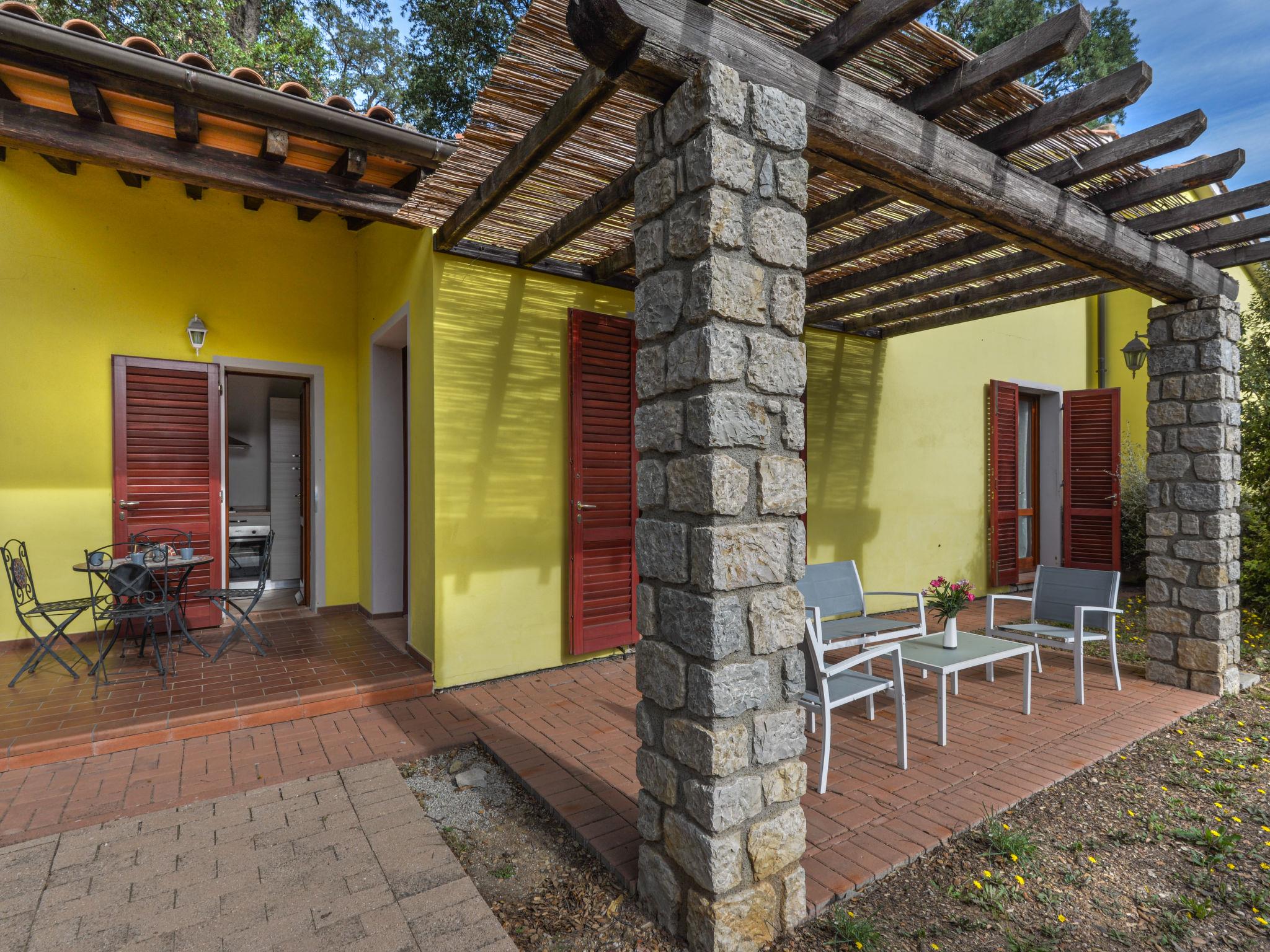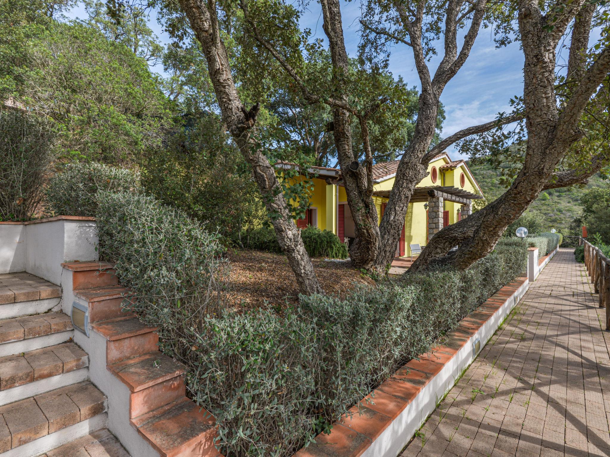 Cosy residence "Mezzo Ortano", surrounded by trees. 10 houses in the residence. 2 km from the centre of Rio nell'Elba, 4 km from the centre of Rio Marina, in a secluded, quiet position, 1.5 km from the sea, 1.5 km from the beach, in the countryside. For shared use: well-kept terraced garden, 10'000 m2 (not fenced) with plants and trees. 150 m long motor access (via unmade road). Stepped path to the house. Roofed, parking (for 8 cars, limited number of spaces) on the premises, public parking 50 m. Grocery 2 km, supermarket 4 km, restaurant 2 km, bus stop 1.5 km, ferry "Rio Marina" 4 km, sandy beach "Ortano" 1.5 km. Nearby attractions: Porto Azzurro 15 km, Capoliveri 18 km, Monte Capanne 38 km, Portoferraio 17 km. Please note: car recommended.