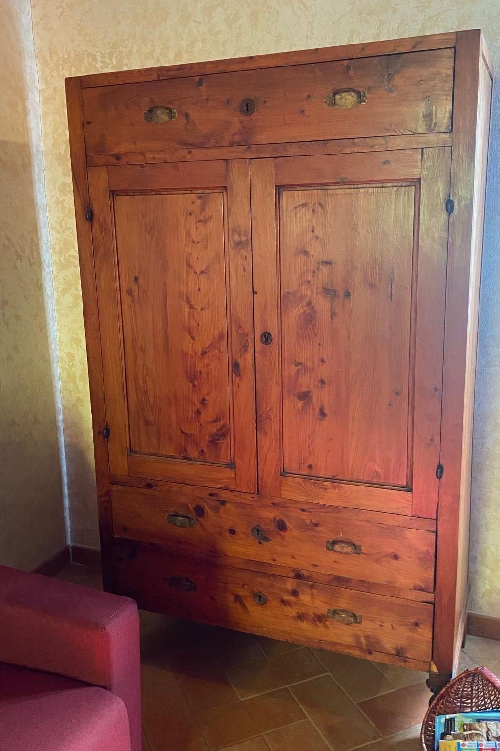The flat is located a few metres from the central square and consists of a large, comfortable open space finely furnished with an open kitchen, living room with sofa bed, hallway, windowed bathroom with shower and bidet, wooden loft accessed by a ladder with beds, outdoor area. The floor is terracotta (except for the bathroom, which is ceramic), the ceiling is typical of Elba houses, with wooden beams and terracotta bricks.