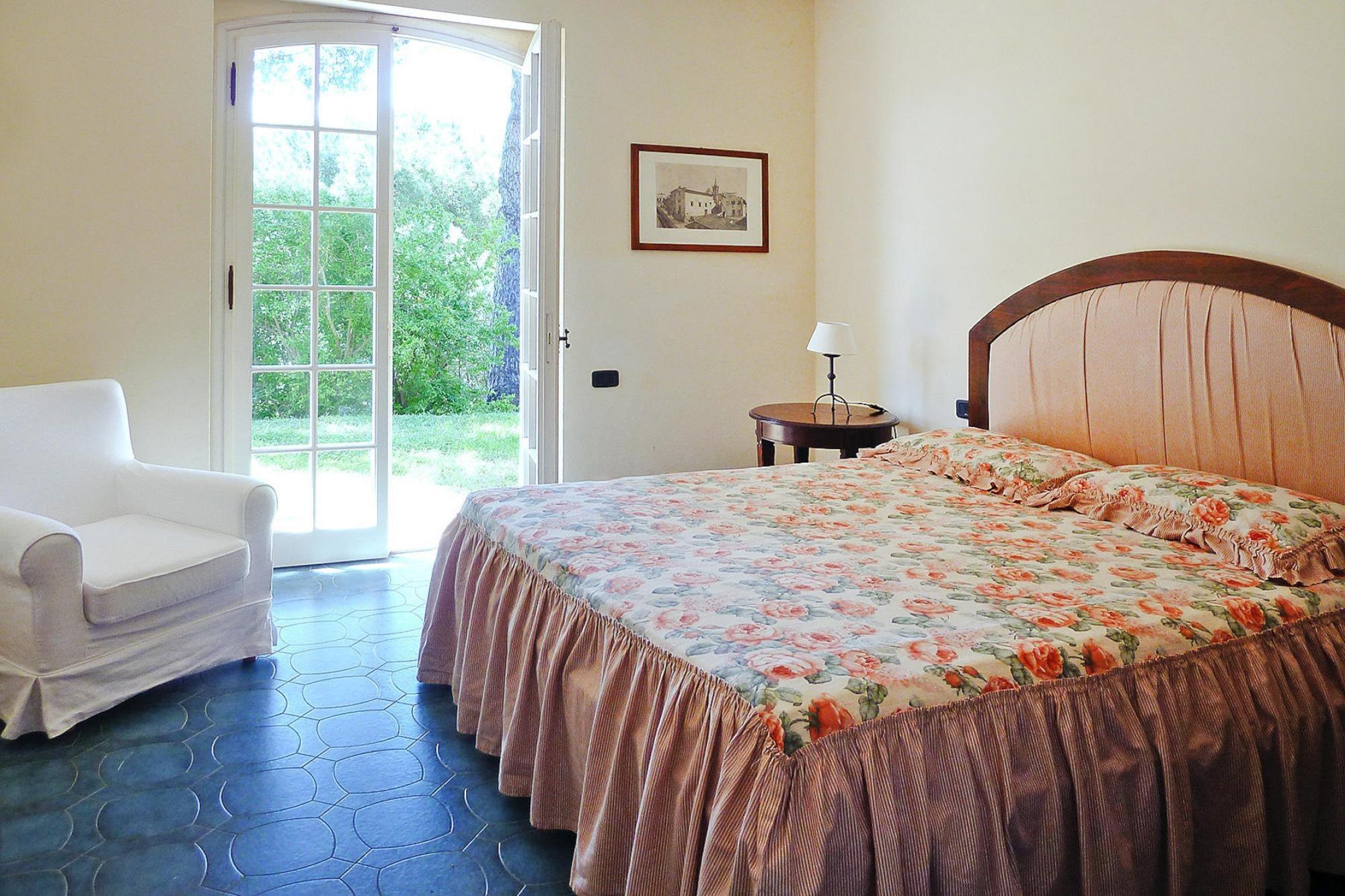 Køkken(kakkelovn, kogeplade(glaskeramisk), ovn, opvaskemaskine , køle-fryseskab), stue / spisestue, soveværelse(dobbeltseng), soveværelse(2x enkeltseng), soveværelse(2x enkeltseng), badeværelse(bruser, toilet, bidet), badeværelse(bruser, toilet, bidet), Fjernsyn, pejs, grill, vaskemaskine, varme, terrasse(overdækket), havemøbler, solstole, parkering, swimmingpool(deles med andre gæster, udendørs, 17 x 7 m., opened from May upto and including Sep), Solcreme