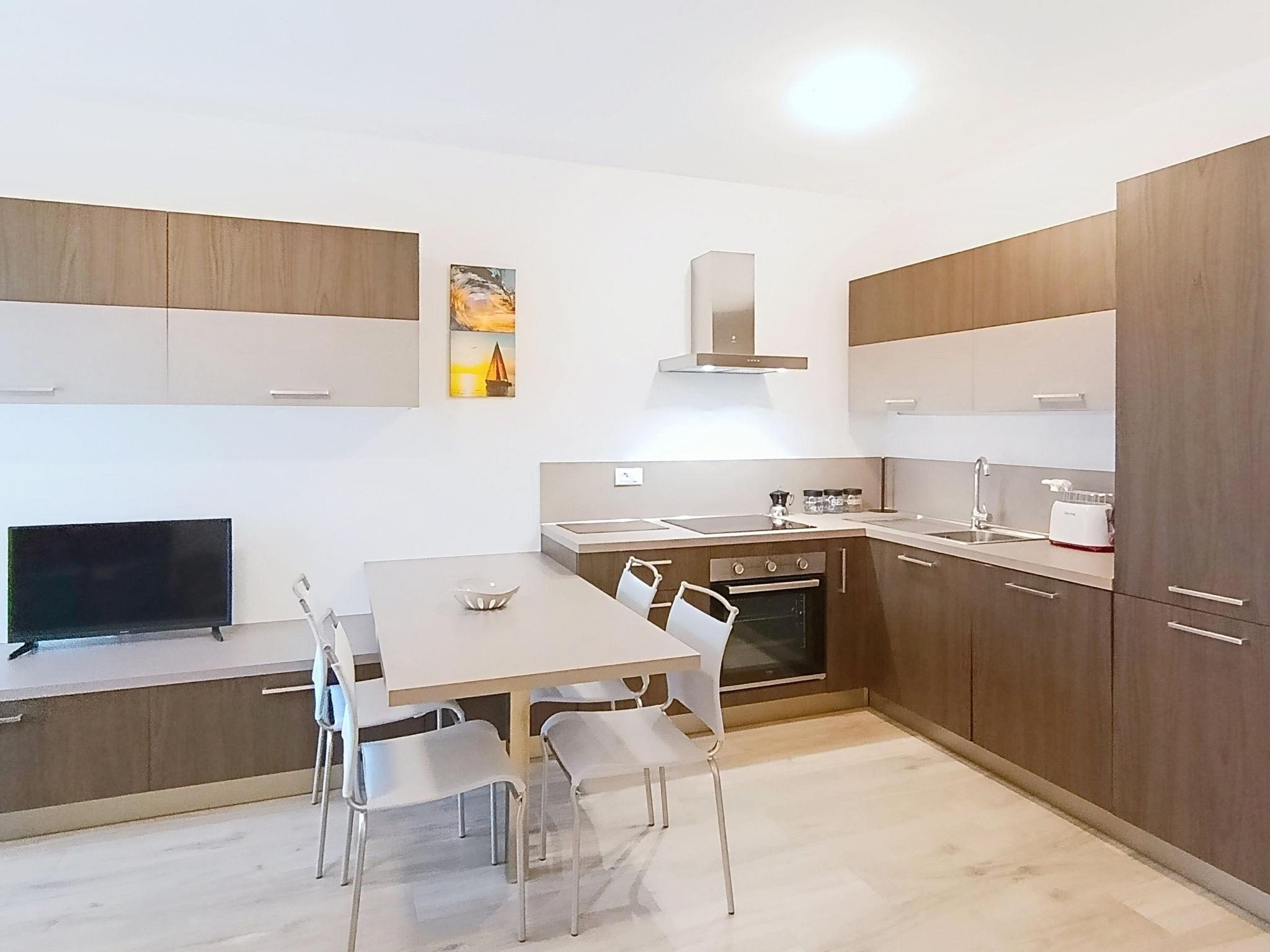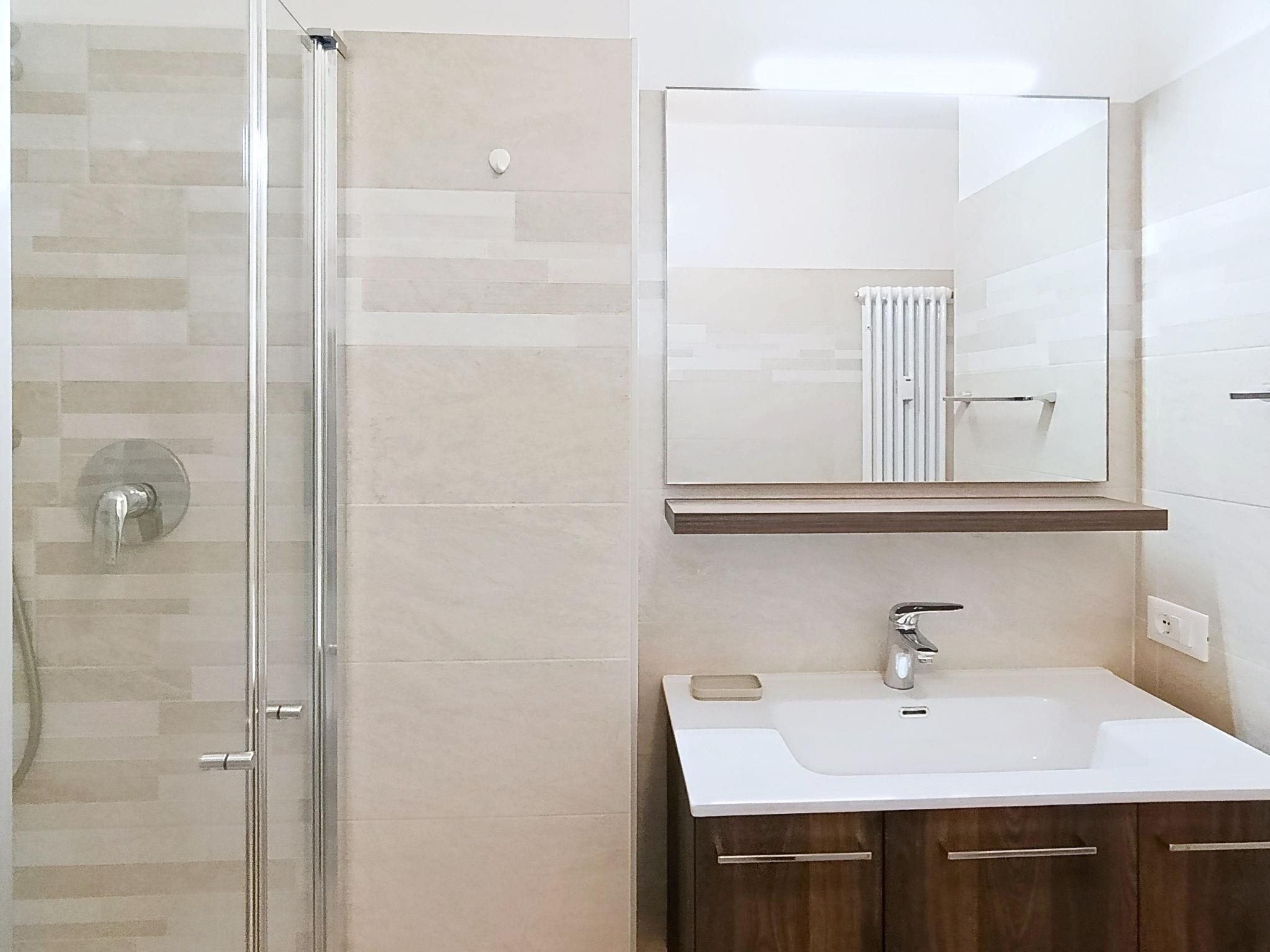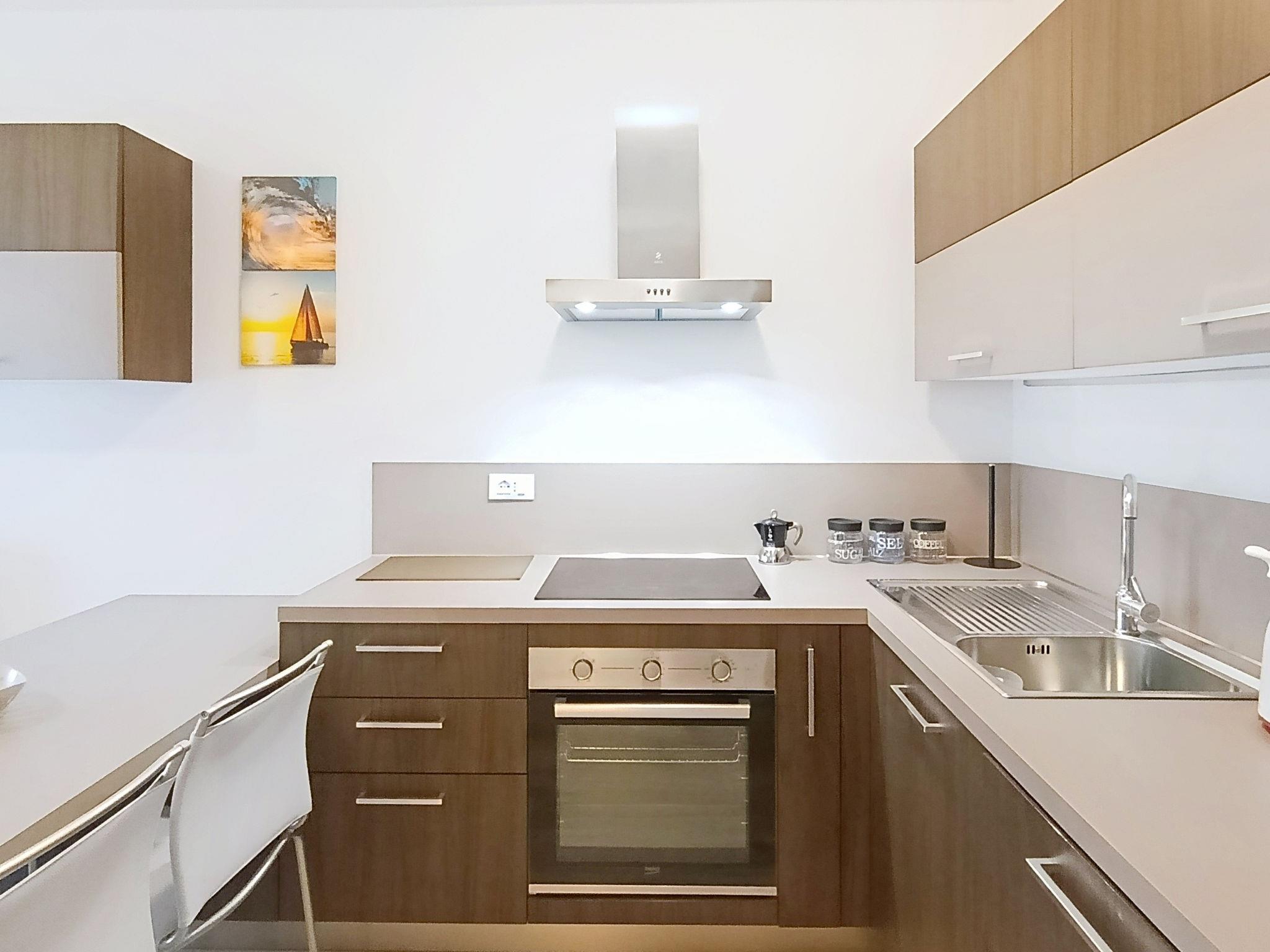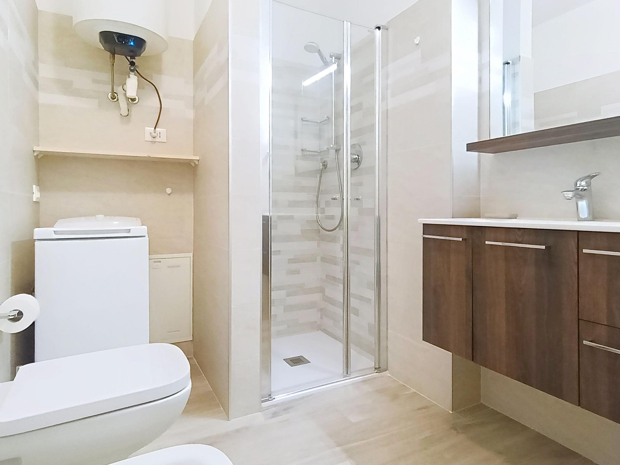 "Ilaria", 2-room apartment 45 m2 on 1st floor. Fully renovated in 2024, modern and cosy furnishings: living room with 1 double sofabed and TV. Exit to the terrace. 1 double bedroom. Kitchen (dishwasher, 4 induction hot plates, toaster, kettle, microwave, freezer) with dining table. Exit to the terrace. Shower/bidet/WC. Heating, air-conditioning. Heating available only from 15.11. to 30.04. Terrace. Deck chairs, sitting area. View of the lake. Facilities: washing machine, iron, hair dryer. Internet (WiFi, free). Parking space n 220 (fenced 1 car). Please note: fire extinguisher. IT022153C2HQIH6VKA